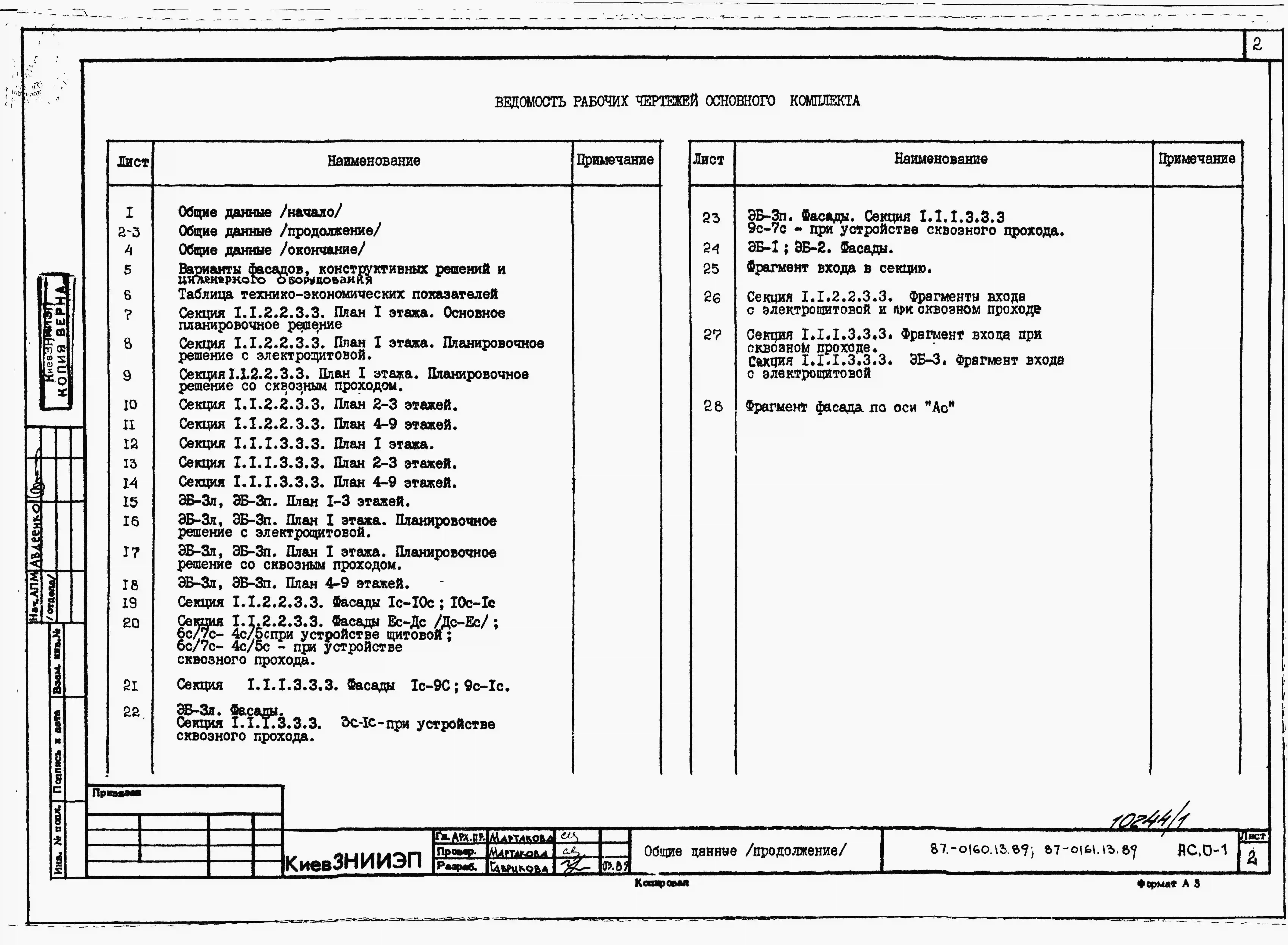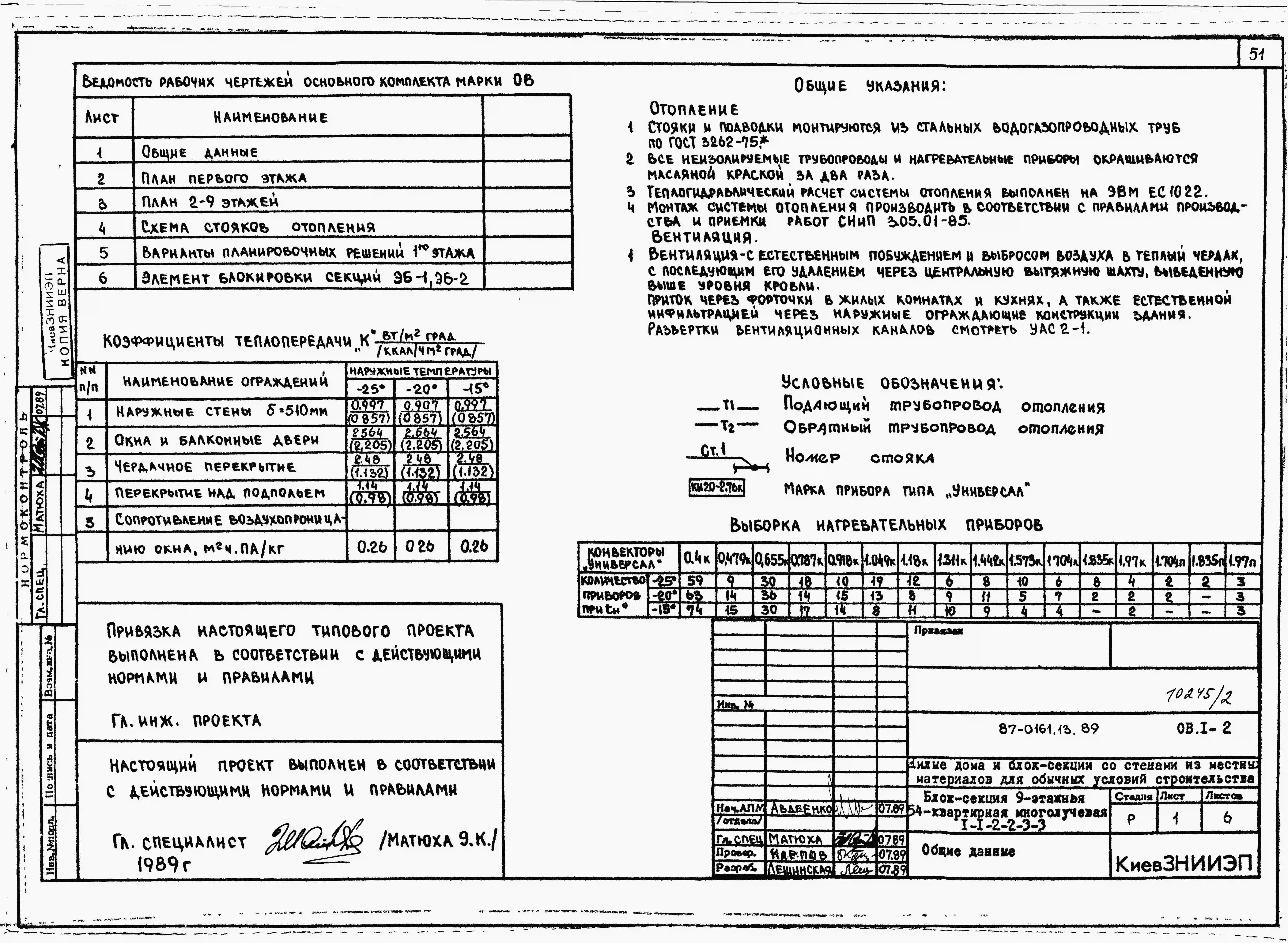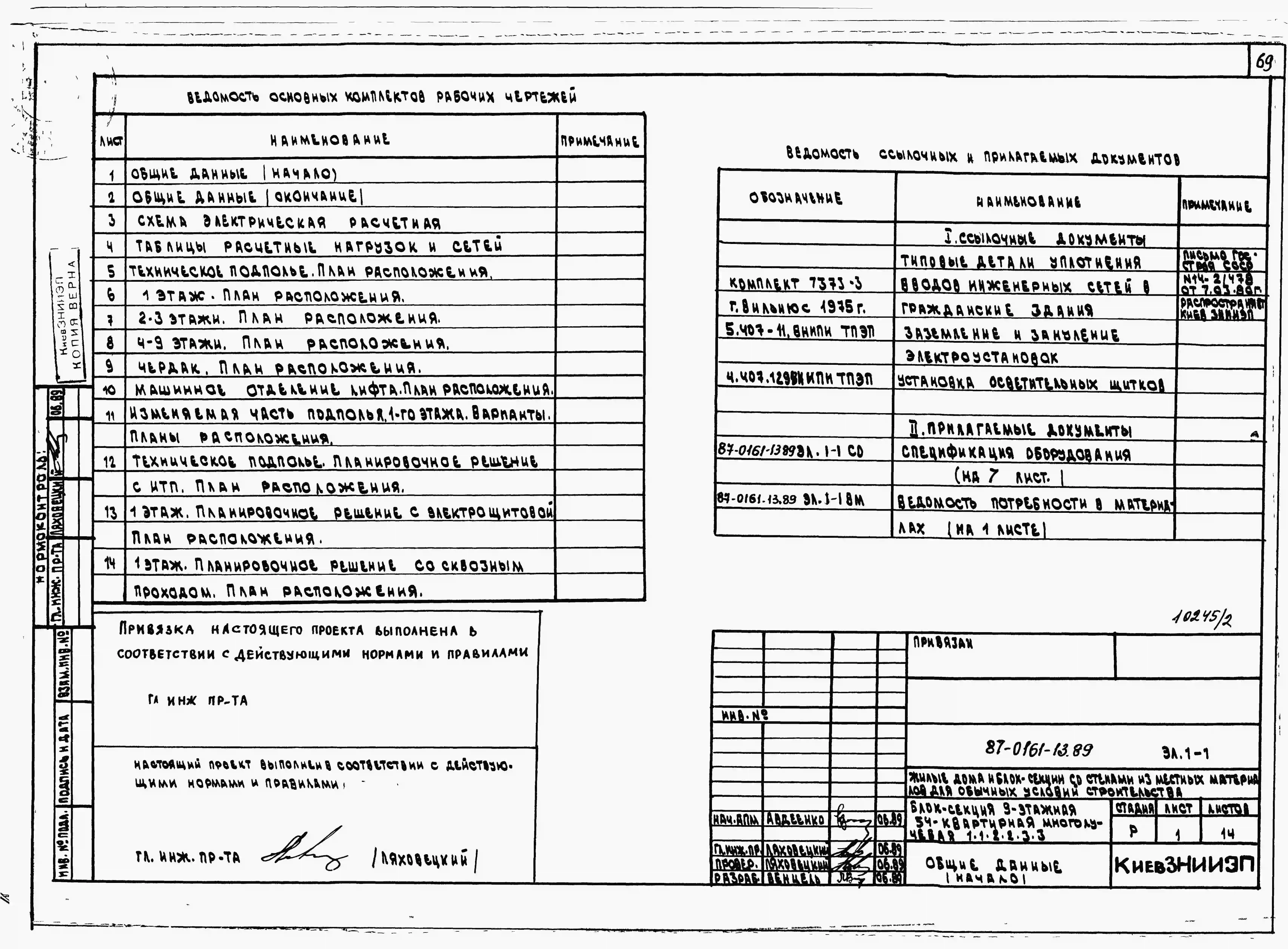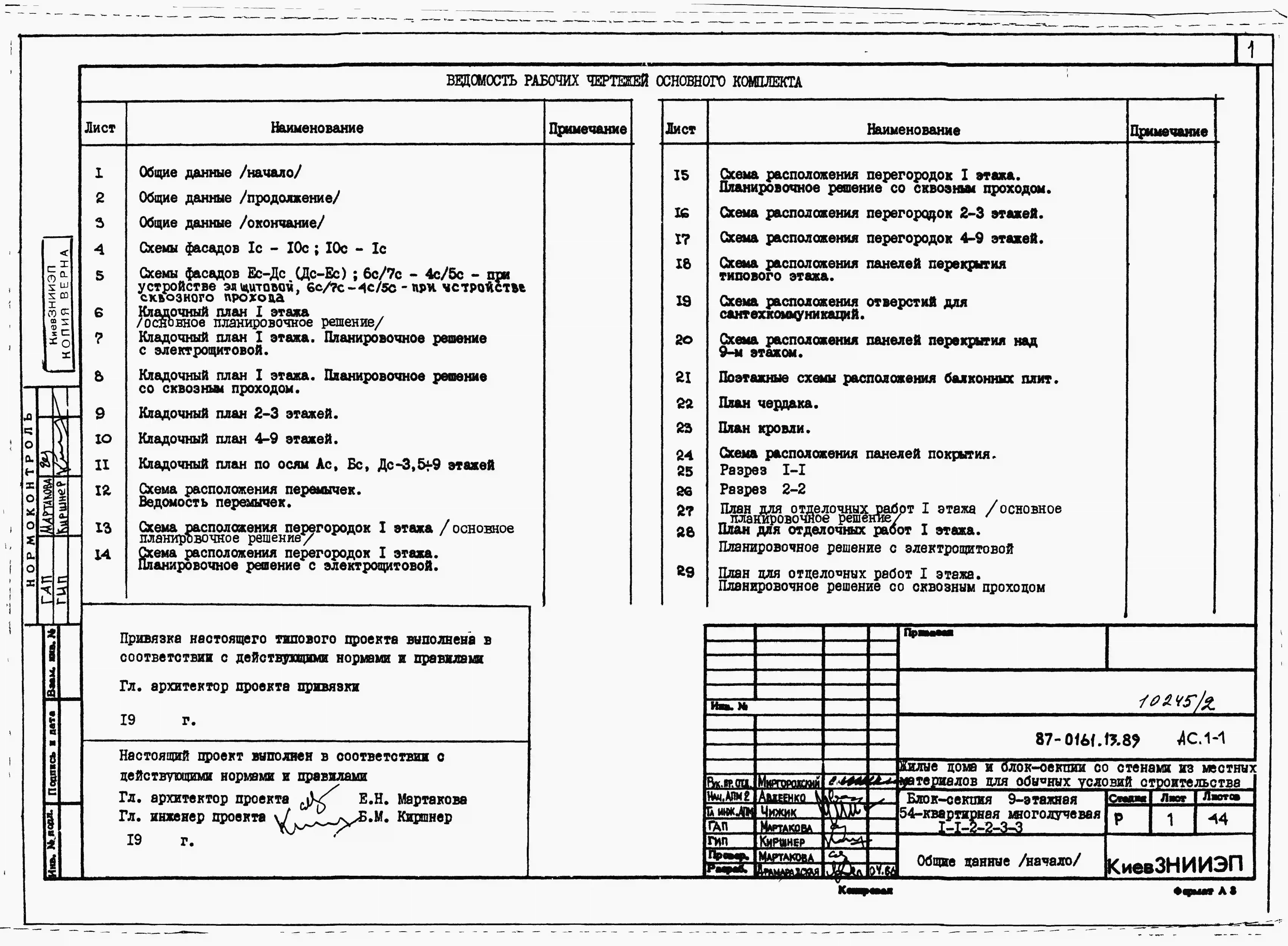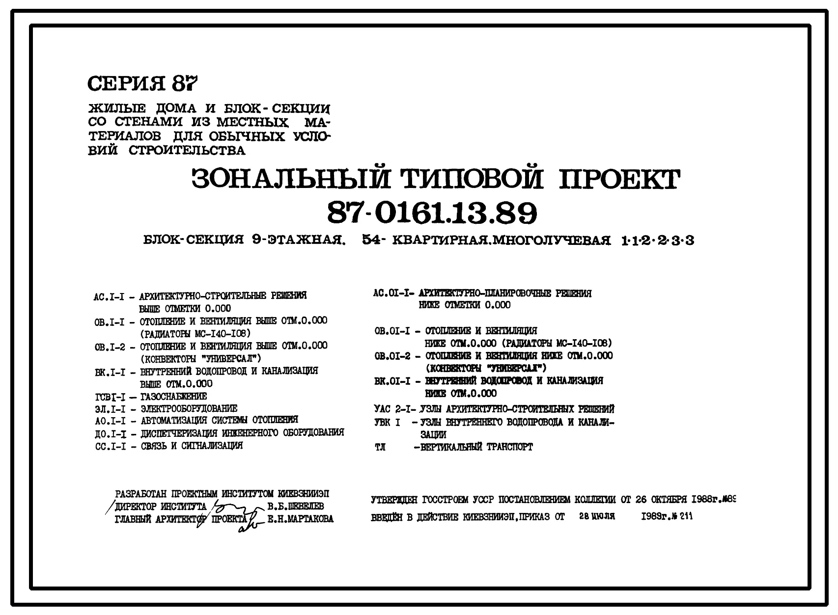 Типовой проект 87-0161.13.89 Блок-секция многолучевая 9-этажная 54-квартирная 1-1-2-2-3-3 /для строительства в УССР/