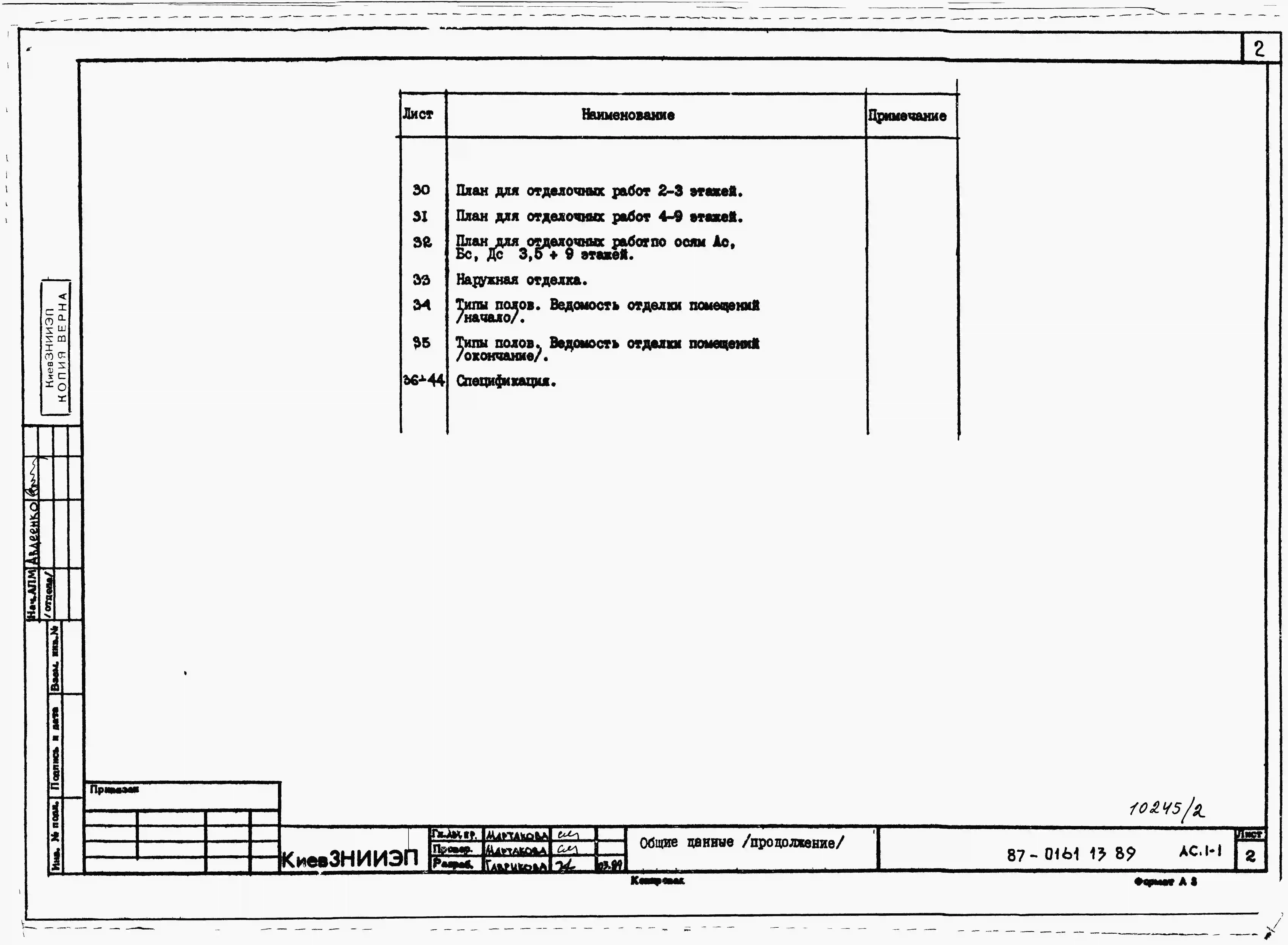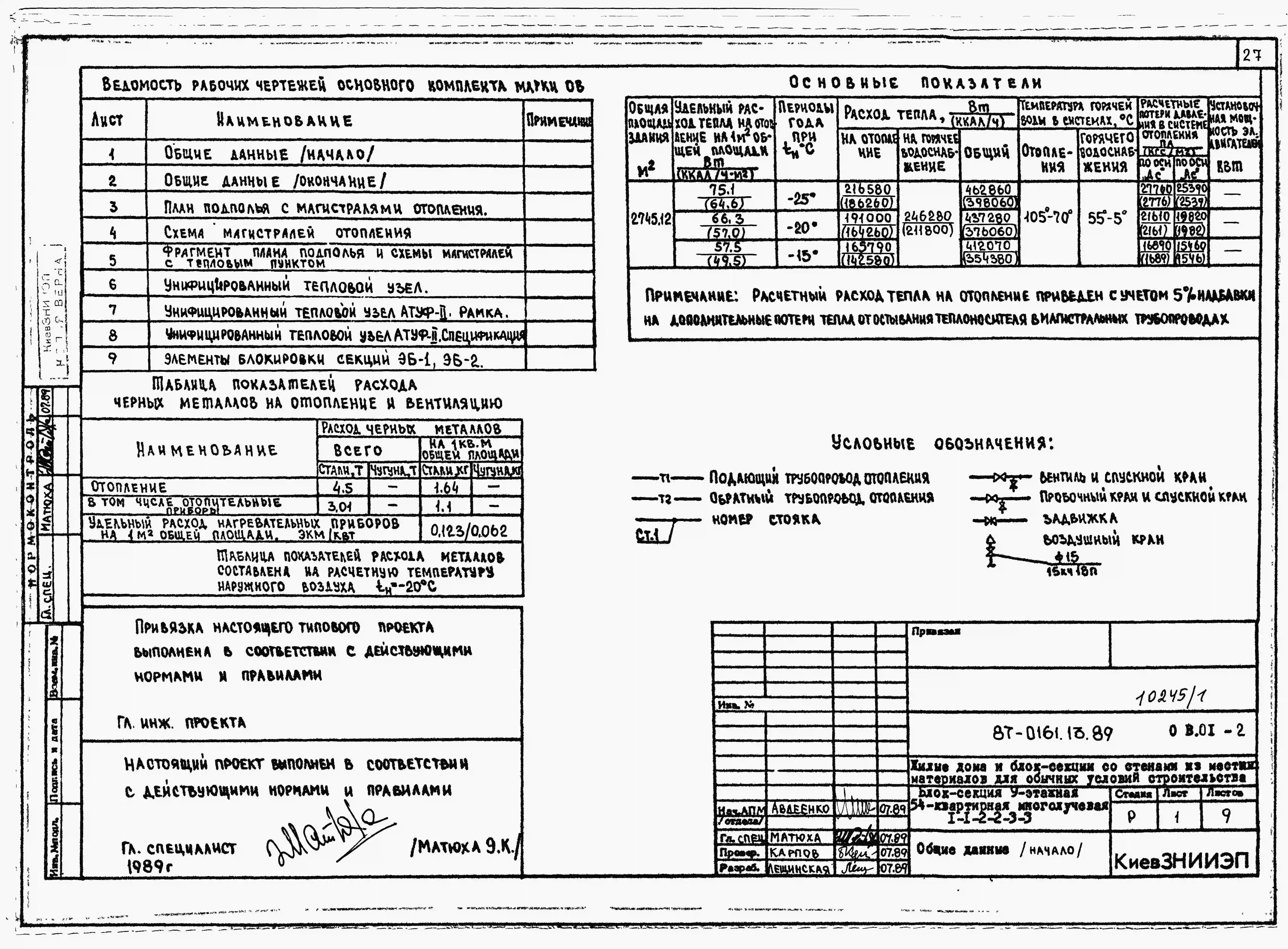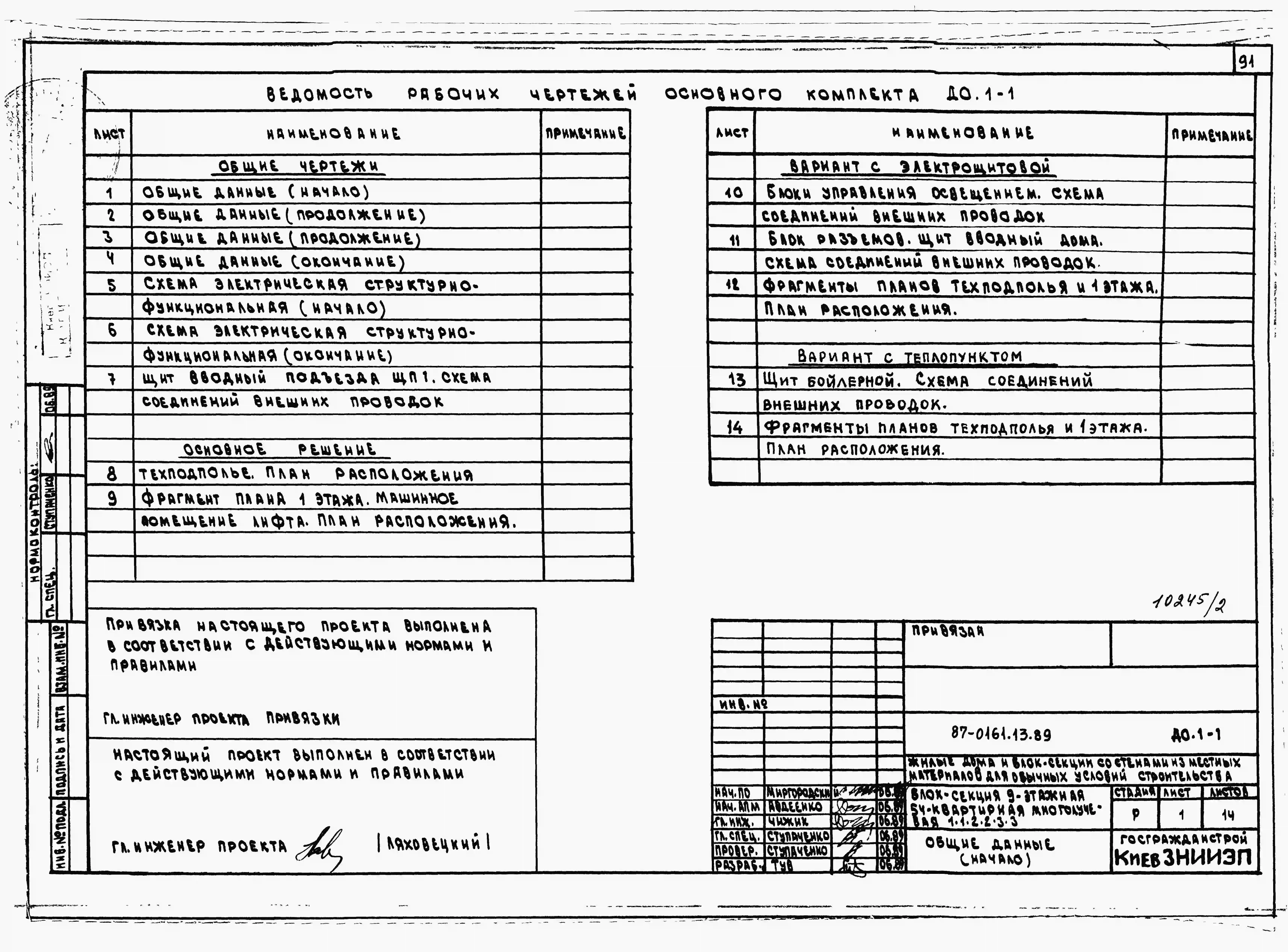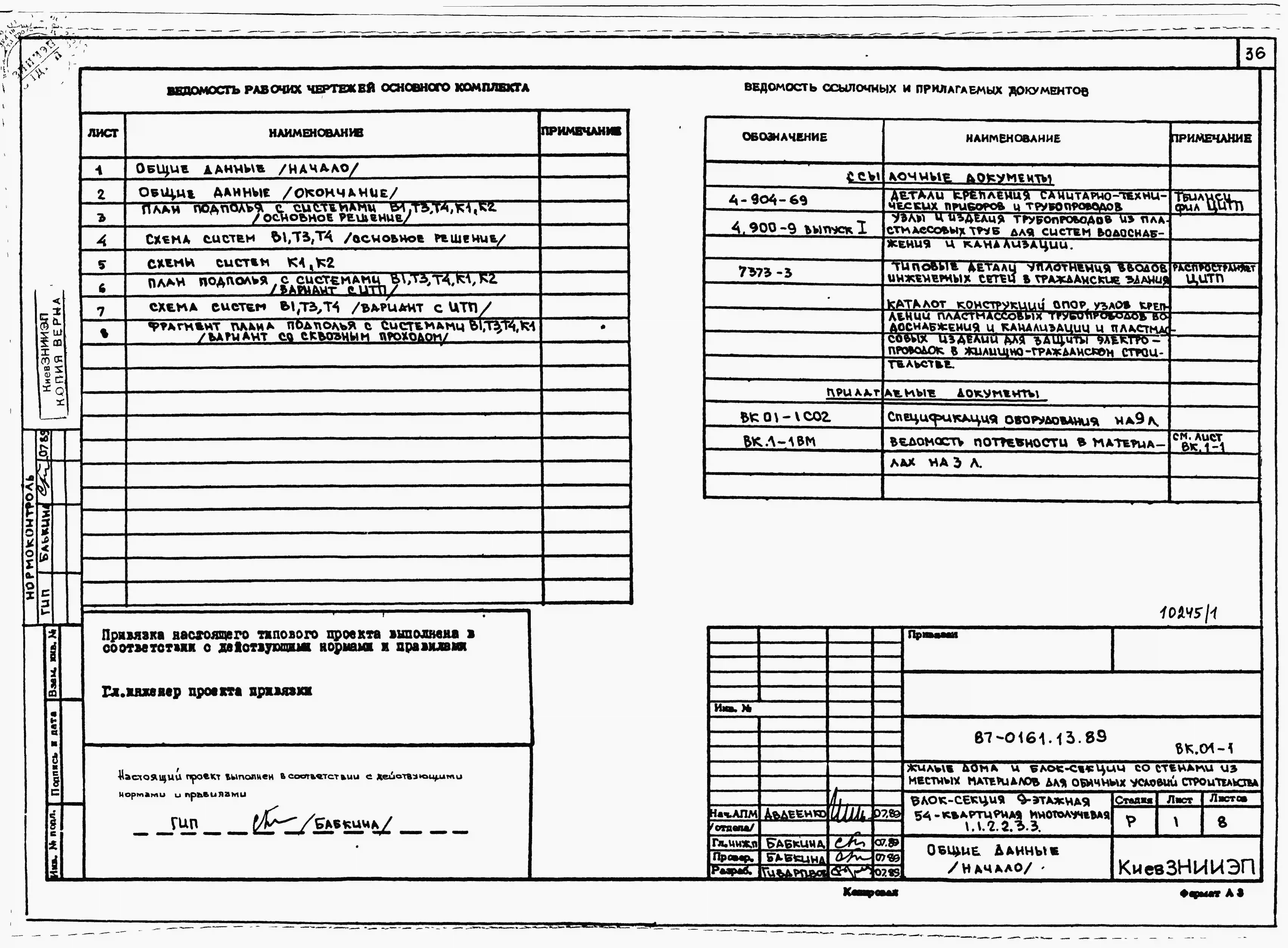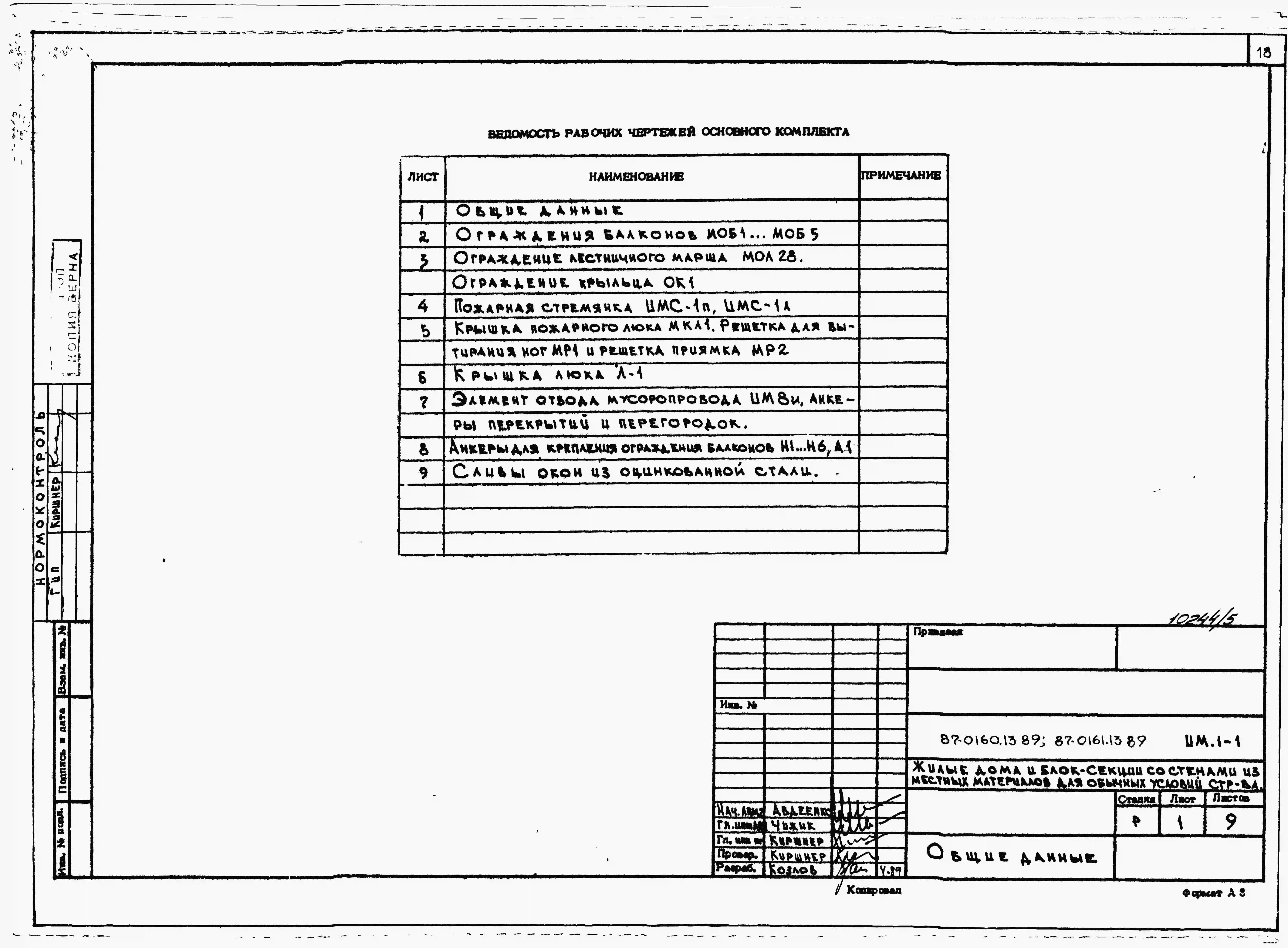 Типовой проект 87-0161.13.89 Блок-секция многолучевая 9-этажная 54-квартирная 1-1-2-2-3-3 /для строительства в УССР/