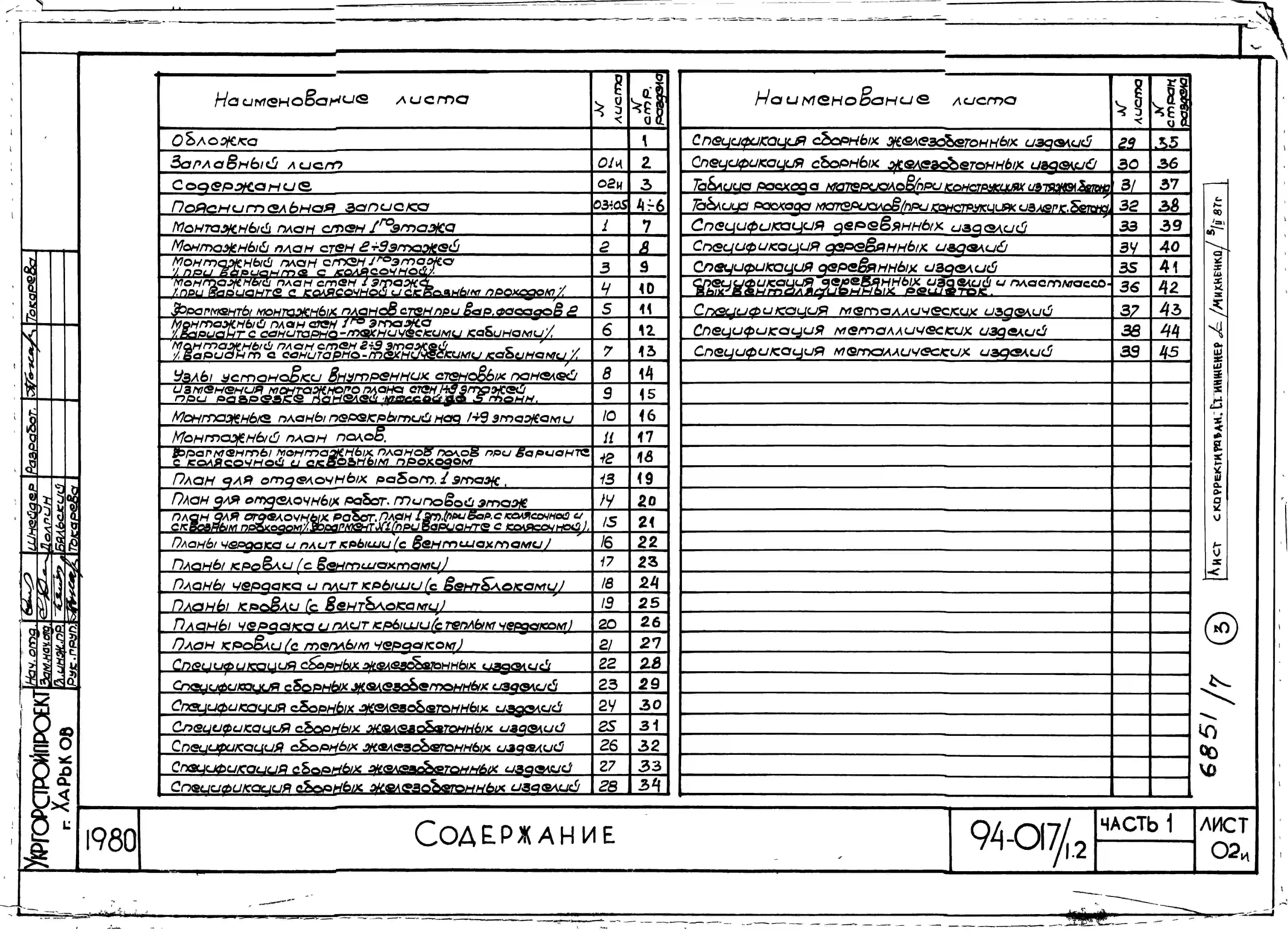 - наличия/отсутствия в конкретном проекте (при наличии чертежей, а не только паспорта проекта) нужных разделов