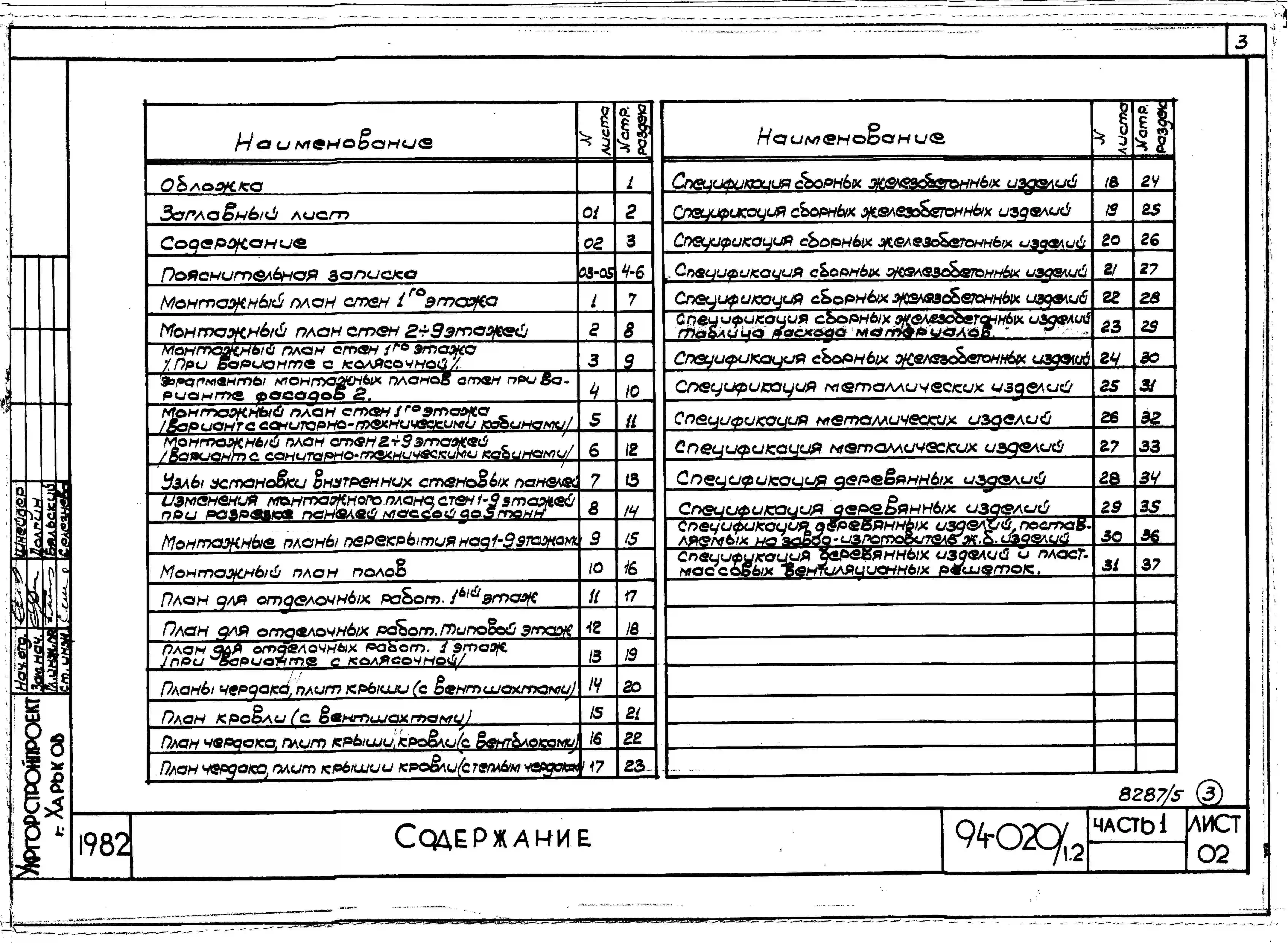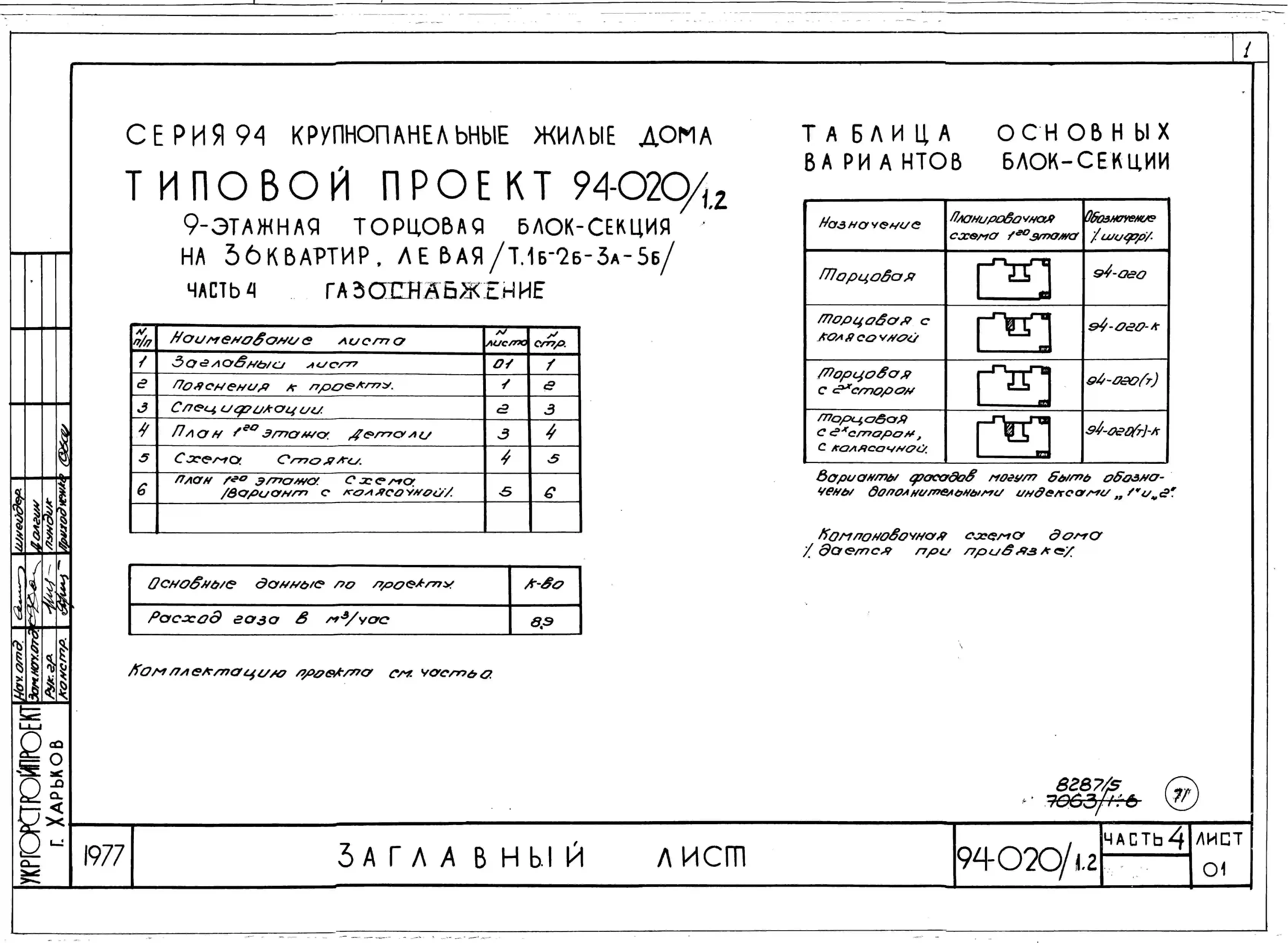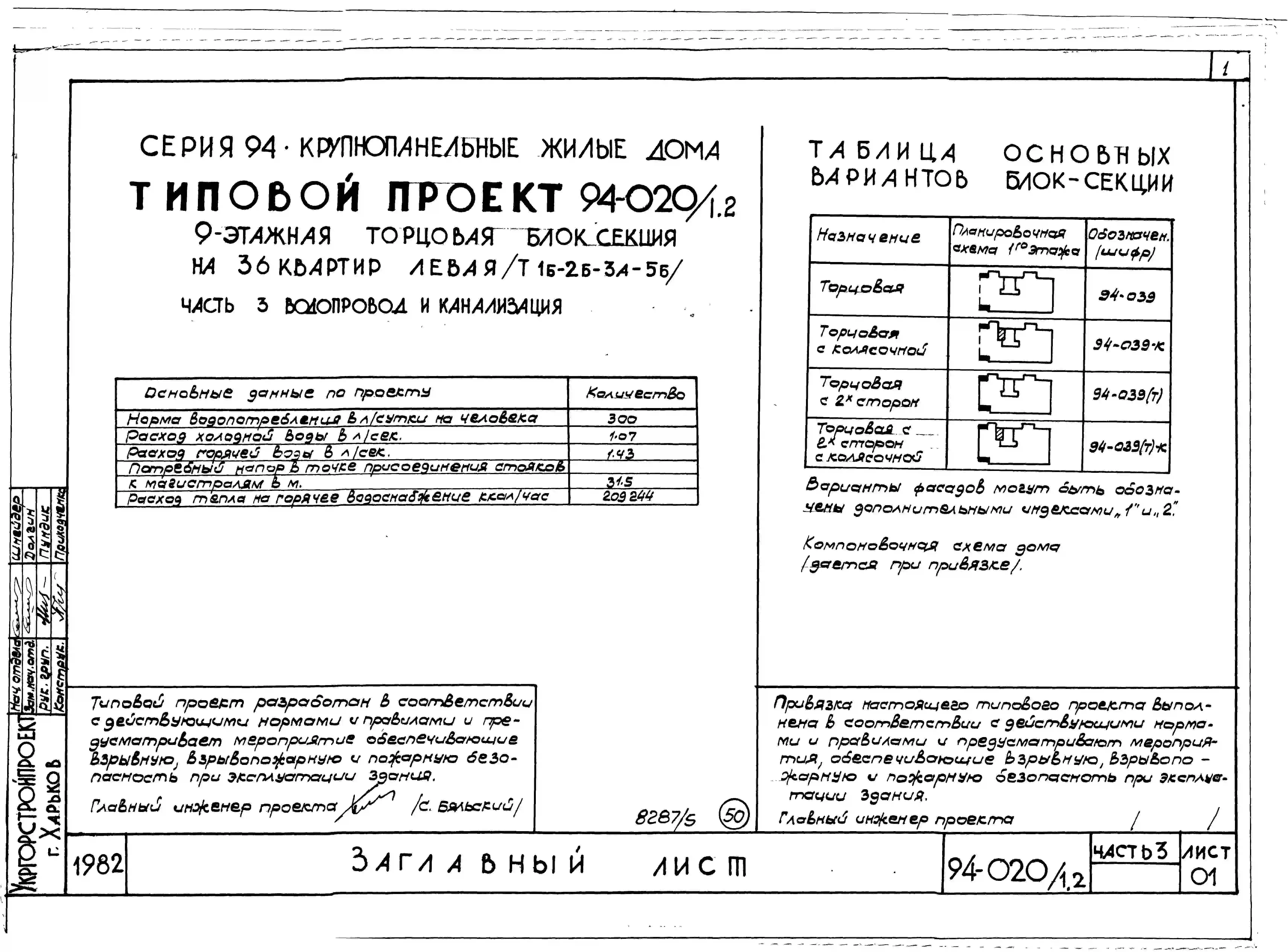 Типовой проект 94-020/1.2 9-этажная торцовая блок-секция на 36 квартир, левая 1Б-2Б-3А-5Б. Паспорт проекта (формат PDF) Чертежи (формат TIF)