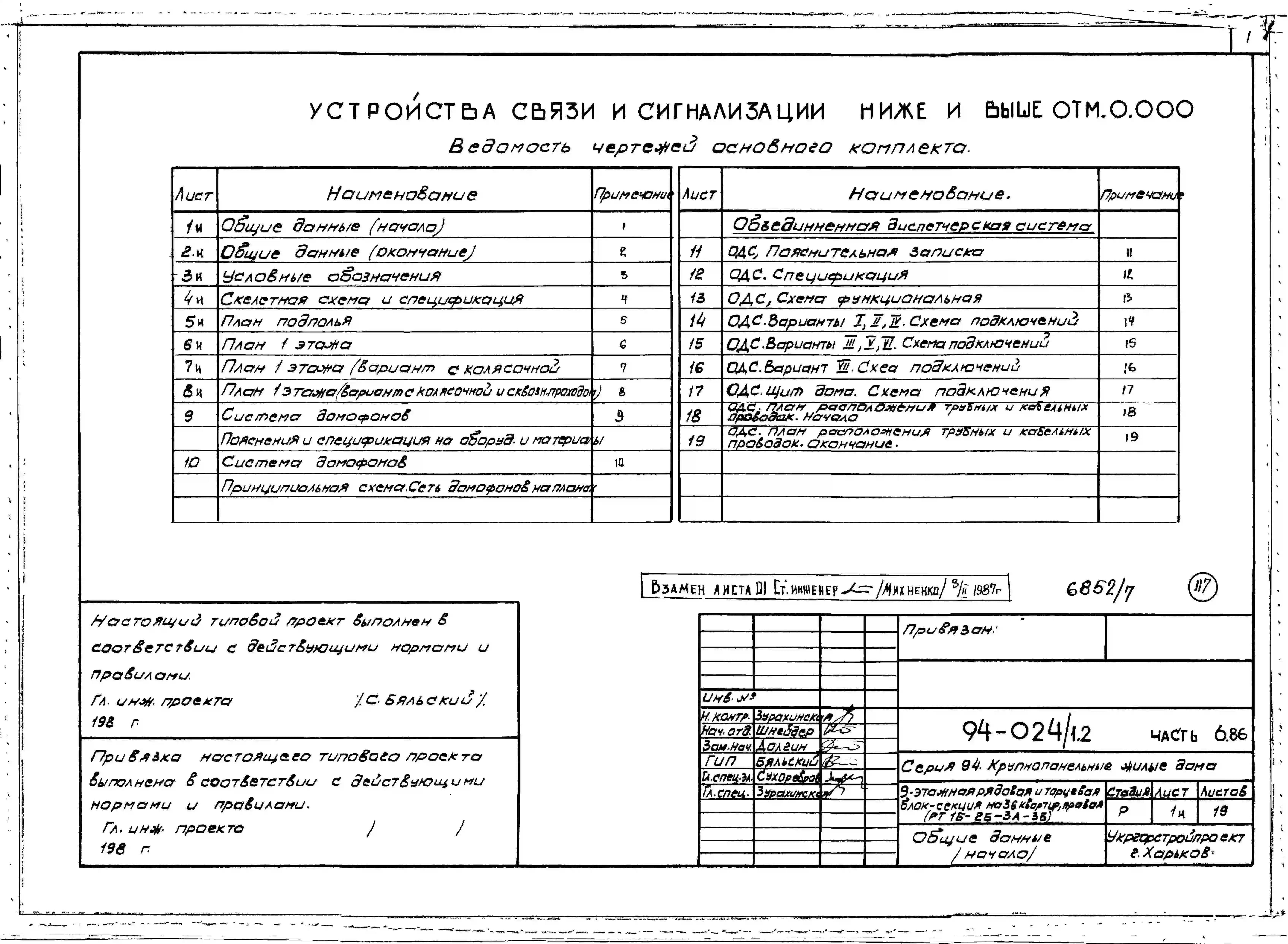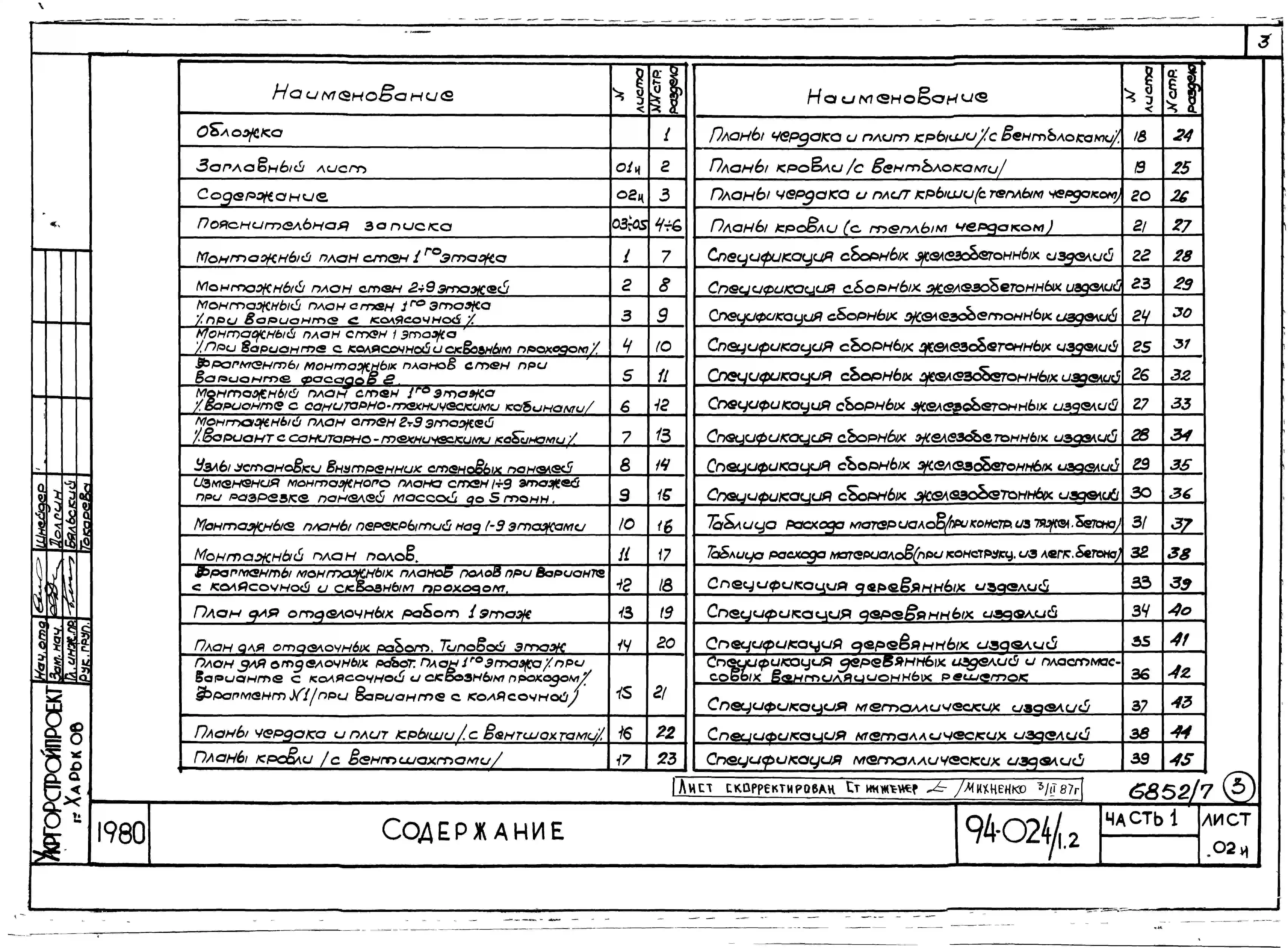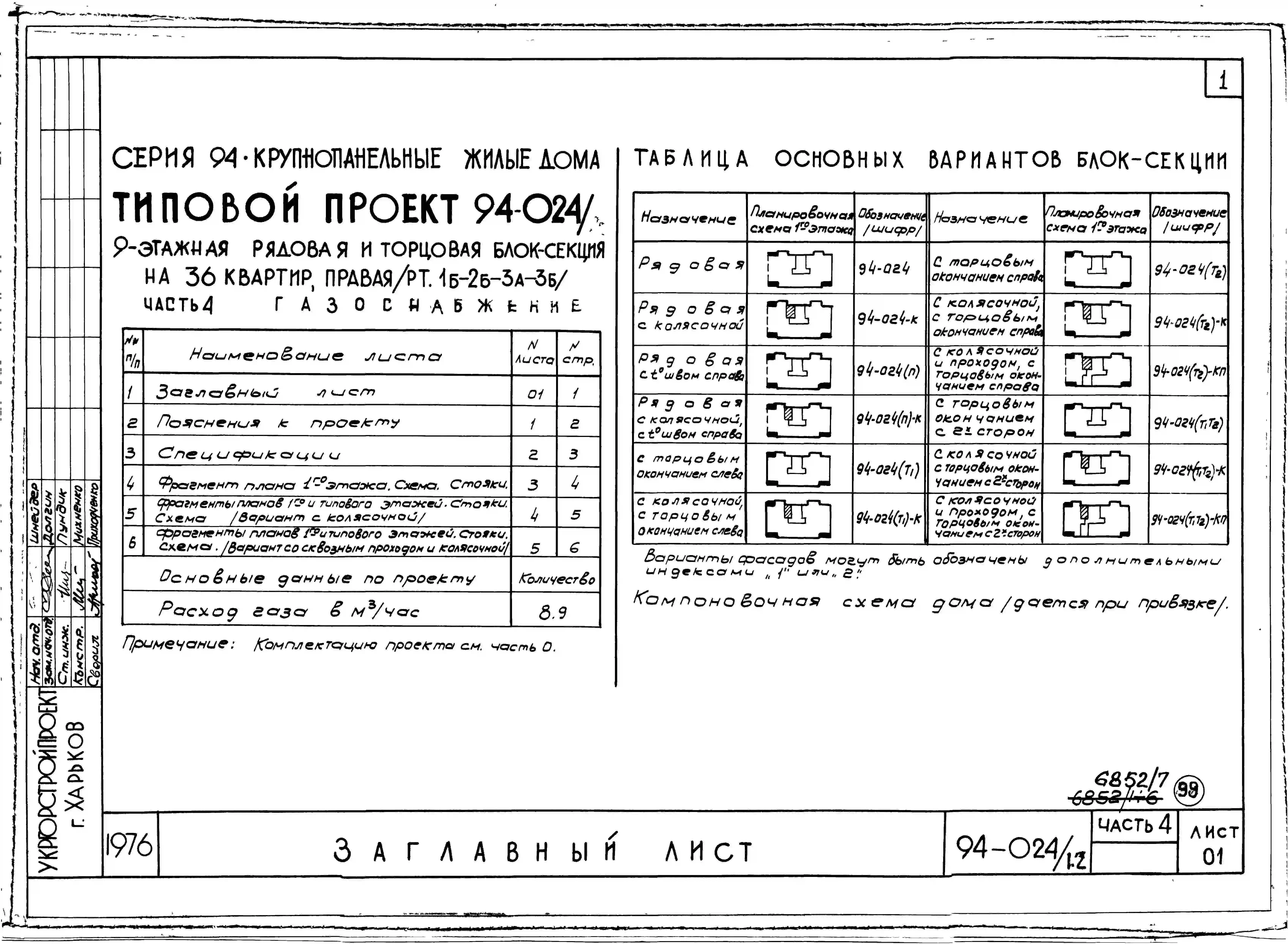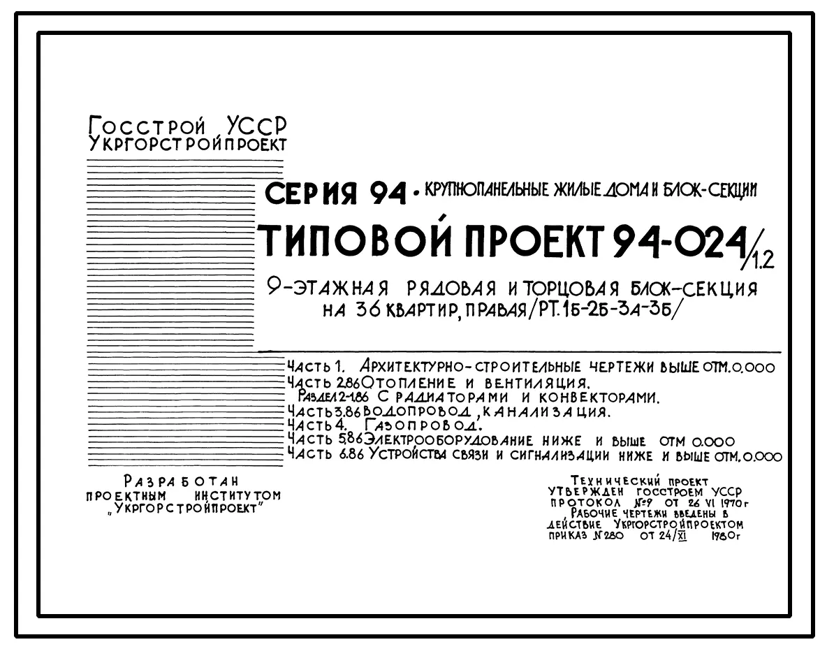 Типовой проект 94-024/1.2 Блок-секция 9-этажная 36-квартирная рядовая с торцовыми окончаниями, правая 1Б-2Б-3А-3Б. Паспорт проекта (формат PDF) Чертежи (формат TIF)
