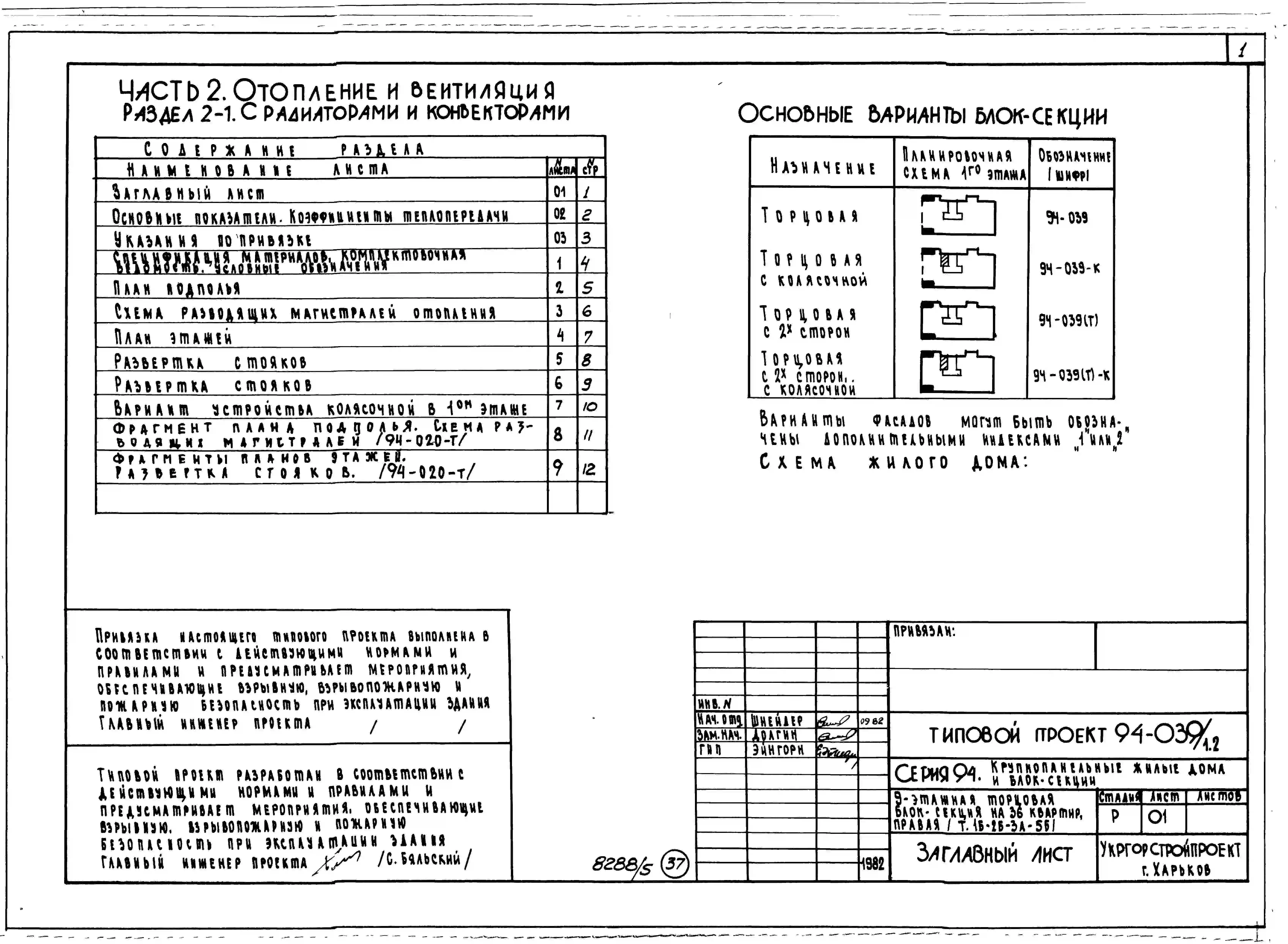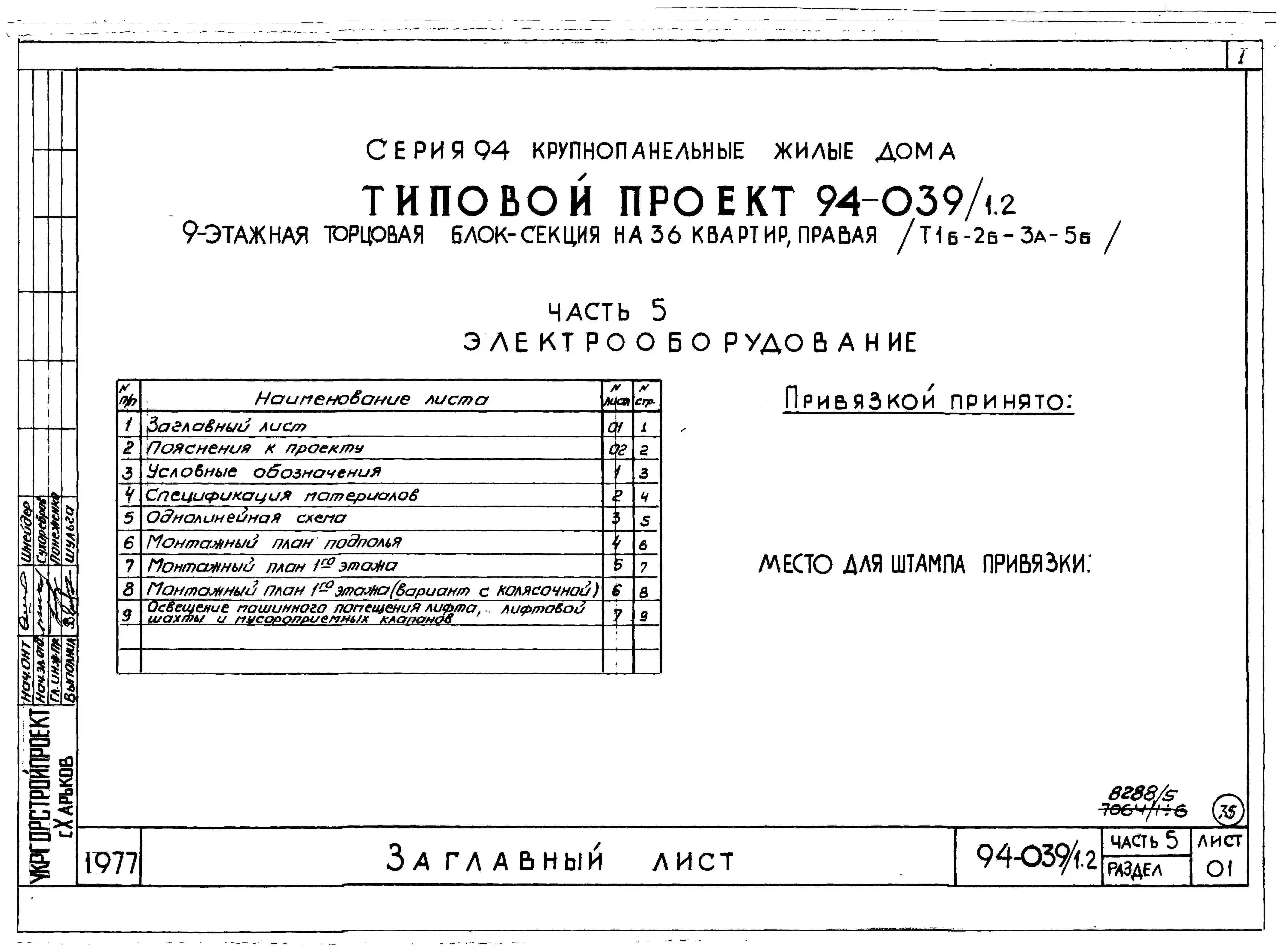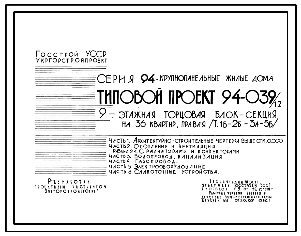 Типовой проект 94-039/1.2 9-этажная торцовая блок-секция на 36 квартир, левая 1Б-2Б-3А-5Б