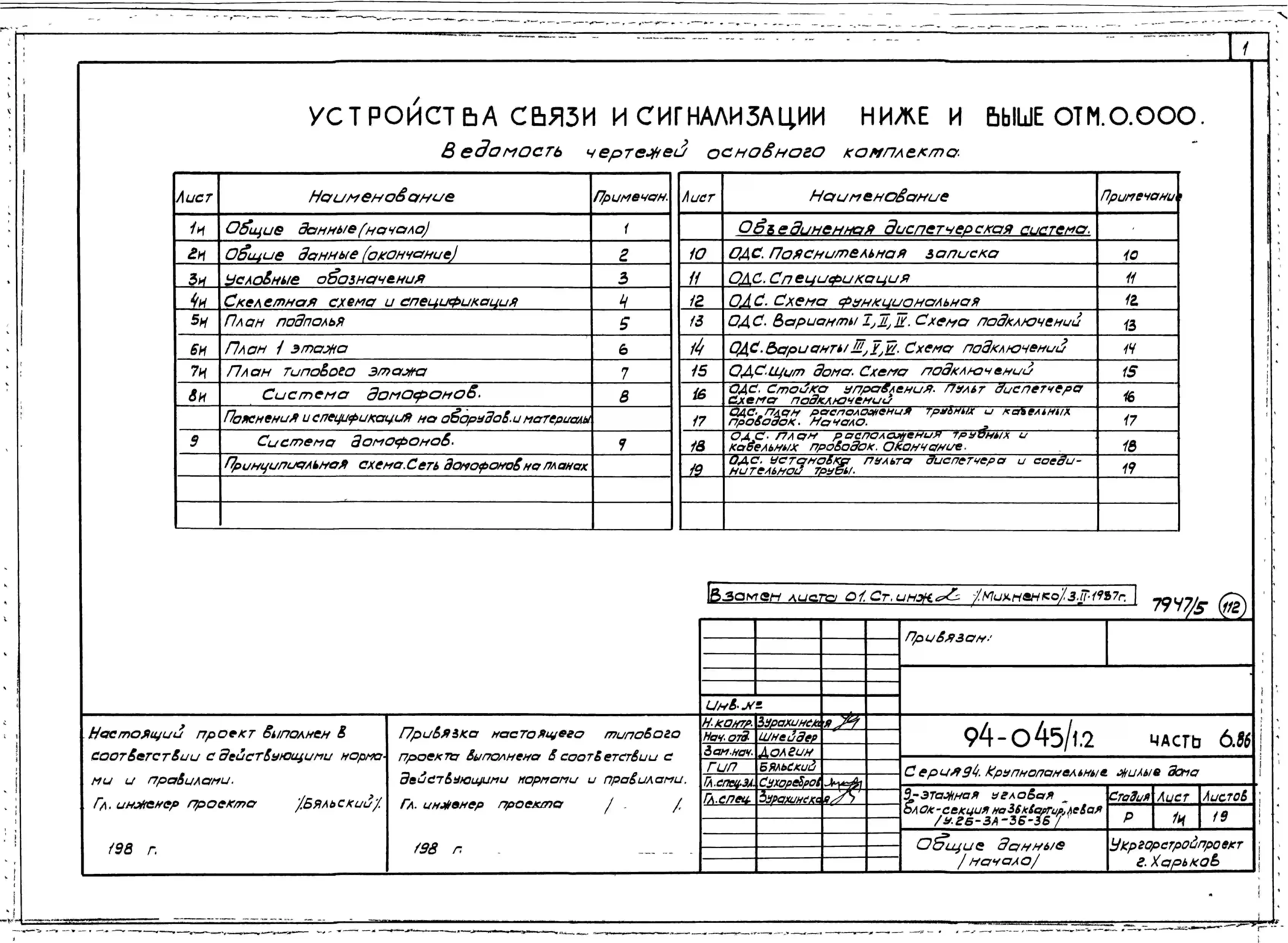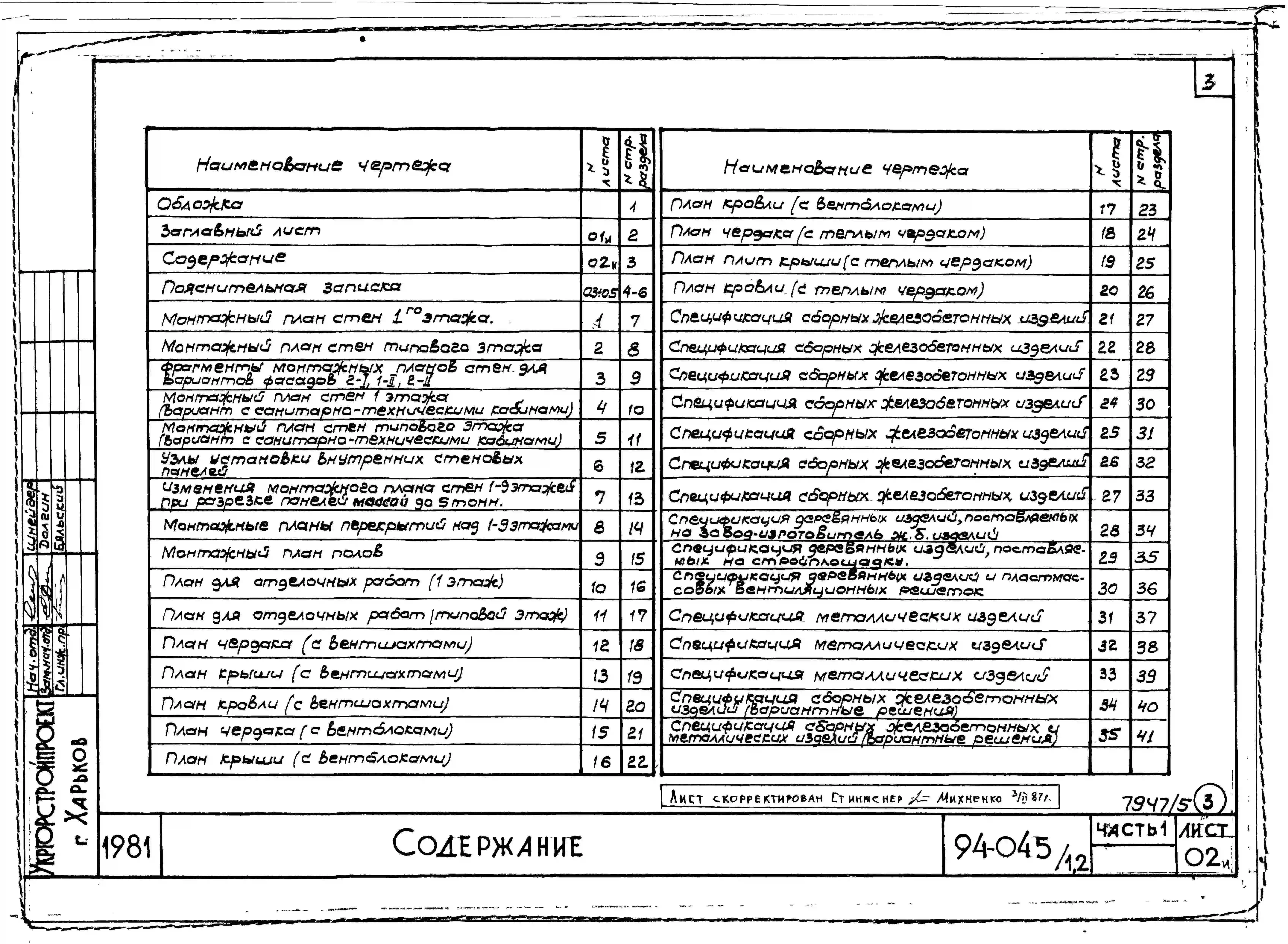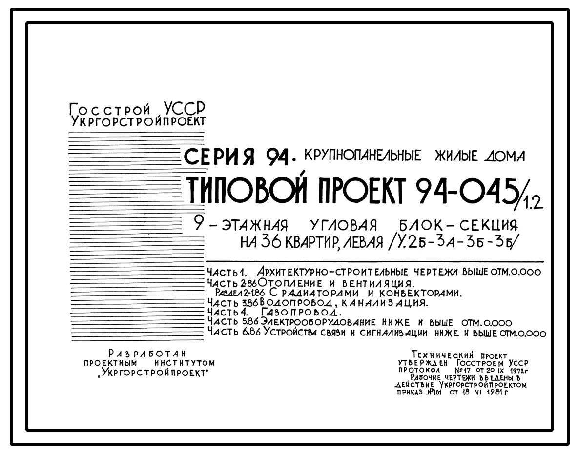 Типовой проект 94-045/1.2 Блок-секция угловая левая 9-этажная 36-квартирная 2Б-3А-3Б-3Б