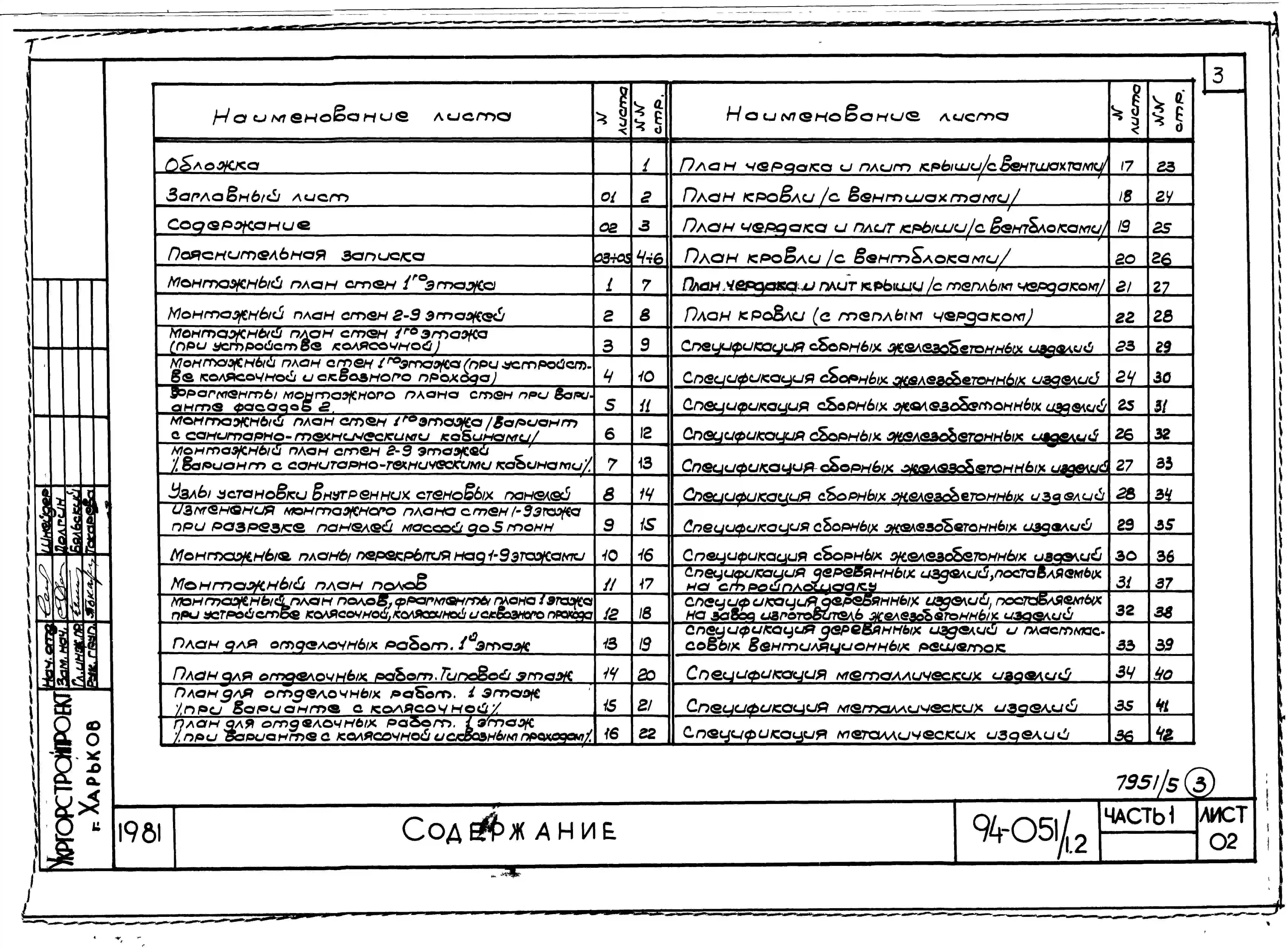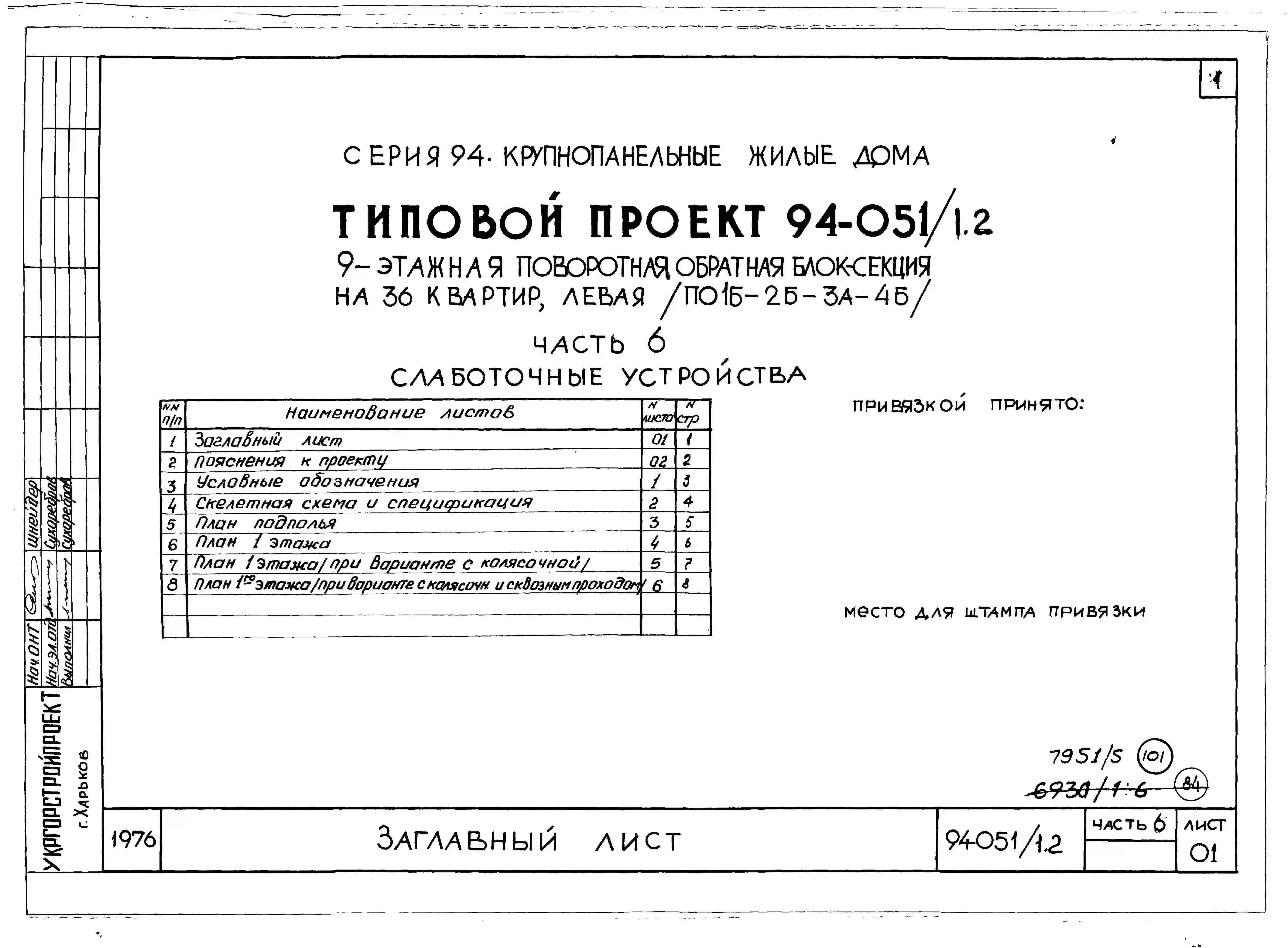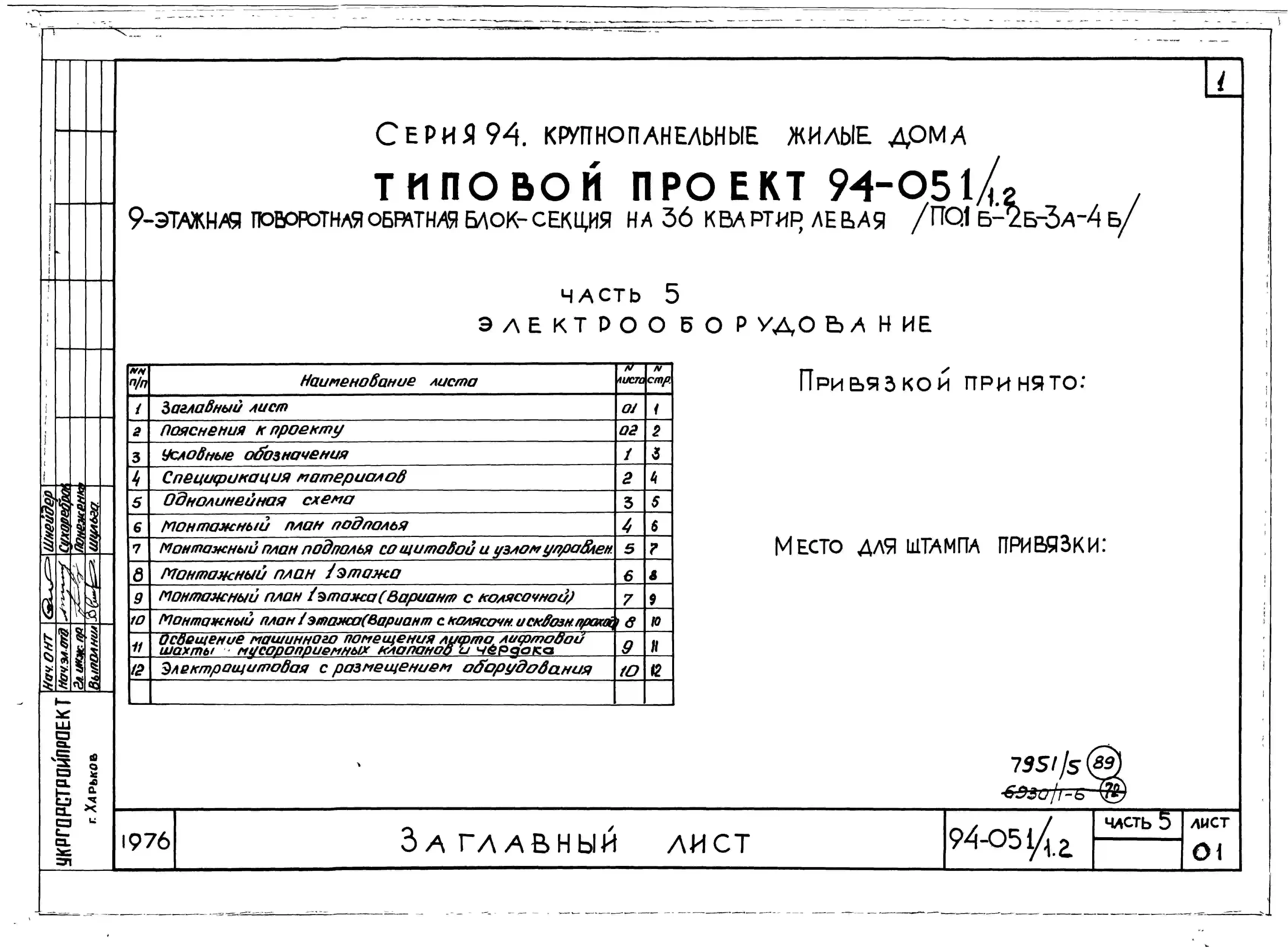 Типовой проект 94-051/1.2 Блок-секция поворотная обратная левая 9-этажная 36-квартирная 1Б-2Б-3А-4Б
