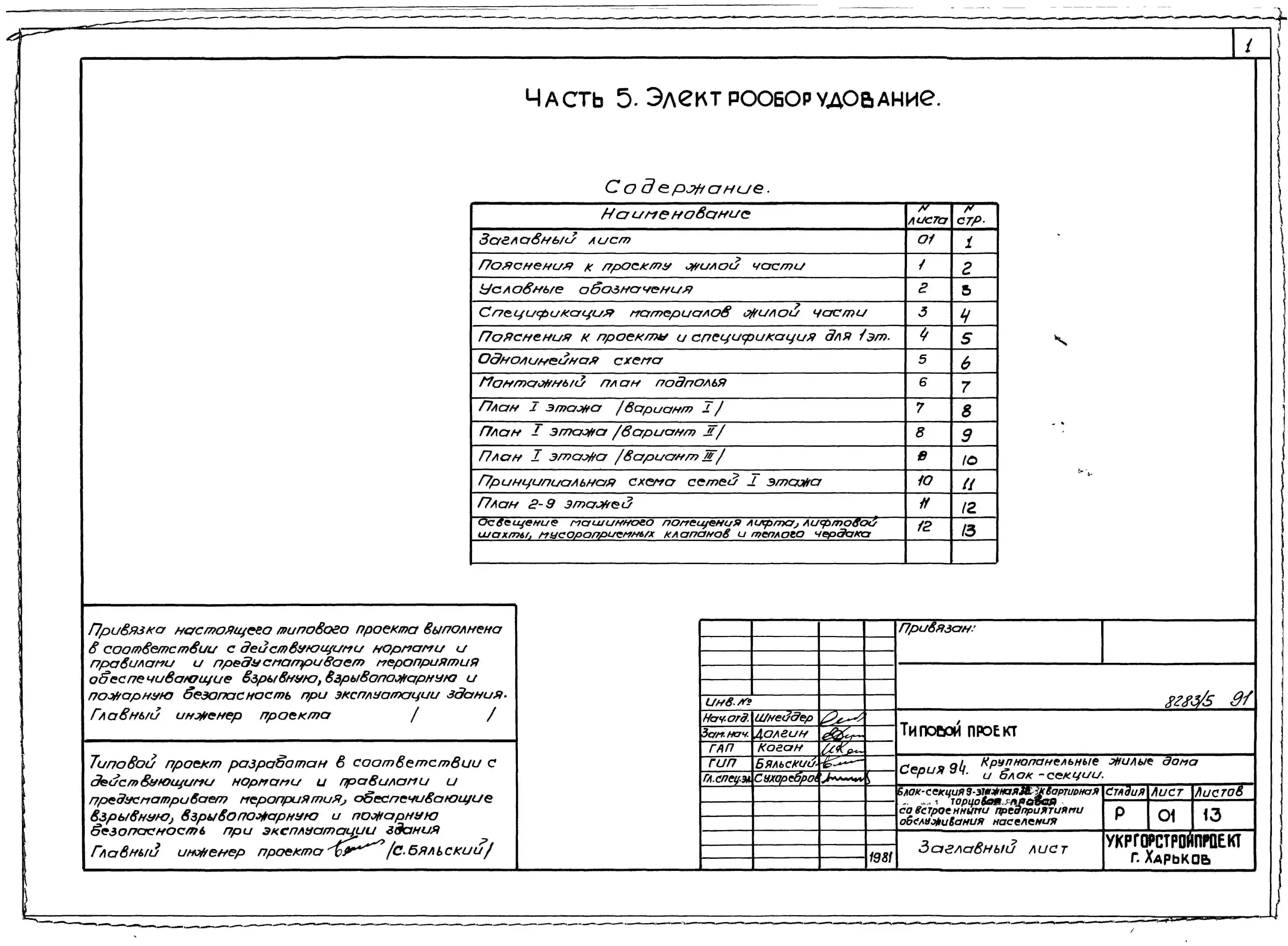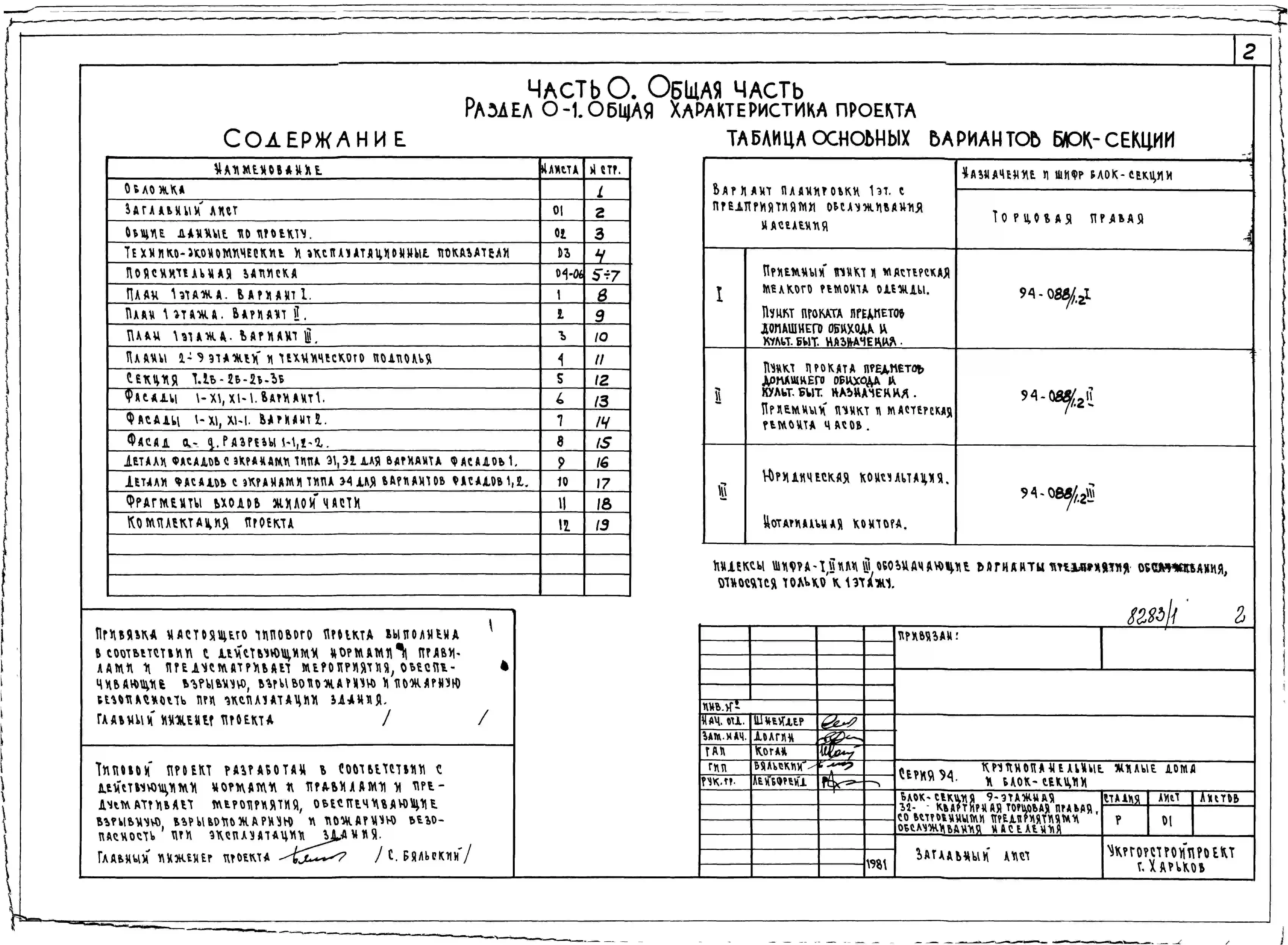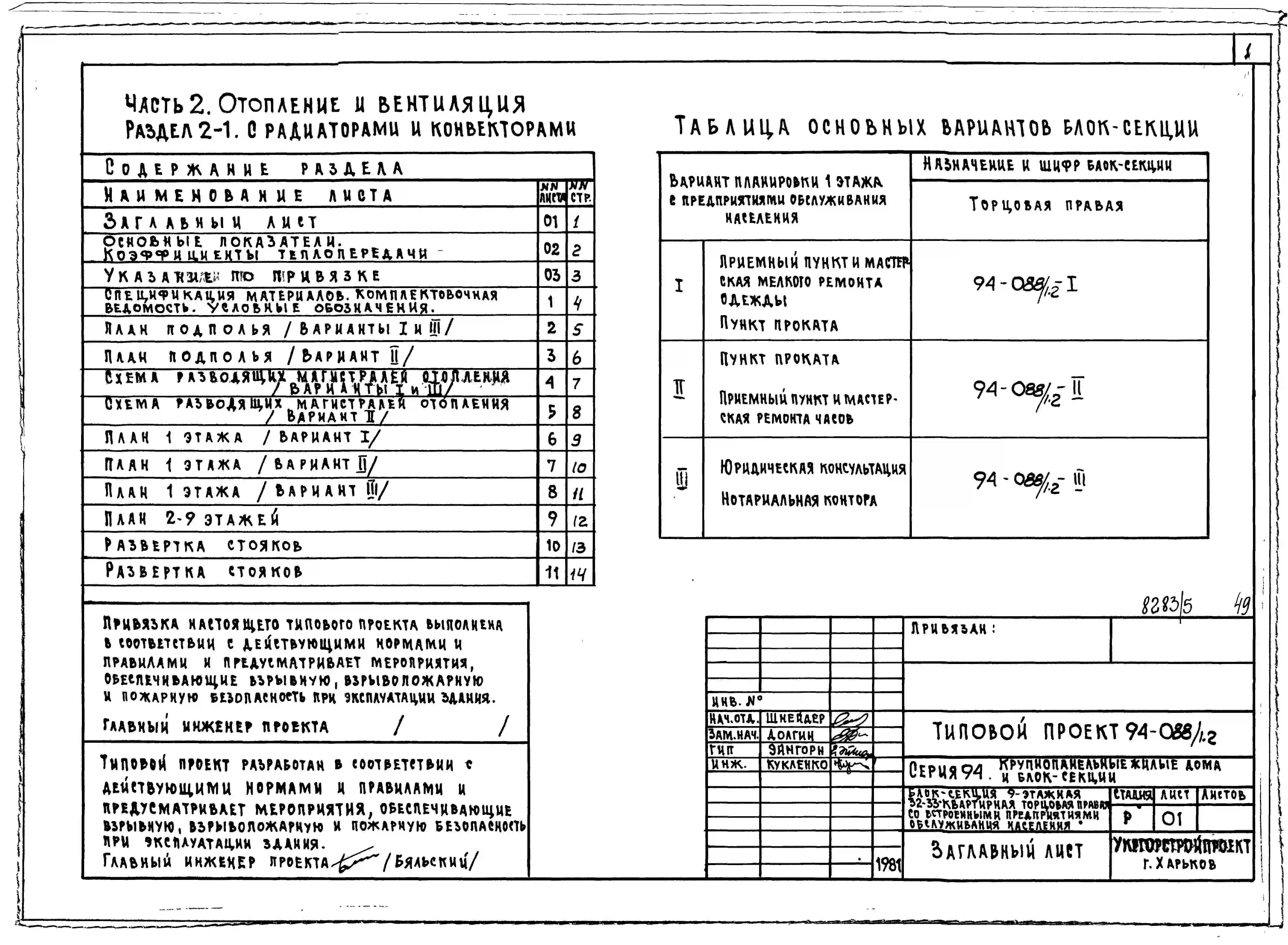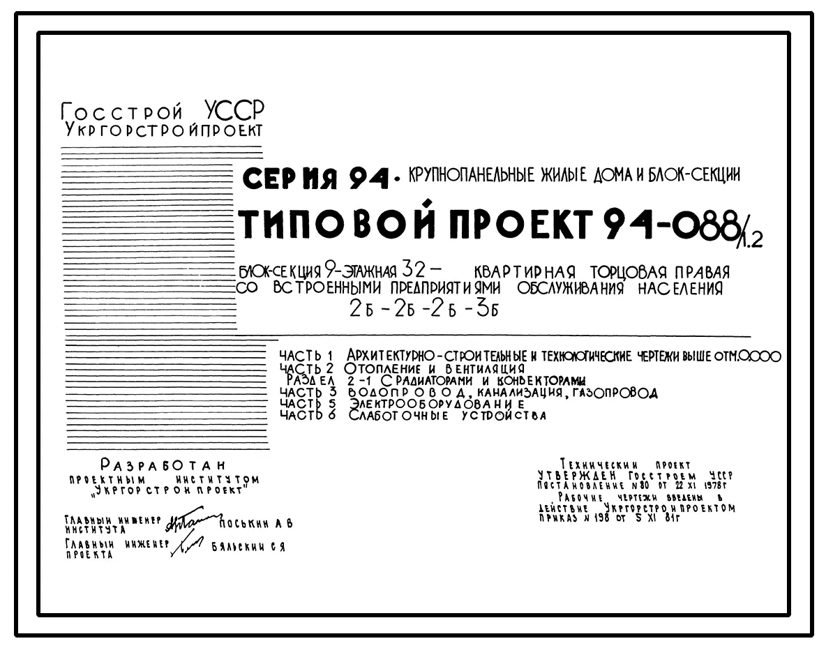 Типовой проект 94-088/1.2 Блок-секция 9-этажная 32-квартирная торцовая, правая со встроенными предприятиями обслуживания населения 2Б-2Б-2Б-3Б