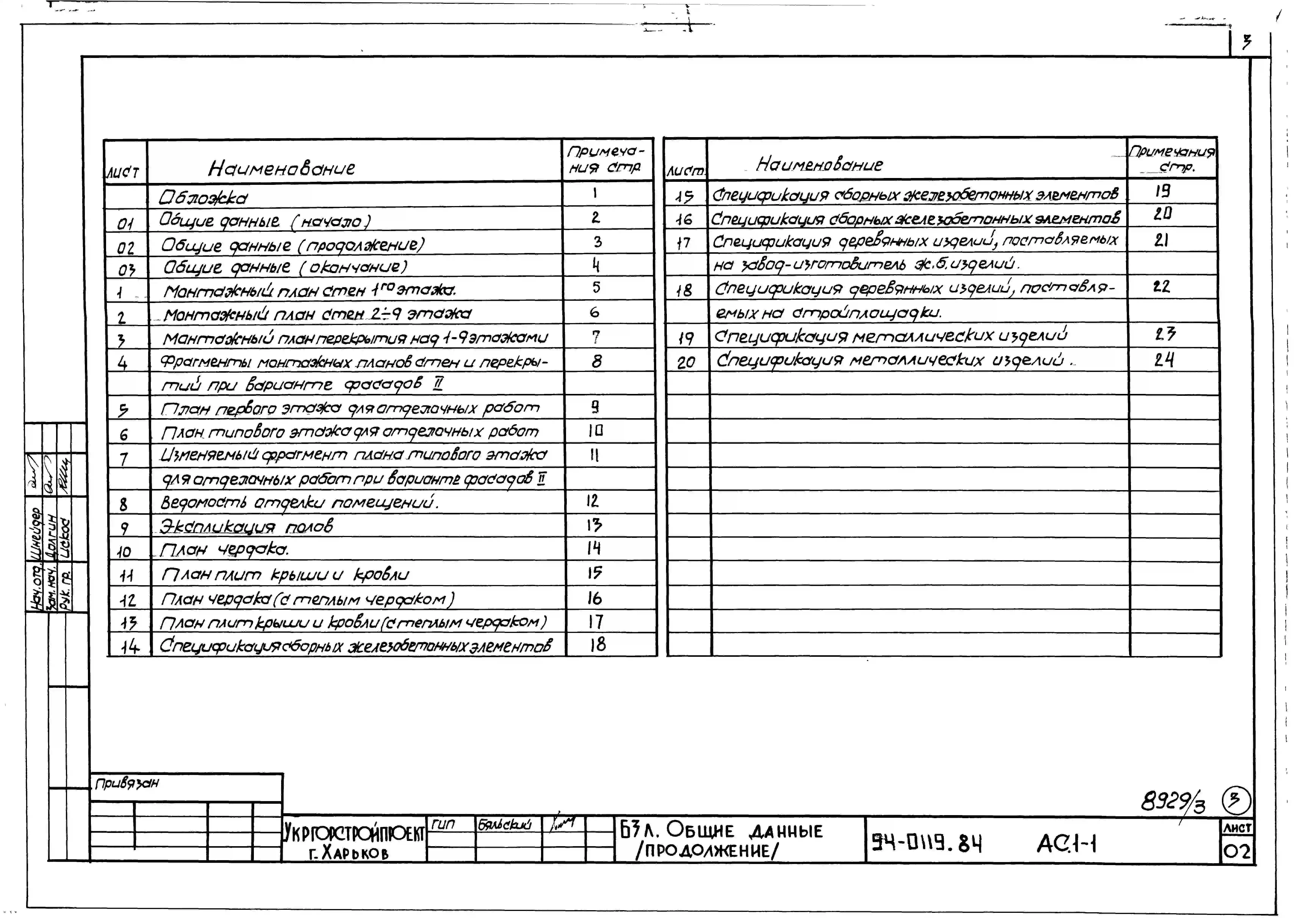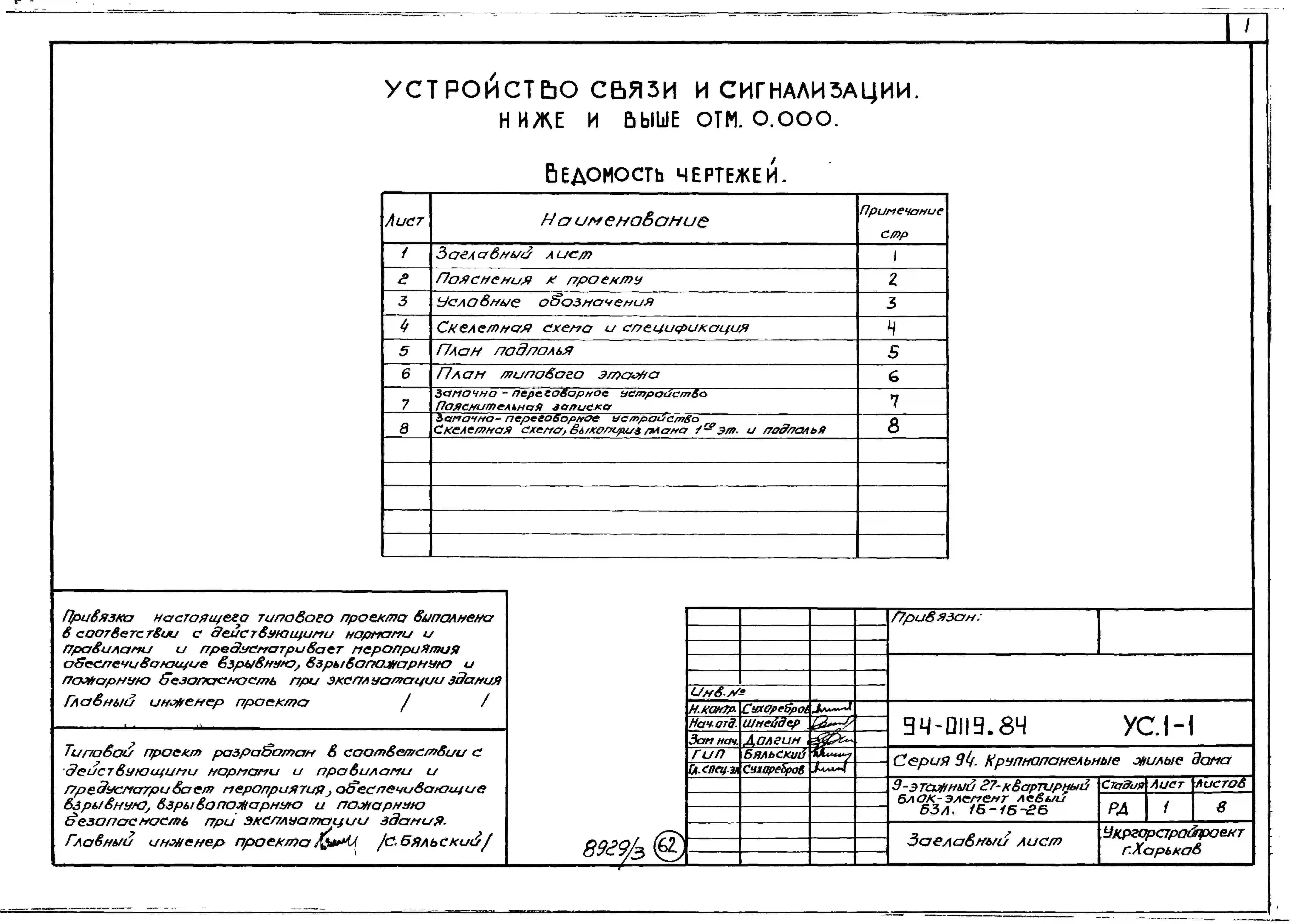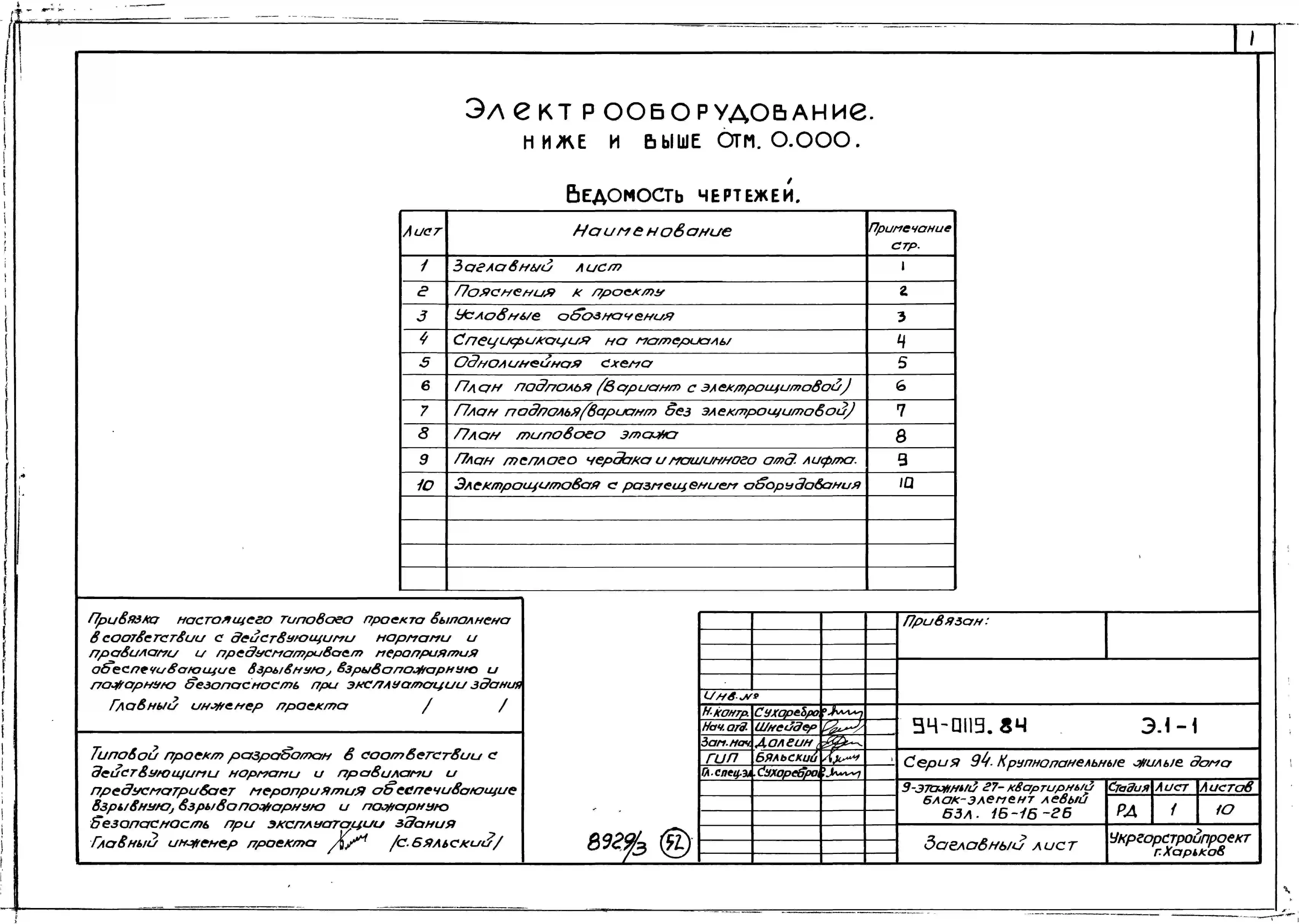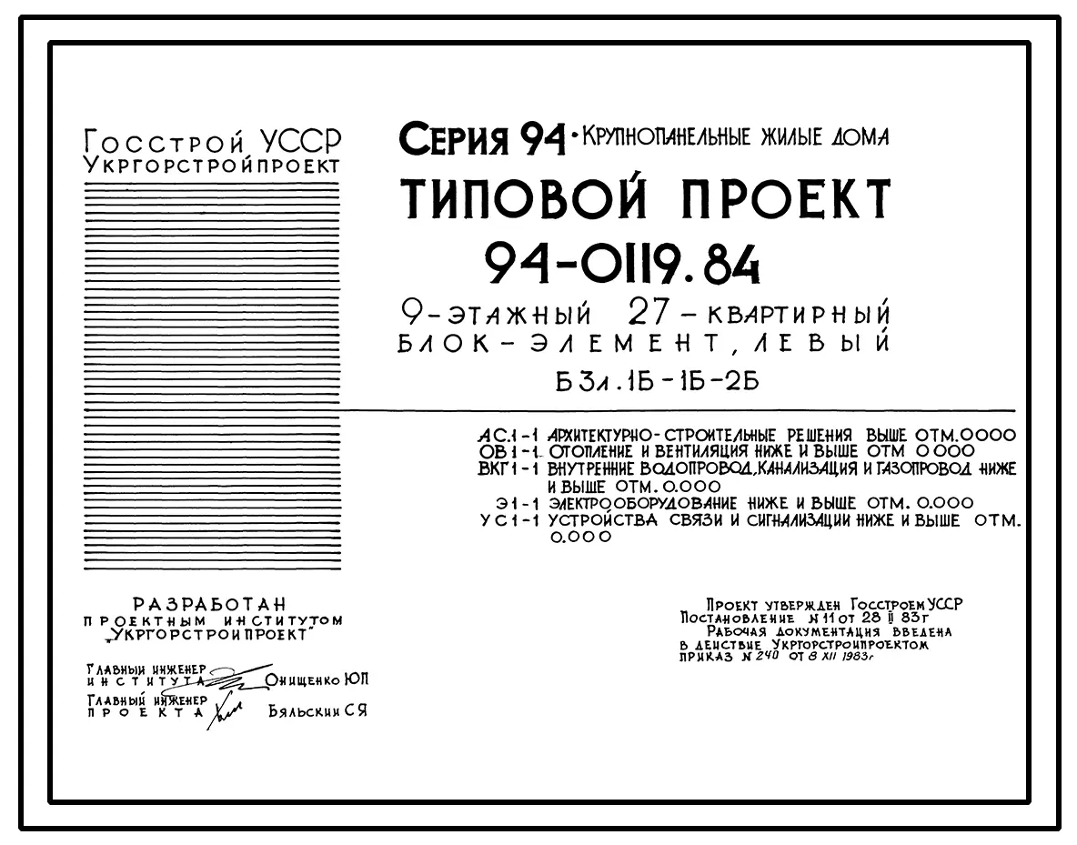 Типовой проект 94-0119.84 9-этажный 27-квартирный блок-элемент, левый Б 3л. 1Б-1Б-2Б /для строительства в г. Херсоне/