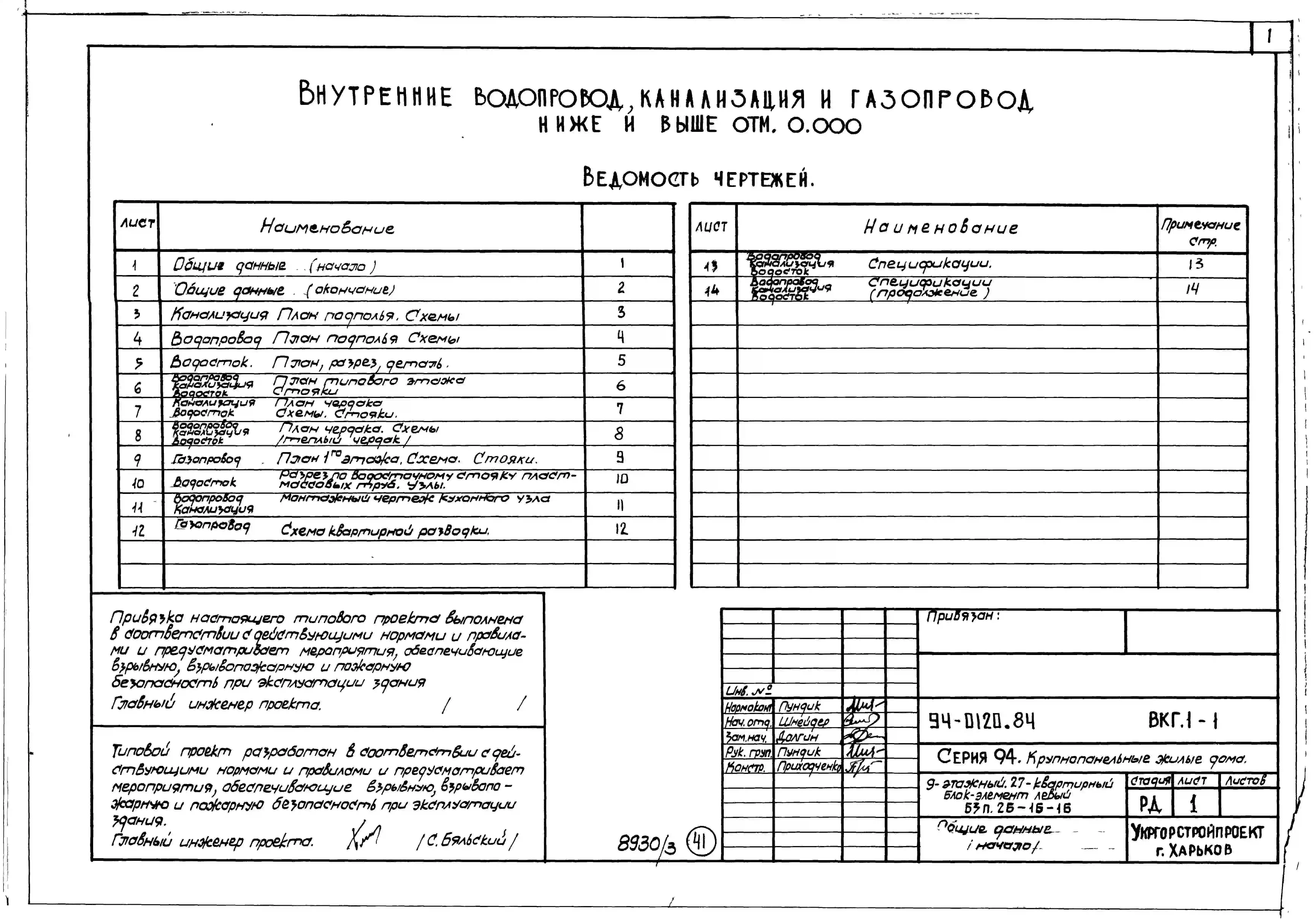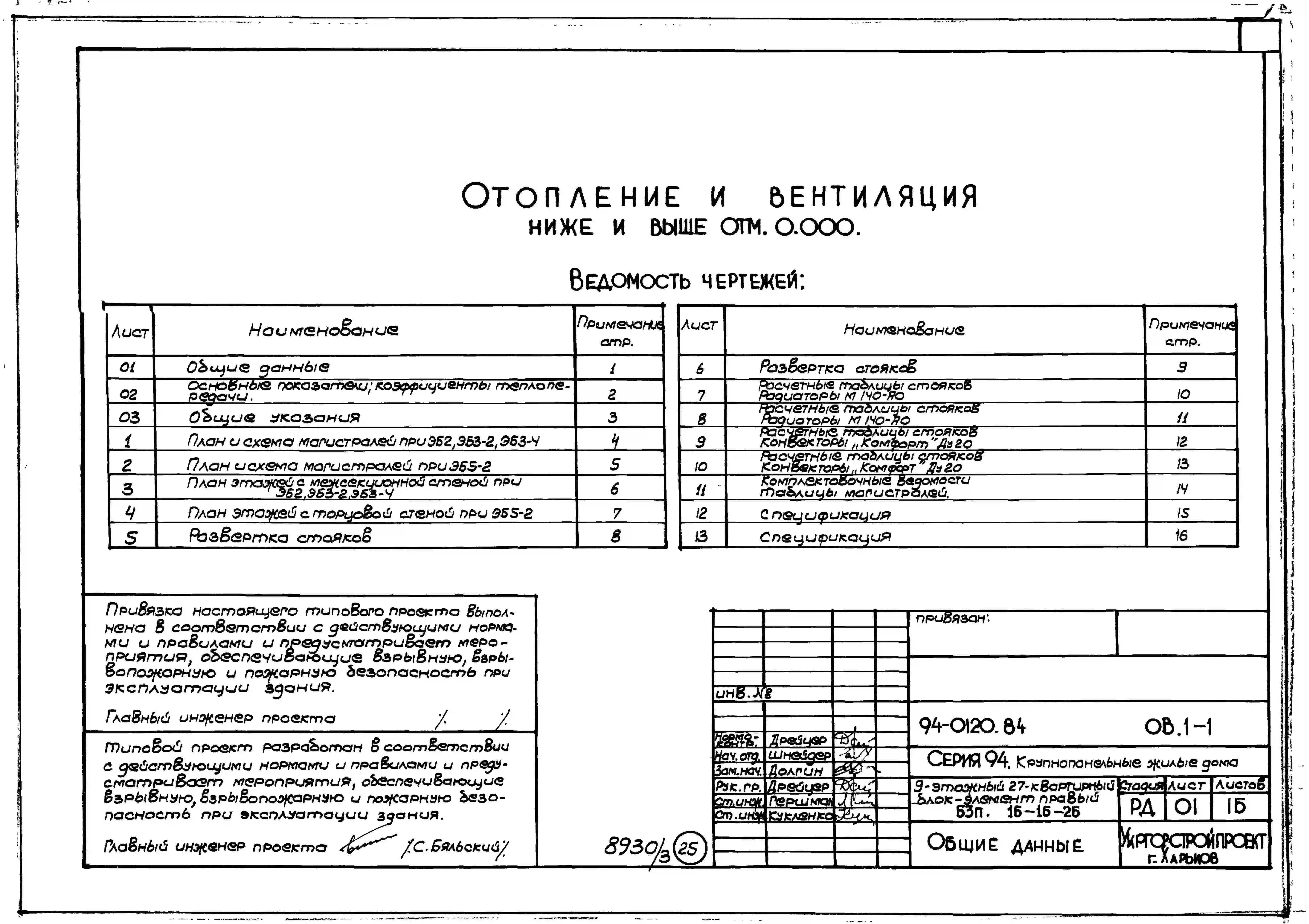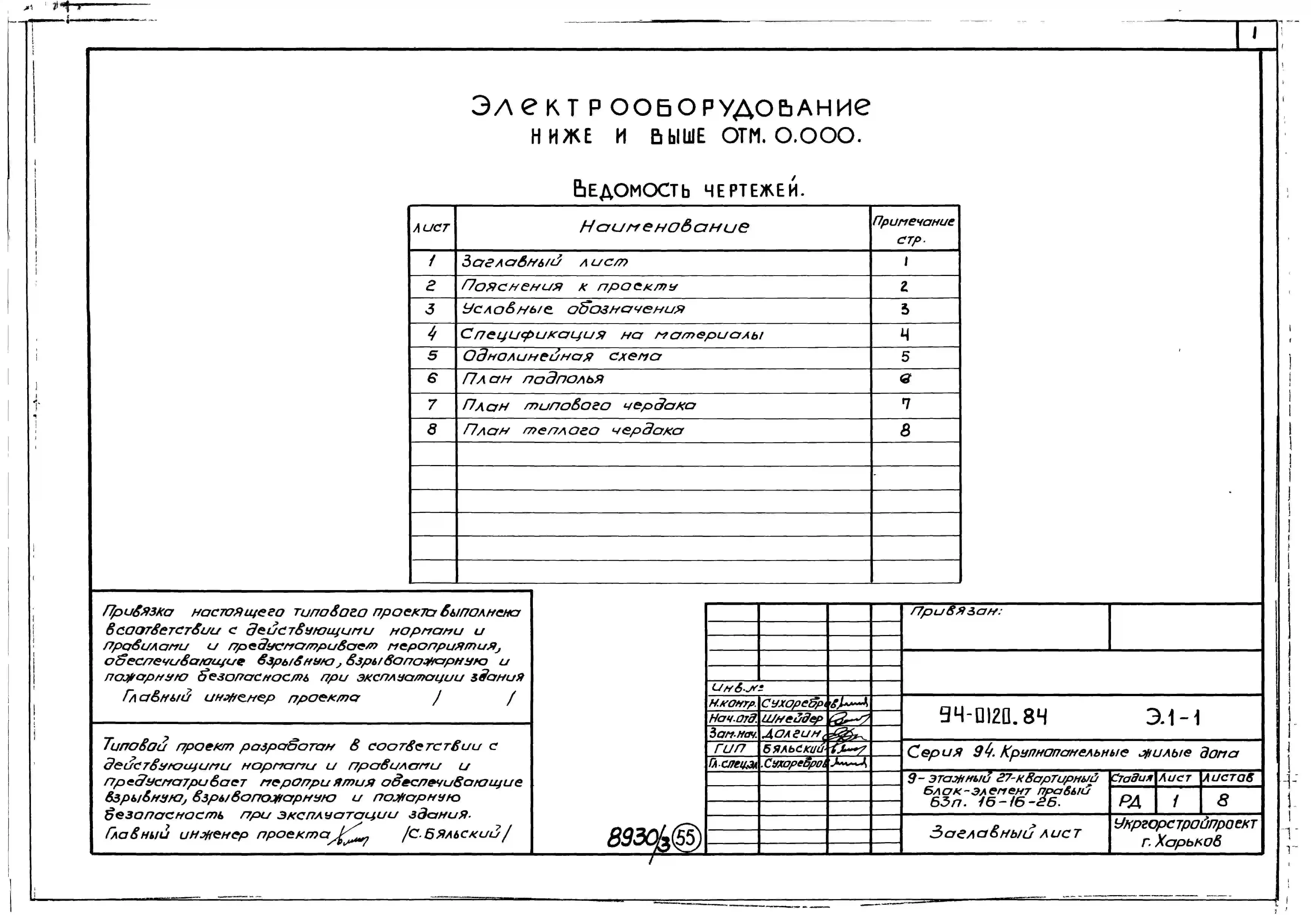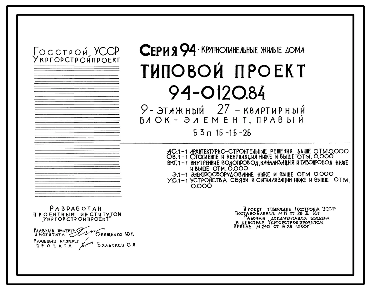 Типовой проект 94-0120.84 9-этажный 27-квартирный блок-элемент, правый Б 3п. 1Б-1Б-2Б /для строительства в г. Херсоне/