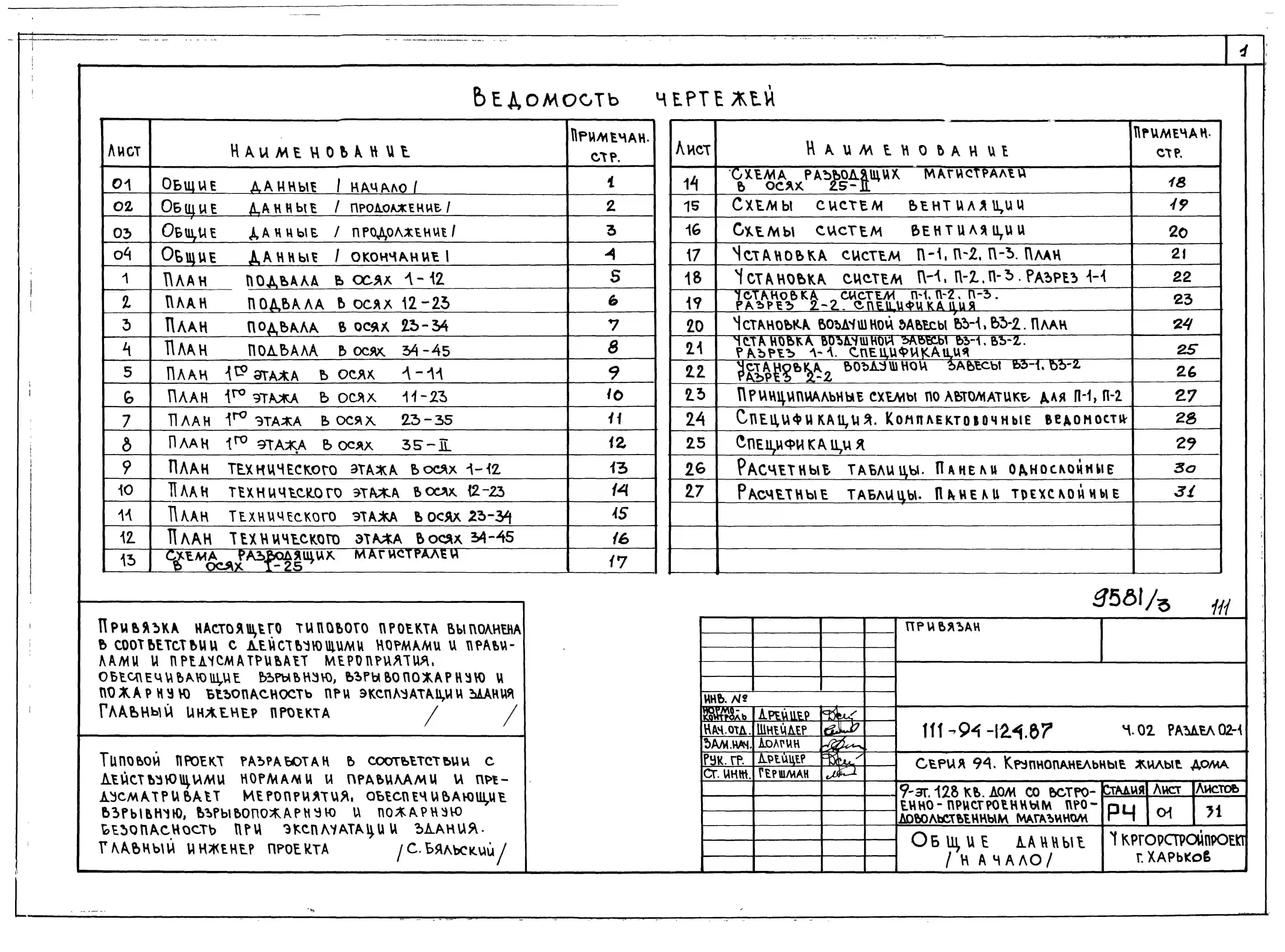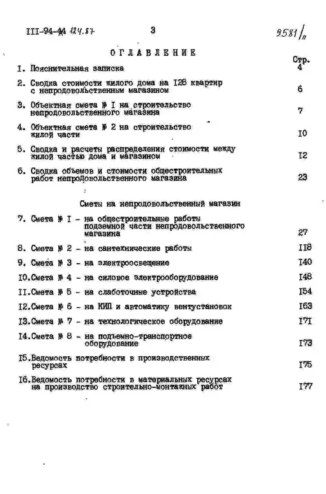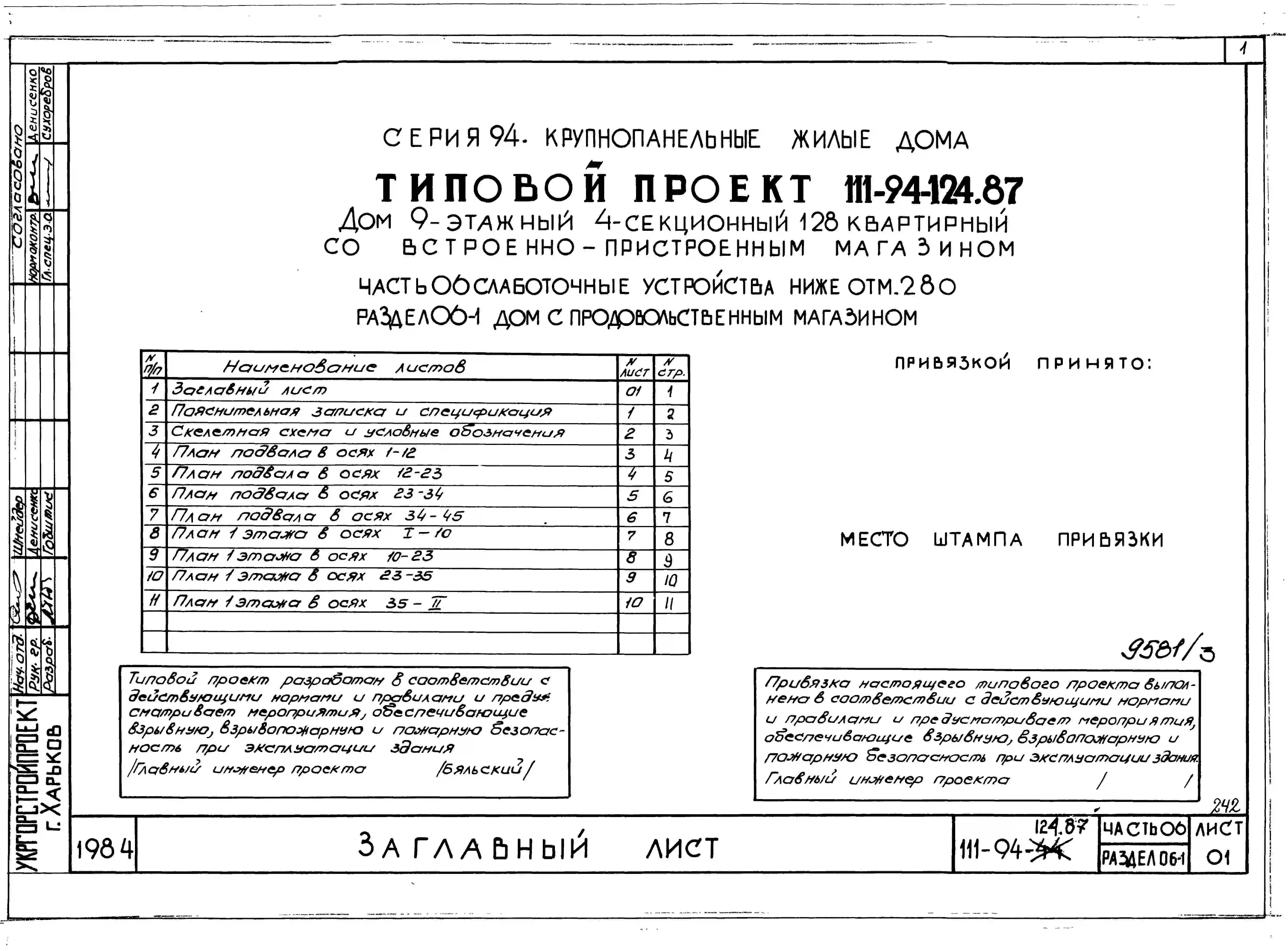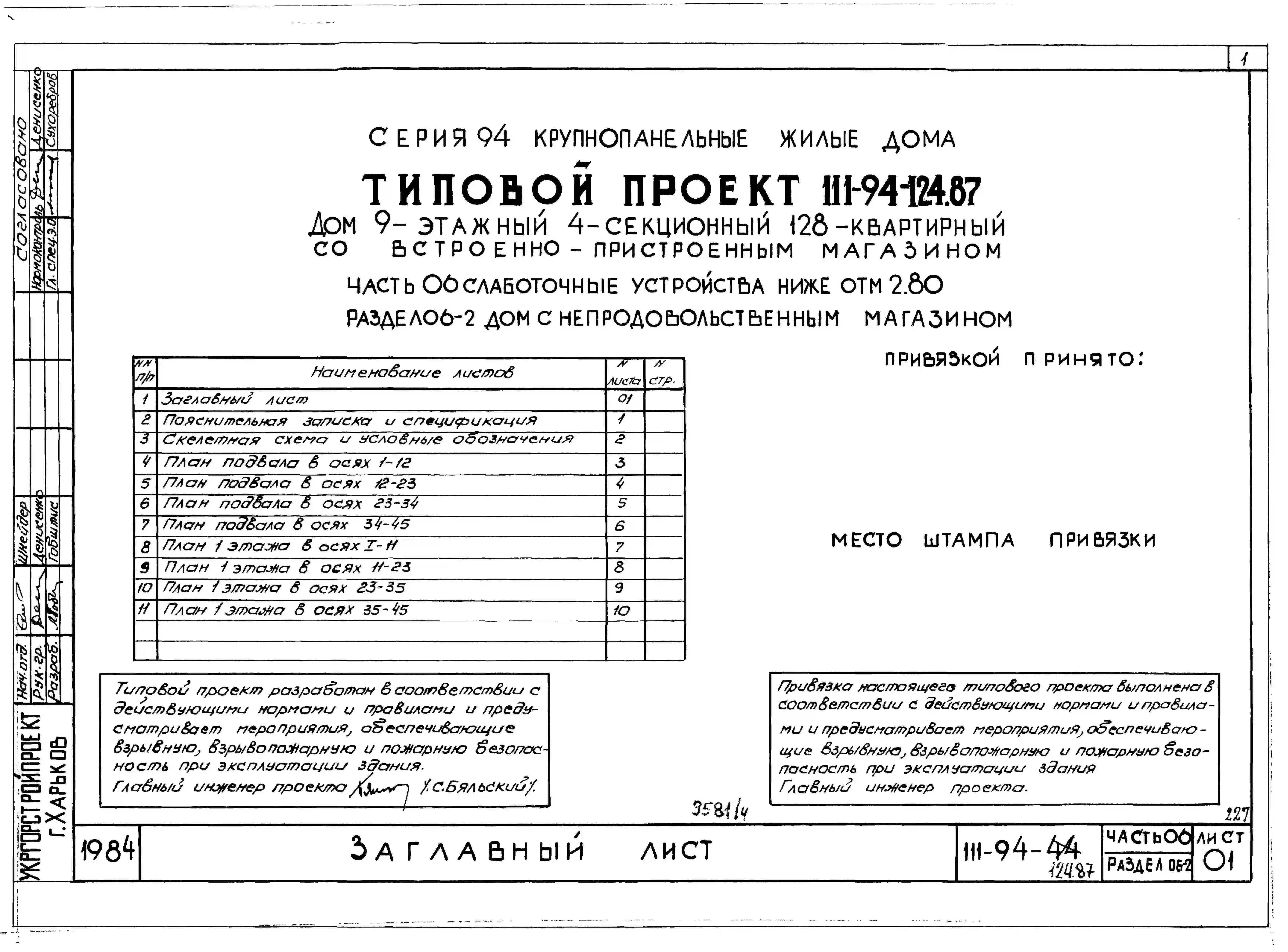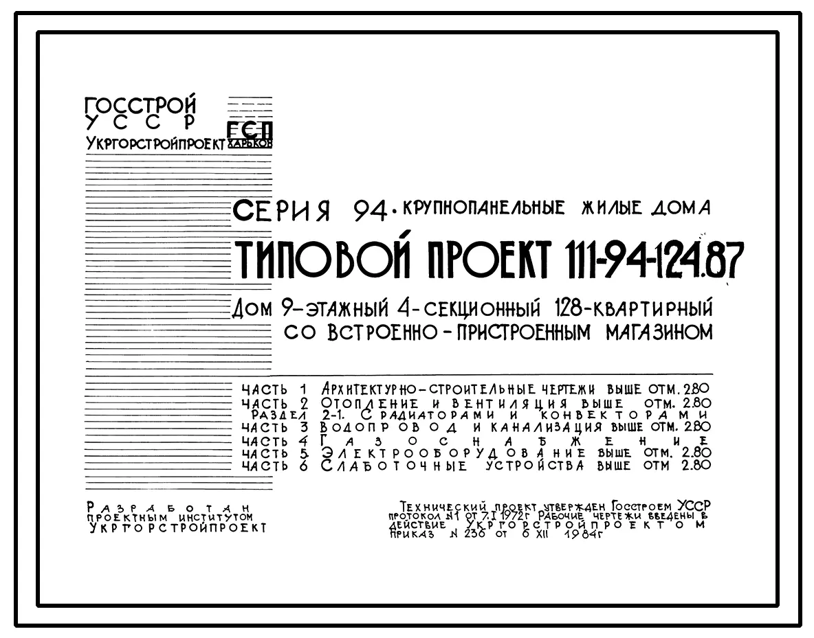 Типовой проект 111-94-124.87 Дом 9-этажный 4-секционный 128-квартирный со встроенно-пристроенным магазином