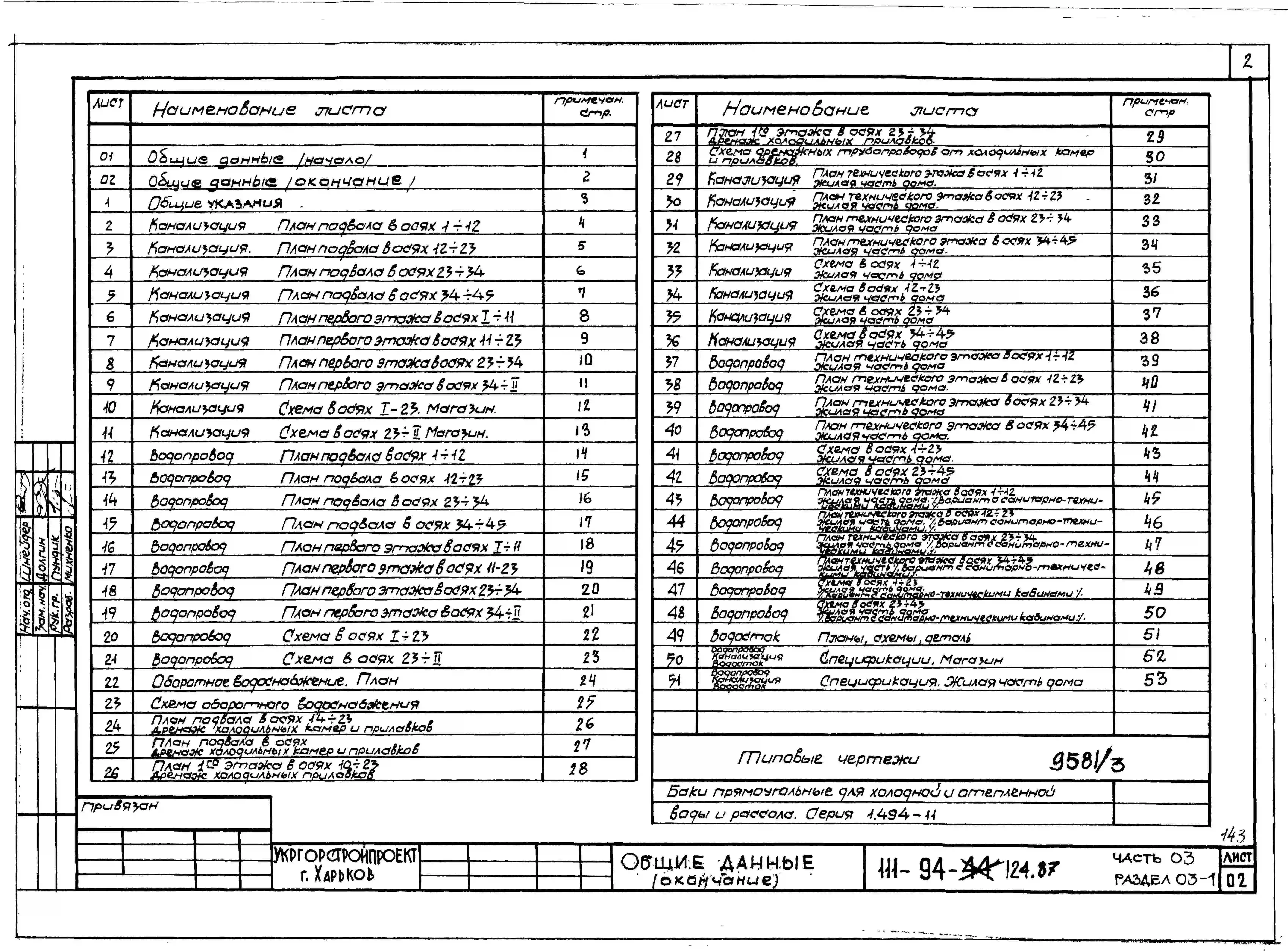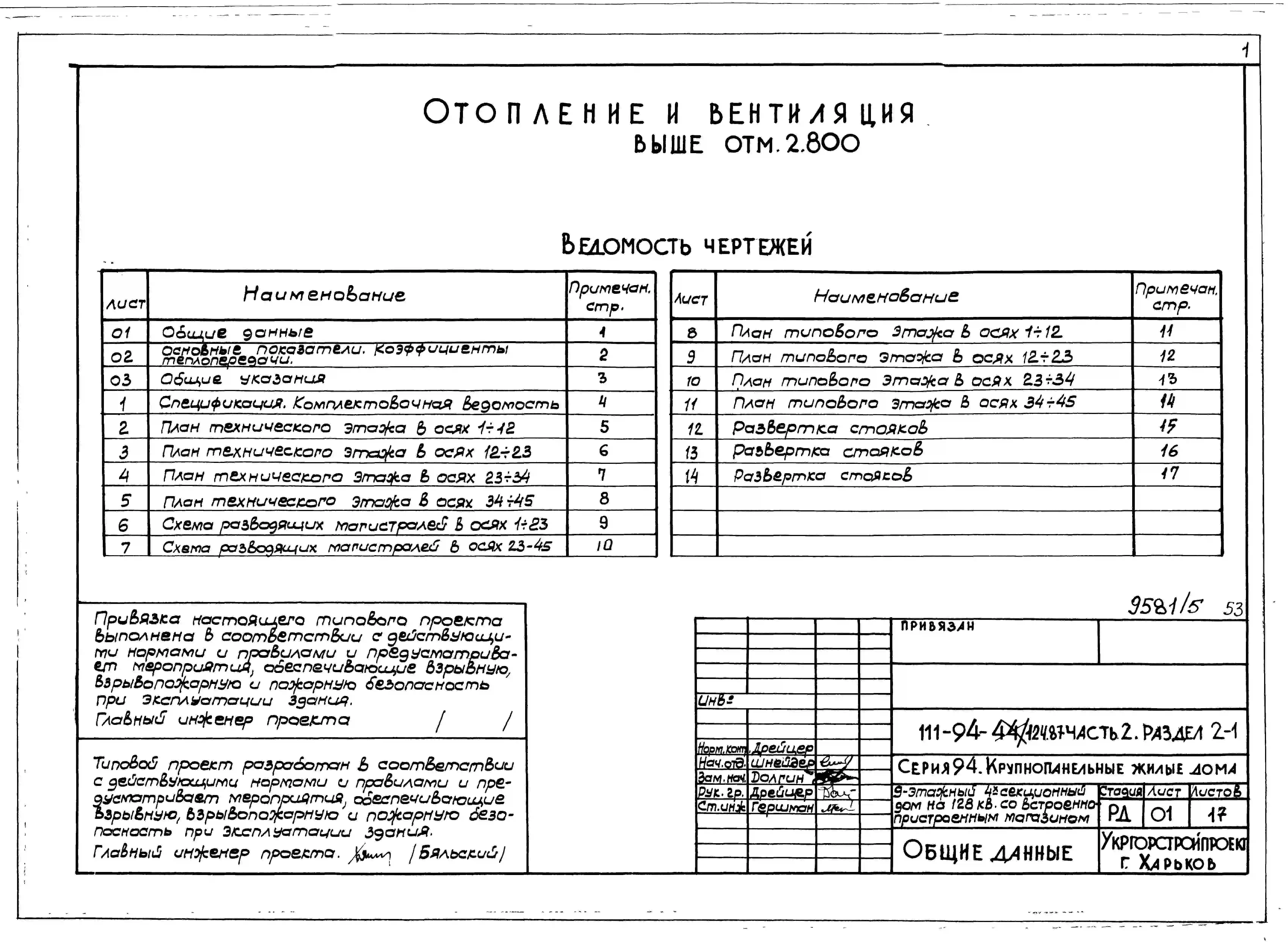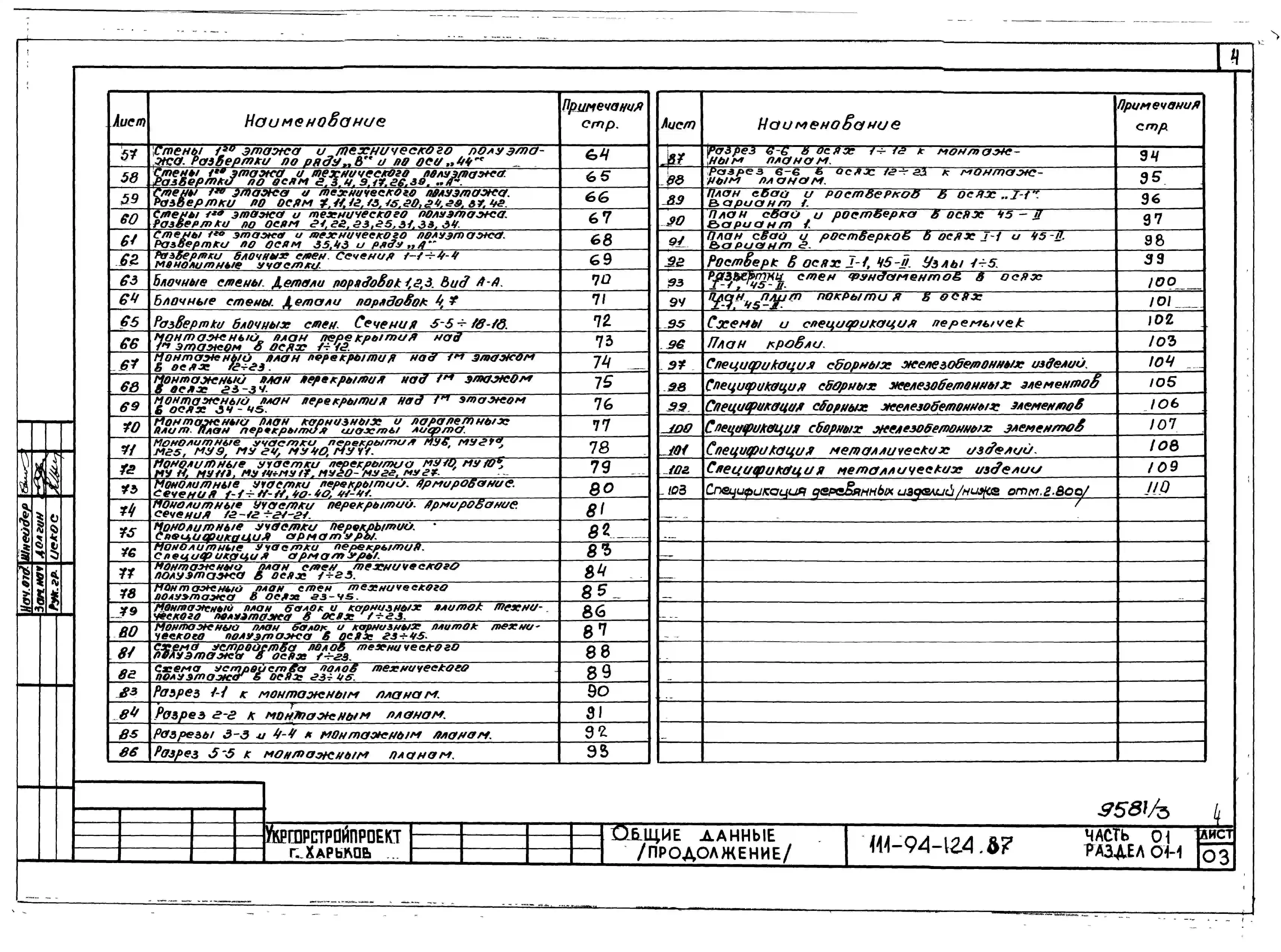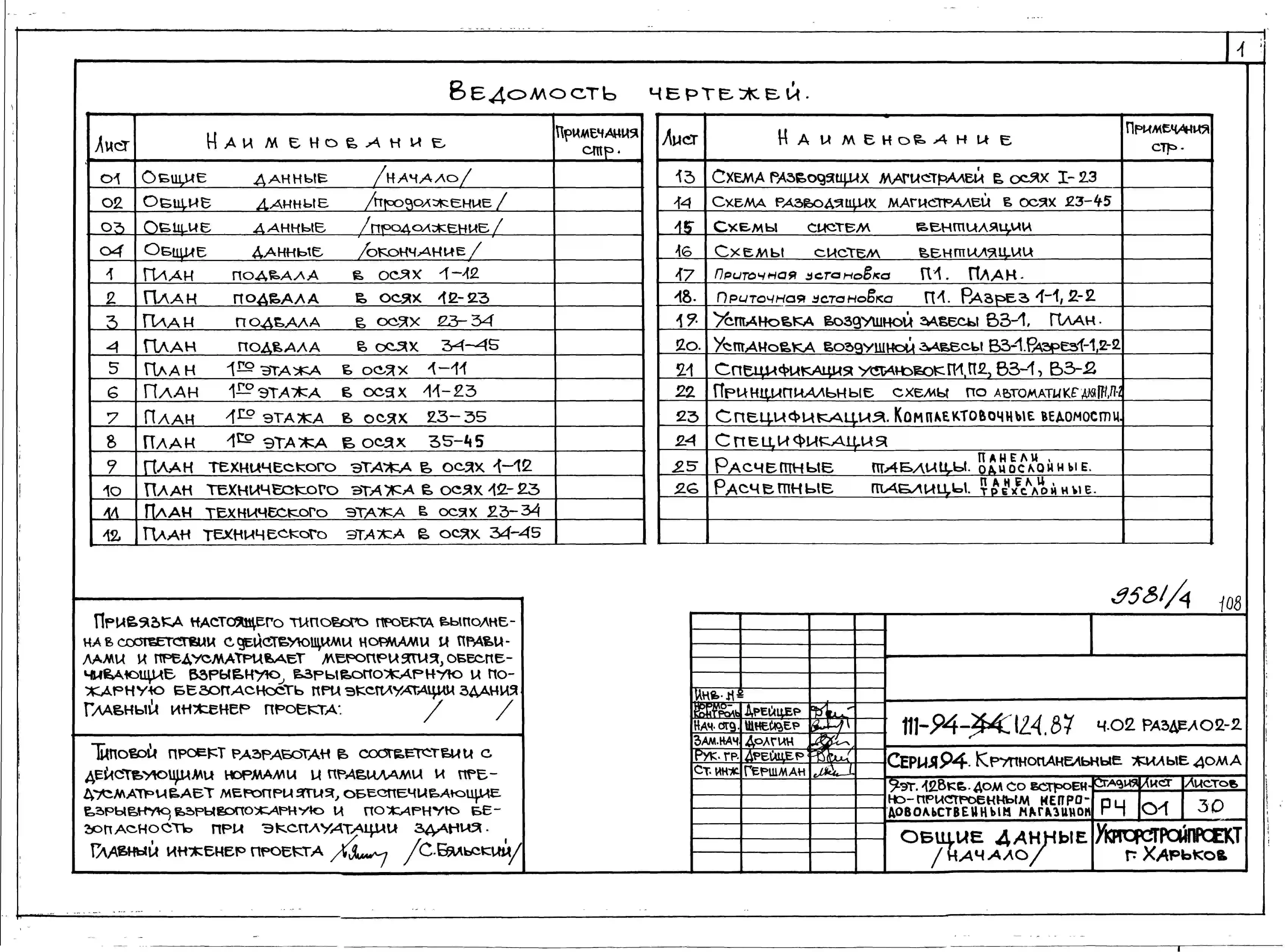 Типовой проект 111-94-124.87 Дом 9-этажный 4-секционный 128-квартирный со встроенно-пристроенным магазином