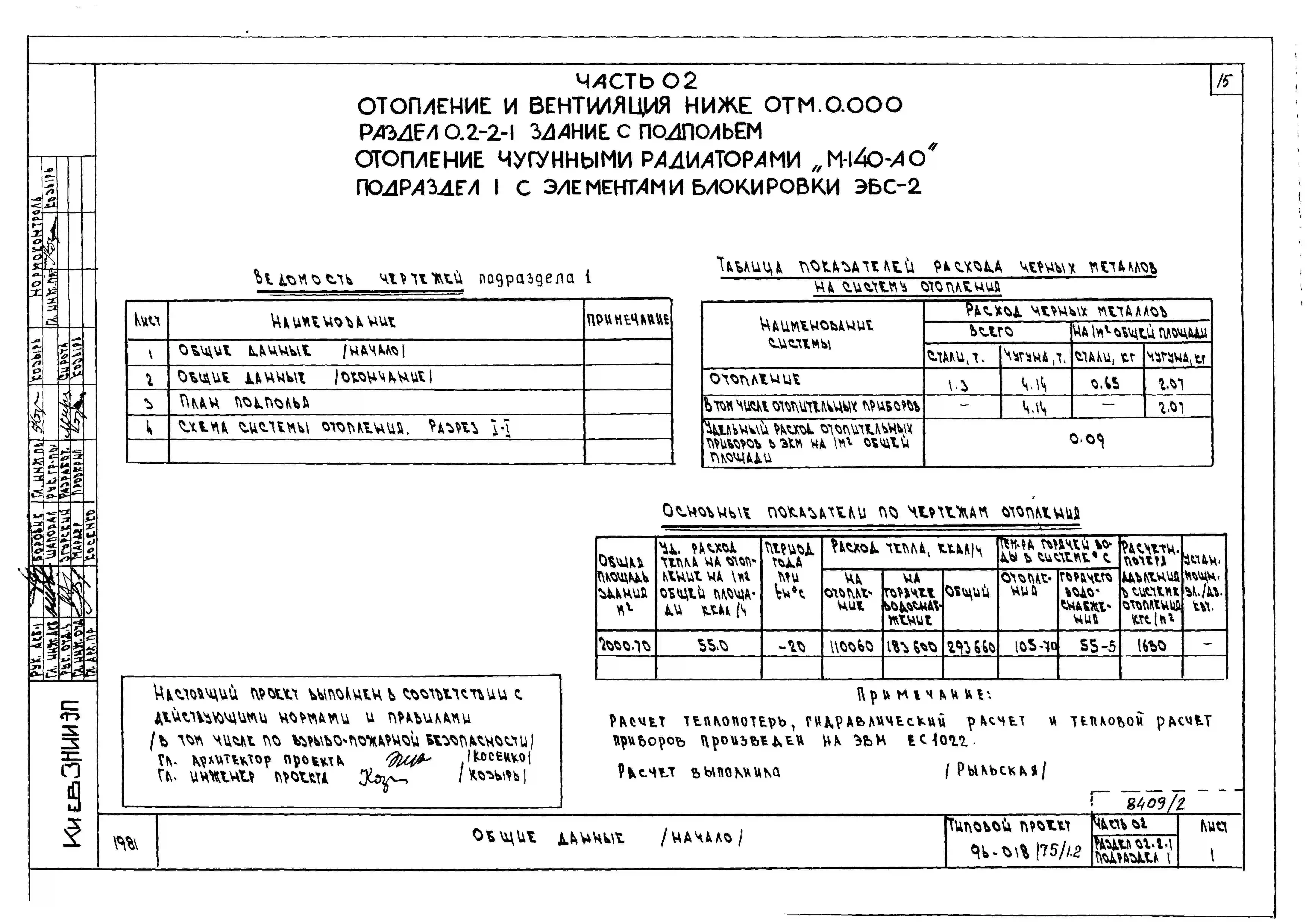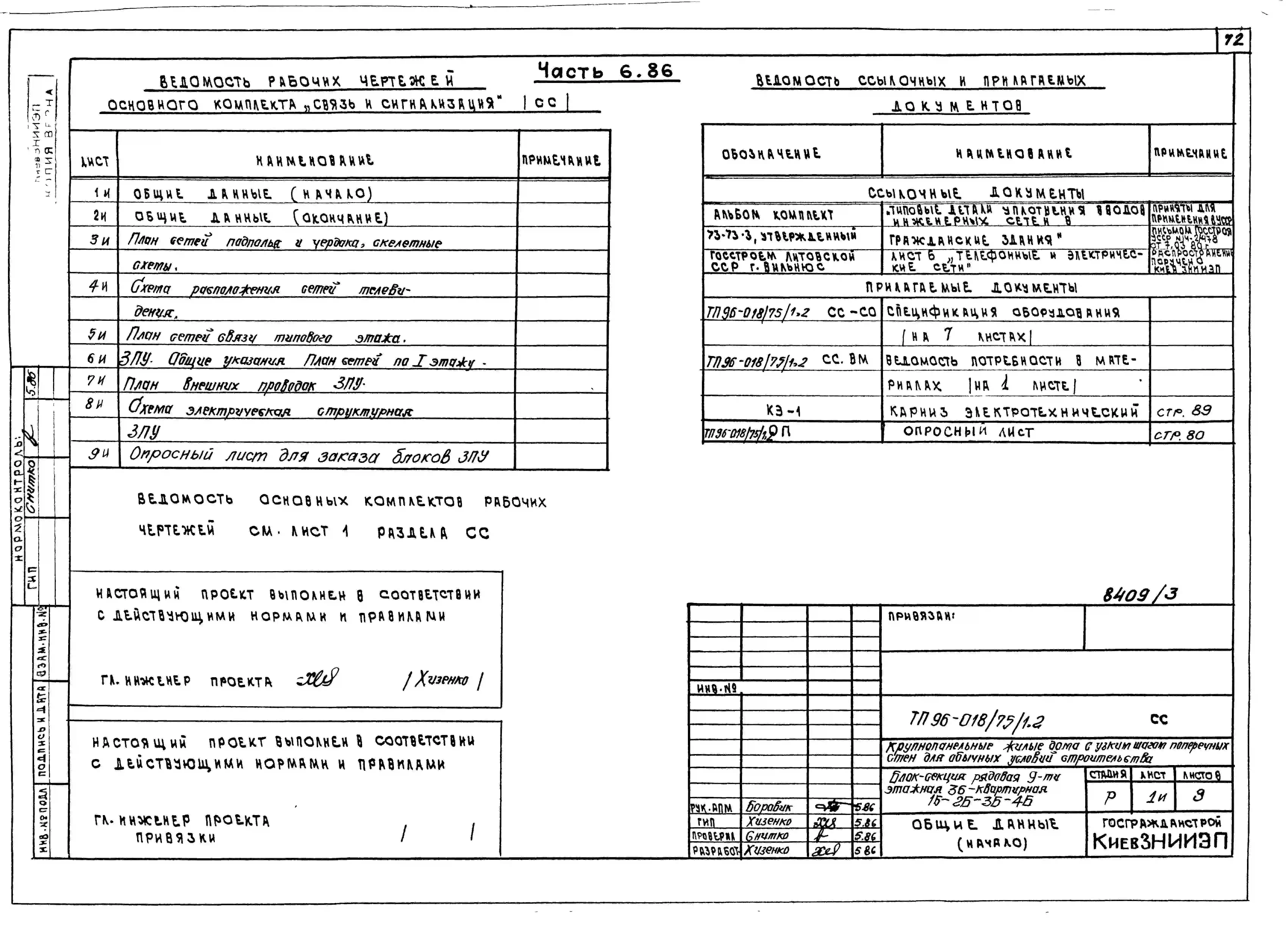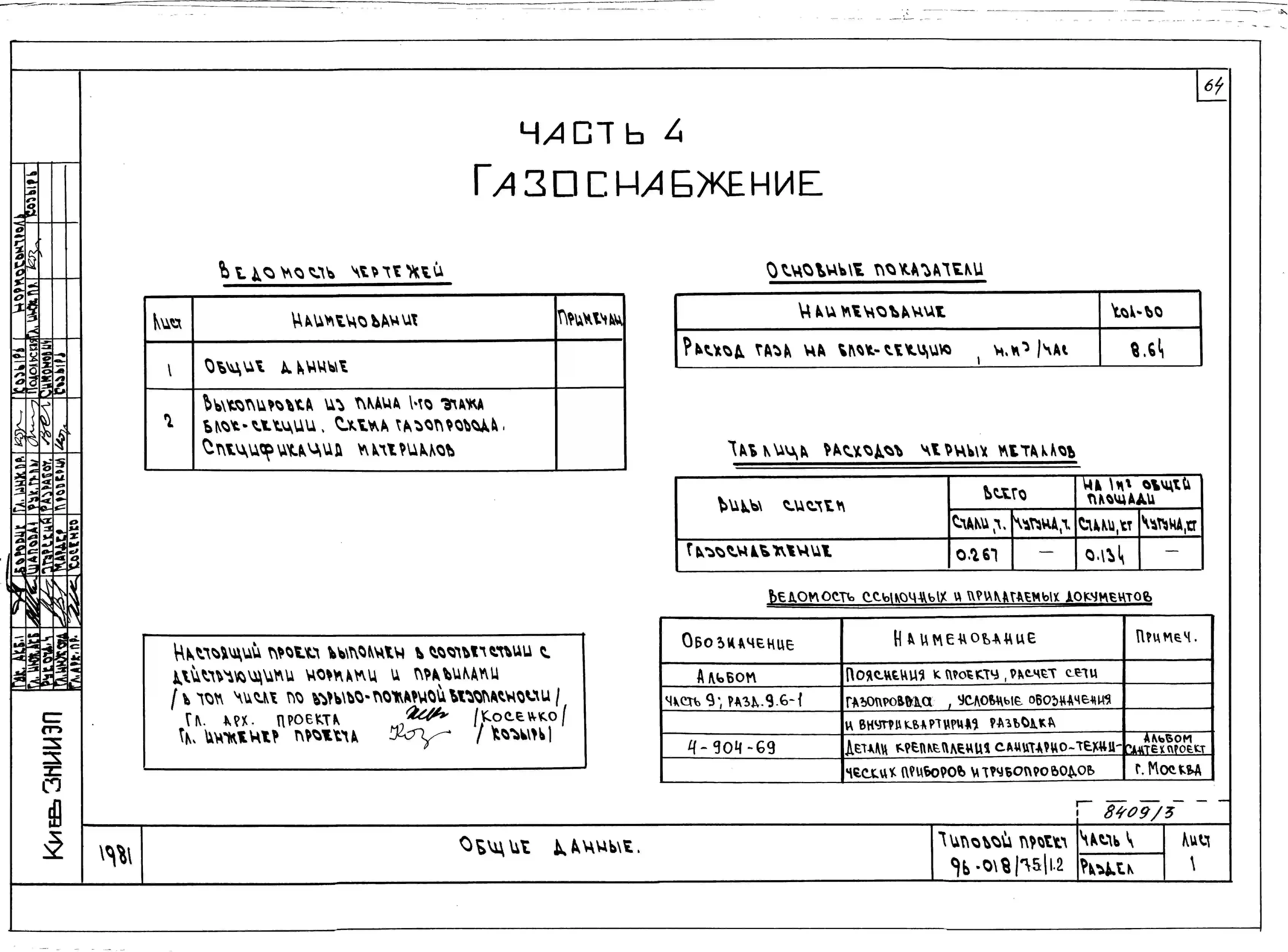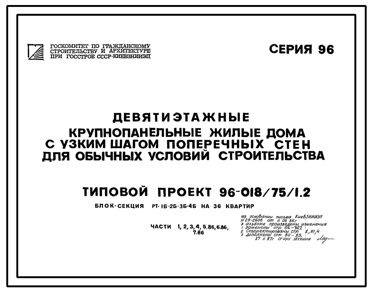 Типовой проект 96-018/75/1.2 Блок-секция рядовая 9-этажная 36-квартирная 1Б-2Б-3Б-4Б