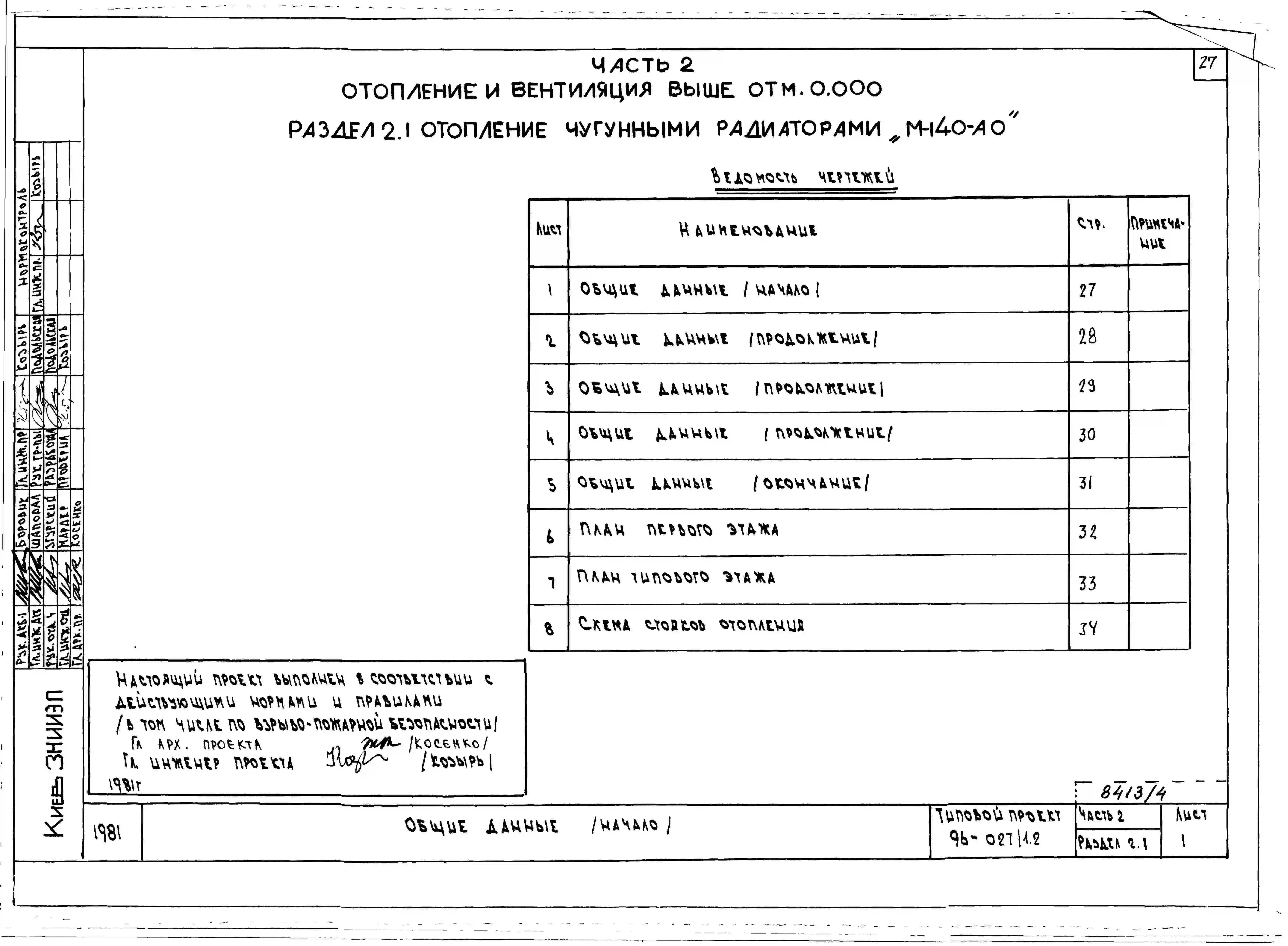 Типовой проект 96-027/1.2 Блок-секция рядовая-торцевая 9-этажная 36-квартирная РТ 2Б-2Б-3Б-3Б