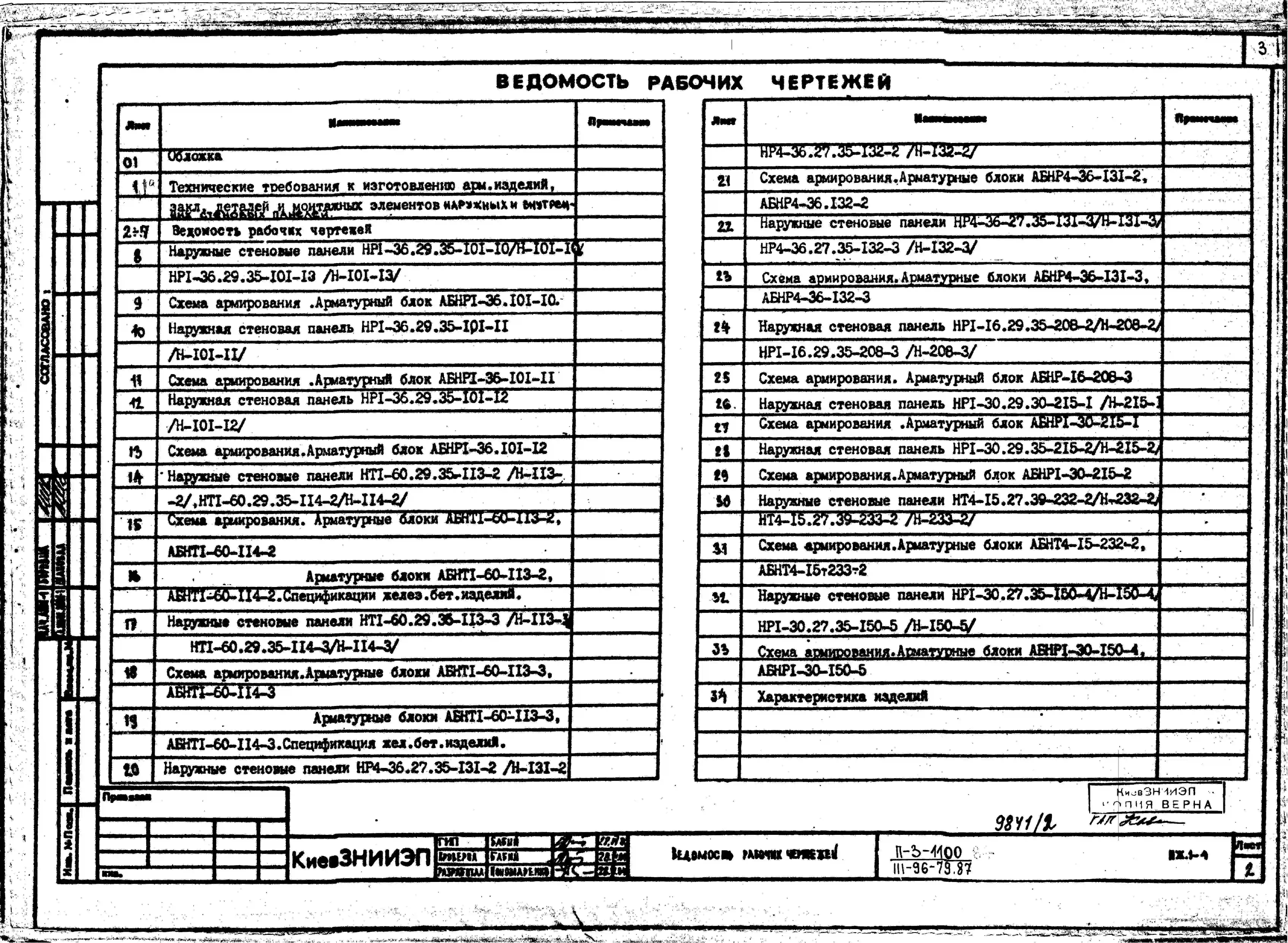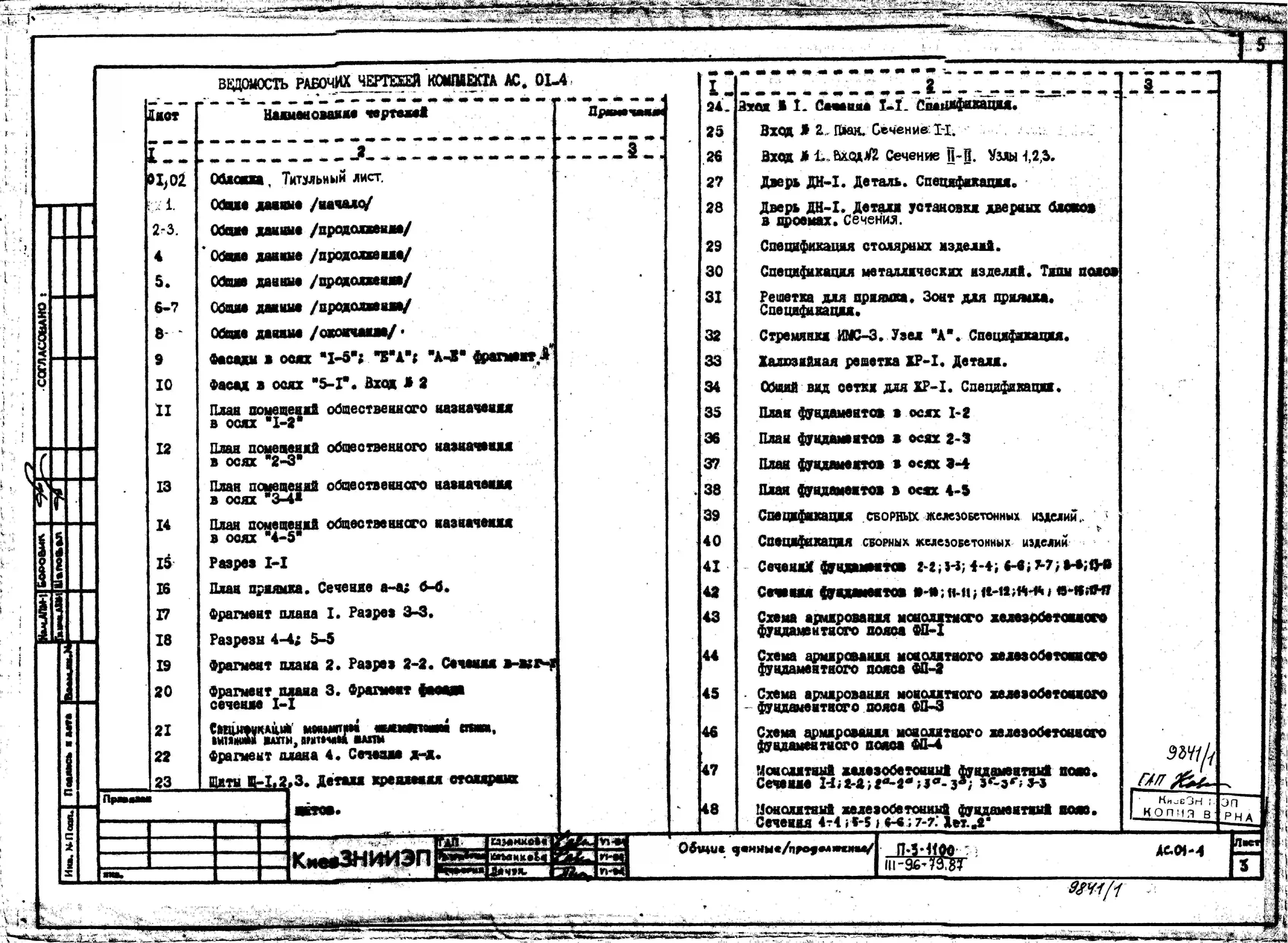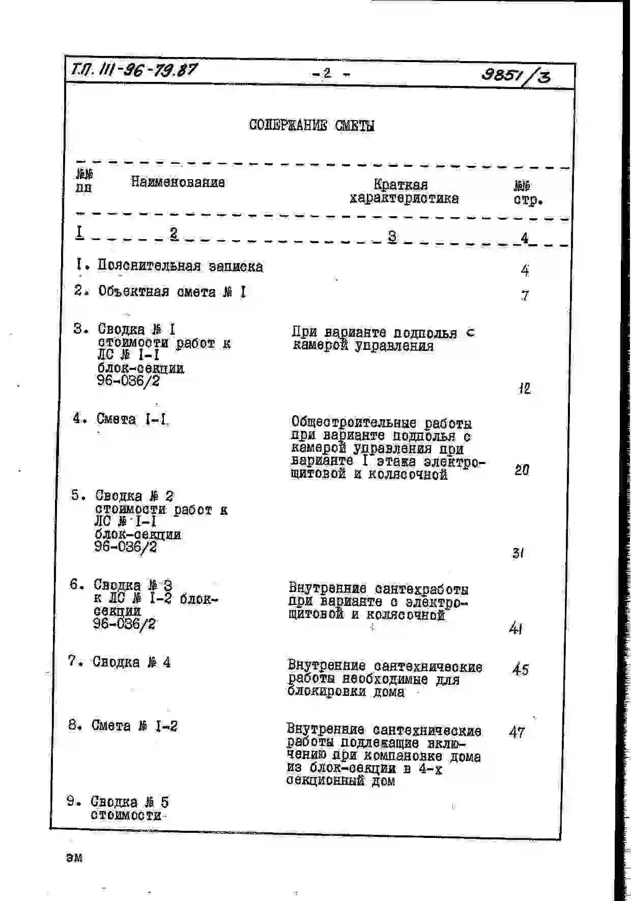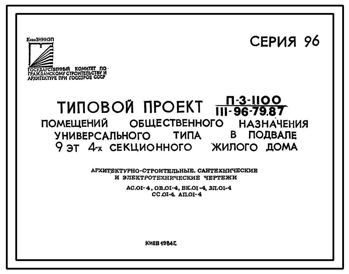Типовой проект 111-96-79.87 9-этажный 4 секционный крупнопанельный жилой дом на 143 квартиры. Паспорт проекта (формат PDF) Чертежи (формат TIF)