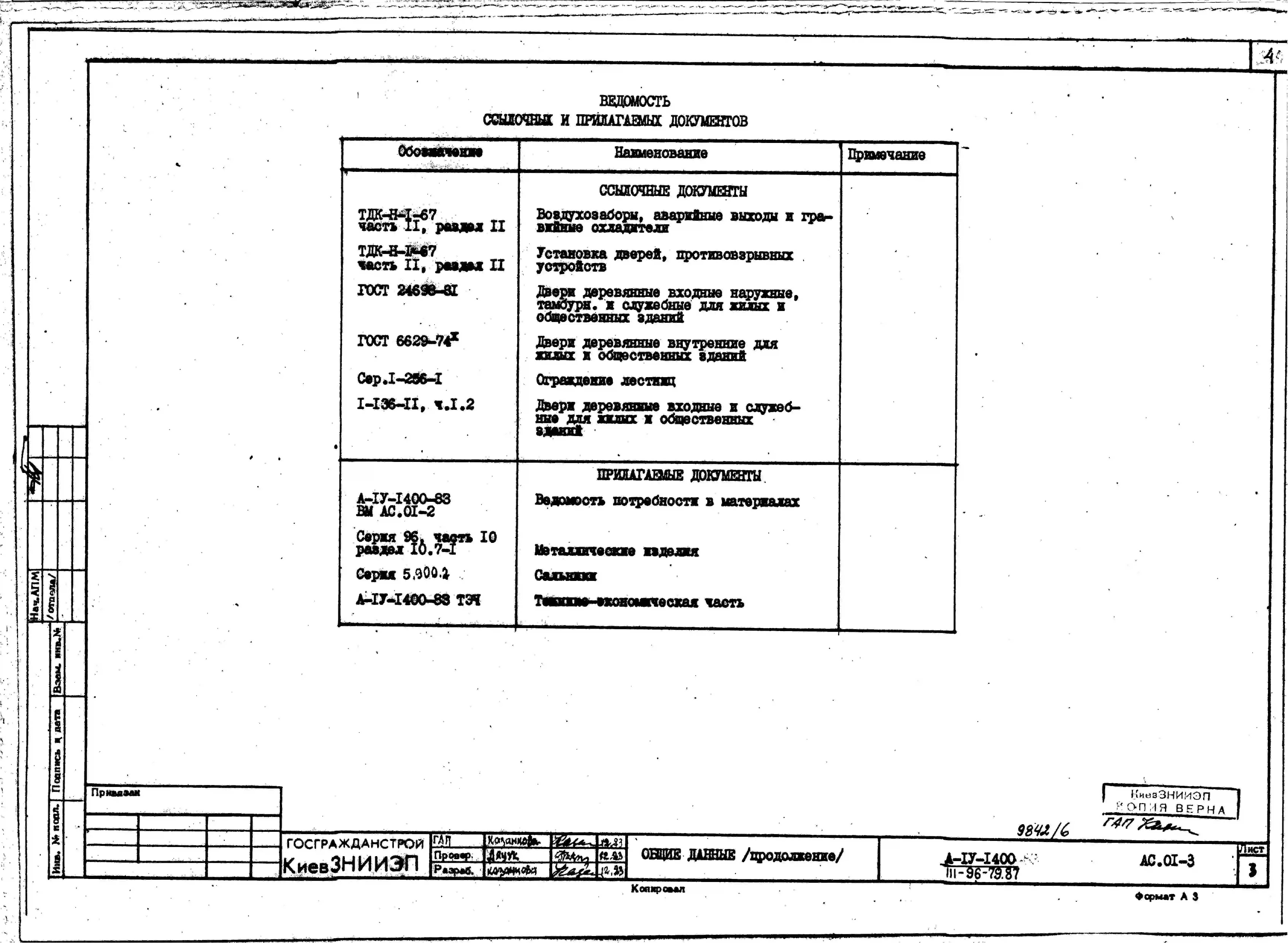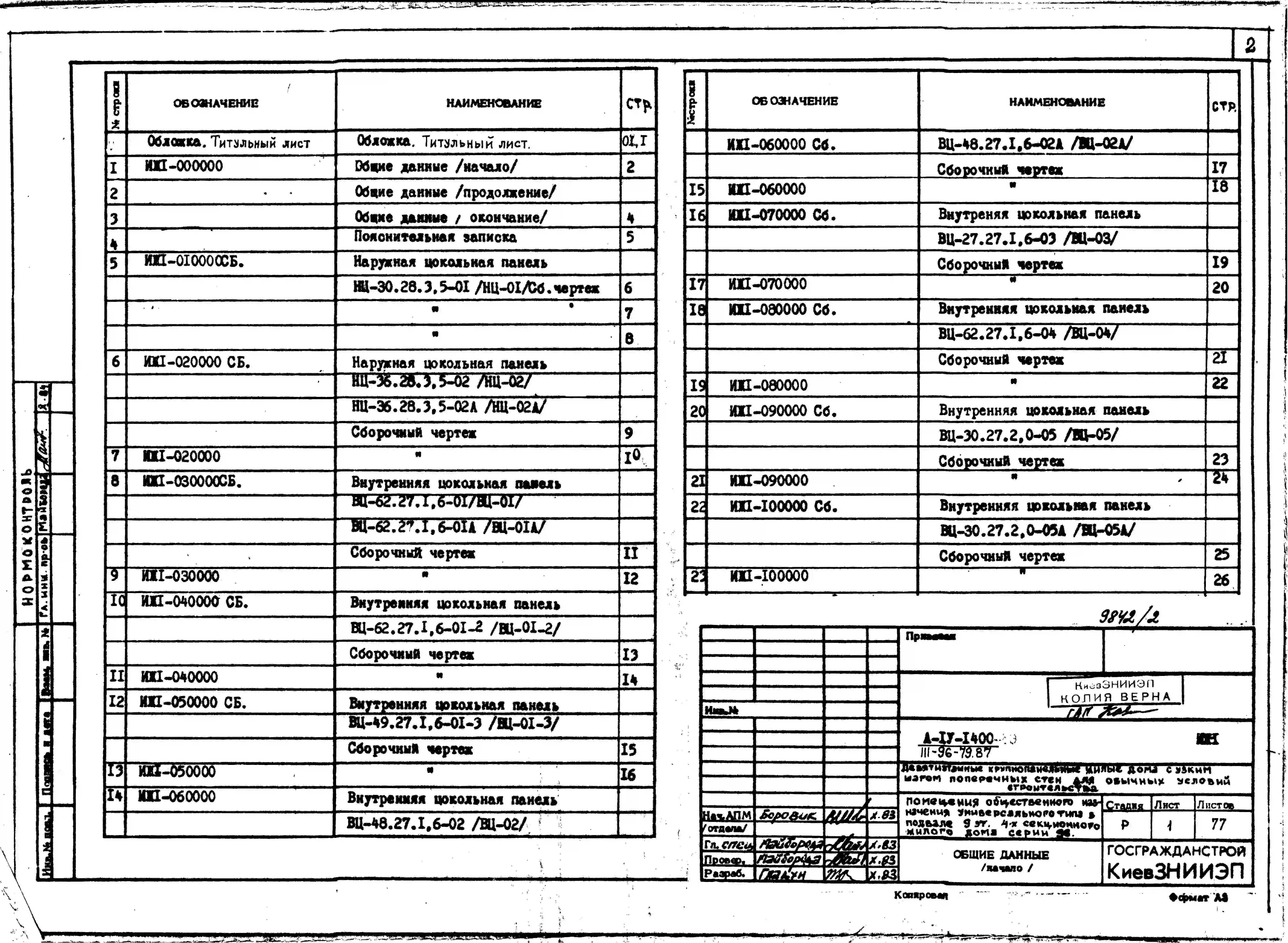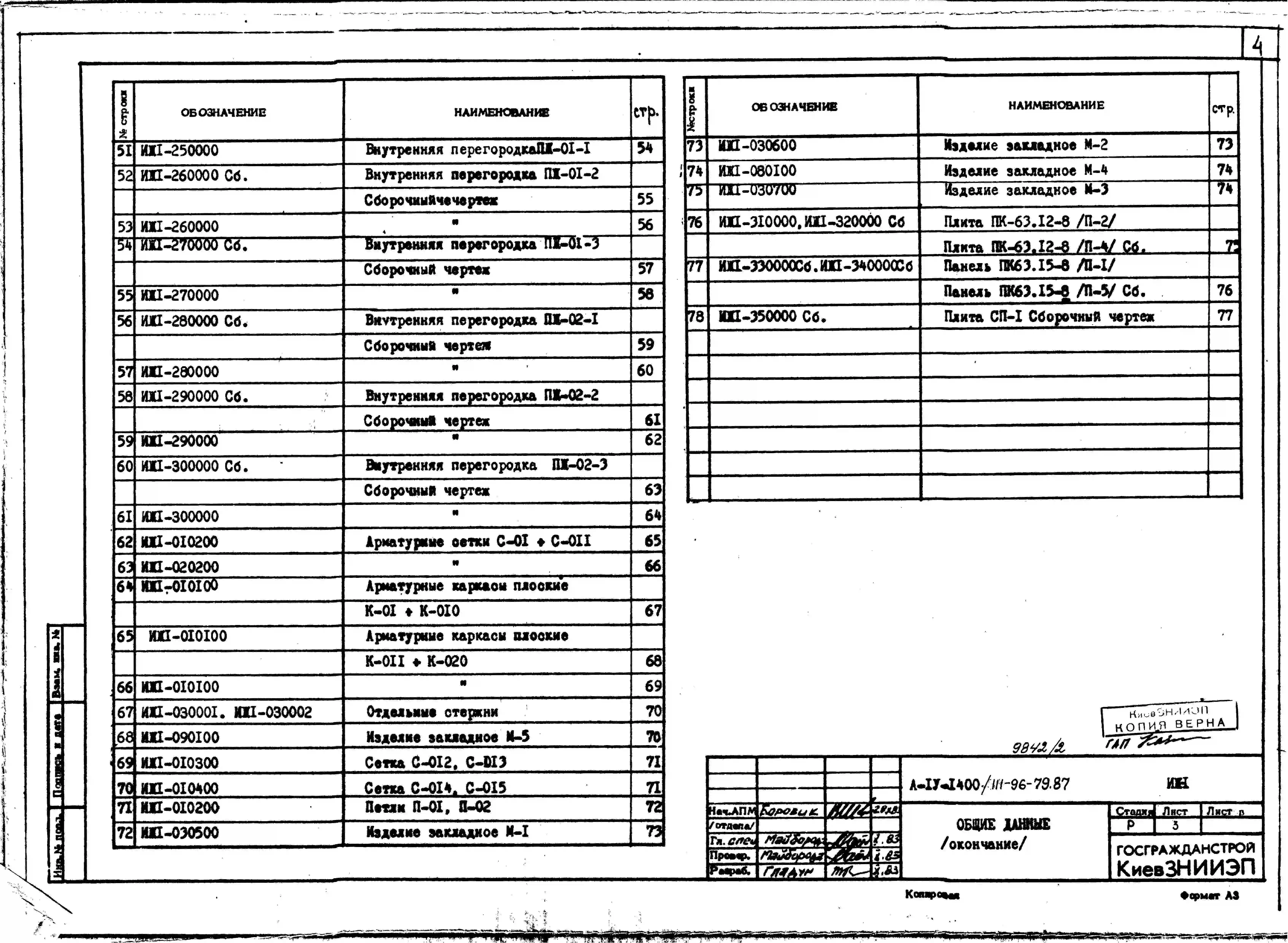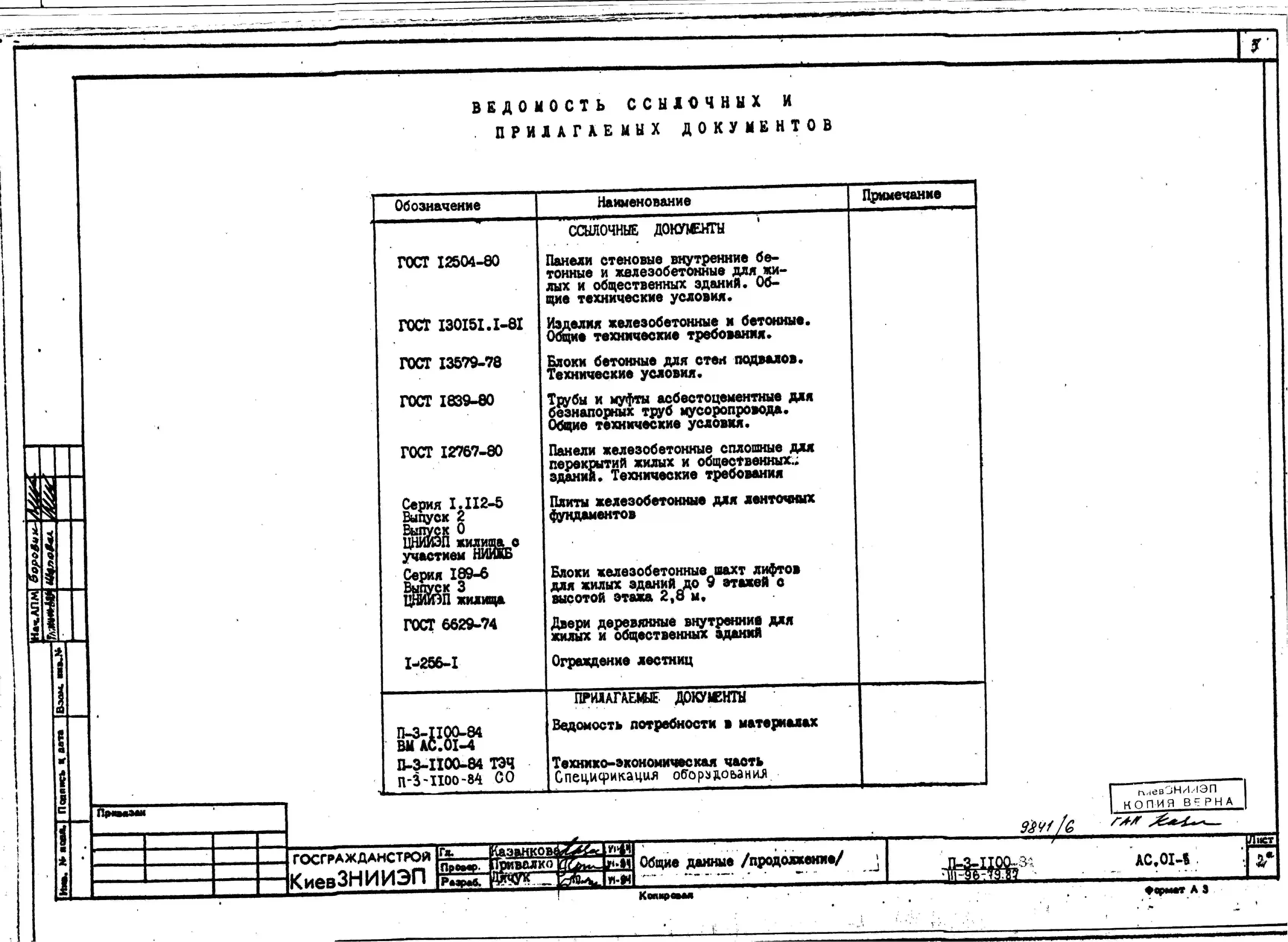 Типовой проект 111-96-79.87 9-этажный 4 секционный крупнопанельный жилой дом на 143 квартиры. Паспорт проекта (формат PDF) Чертежи (формат TIF)