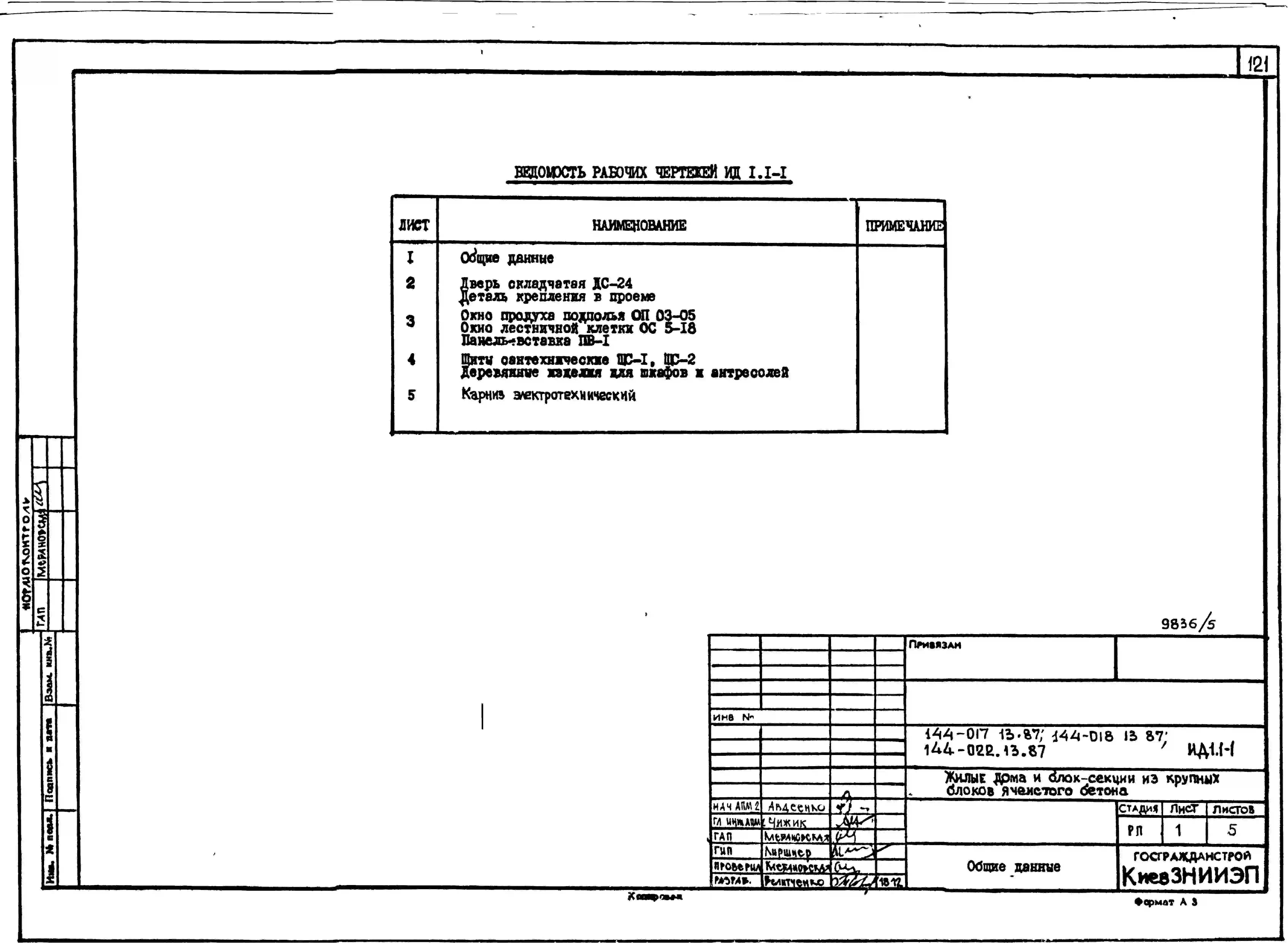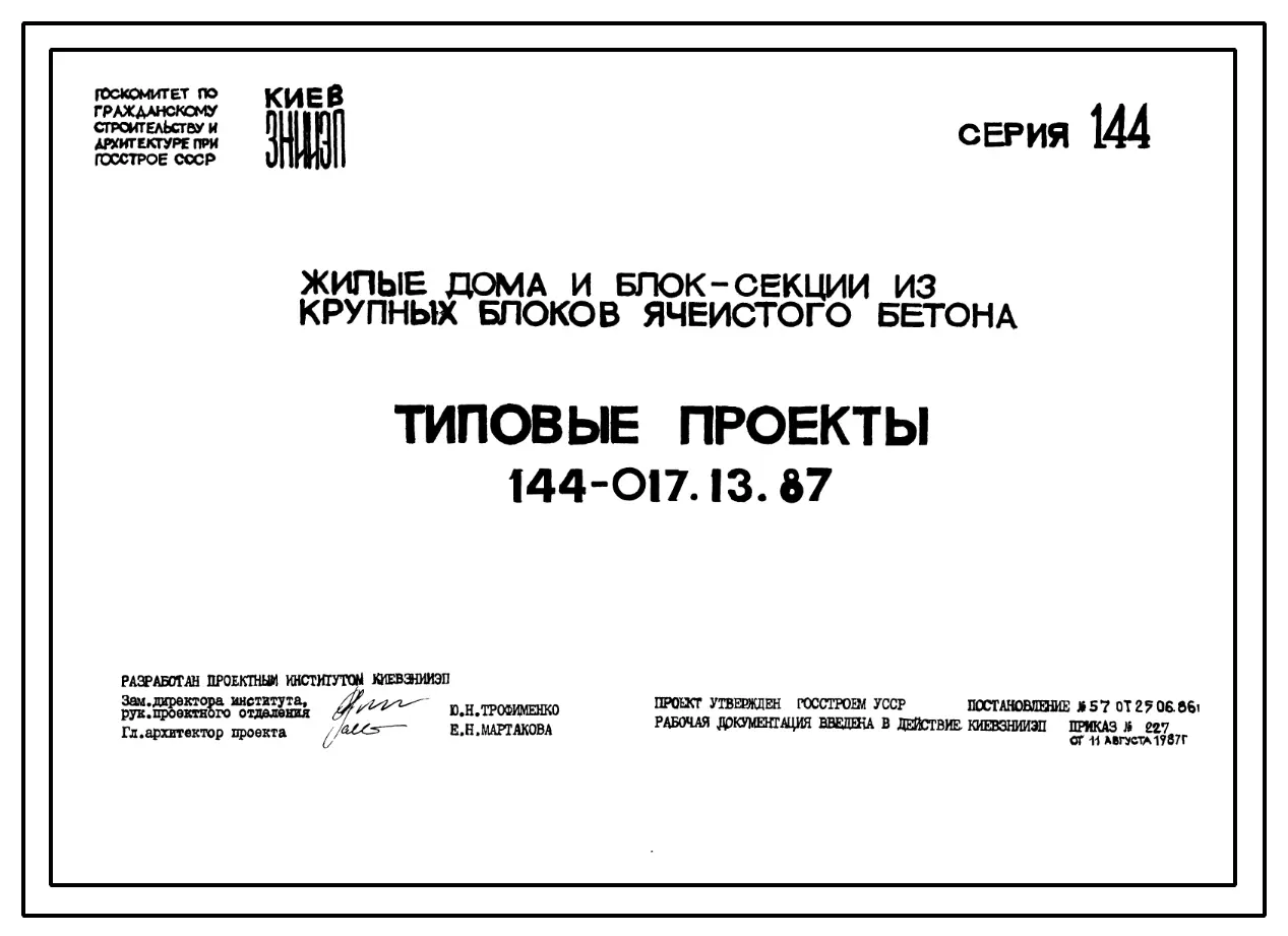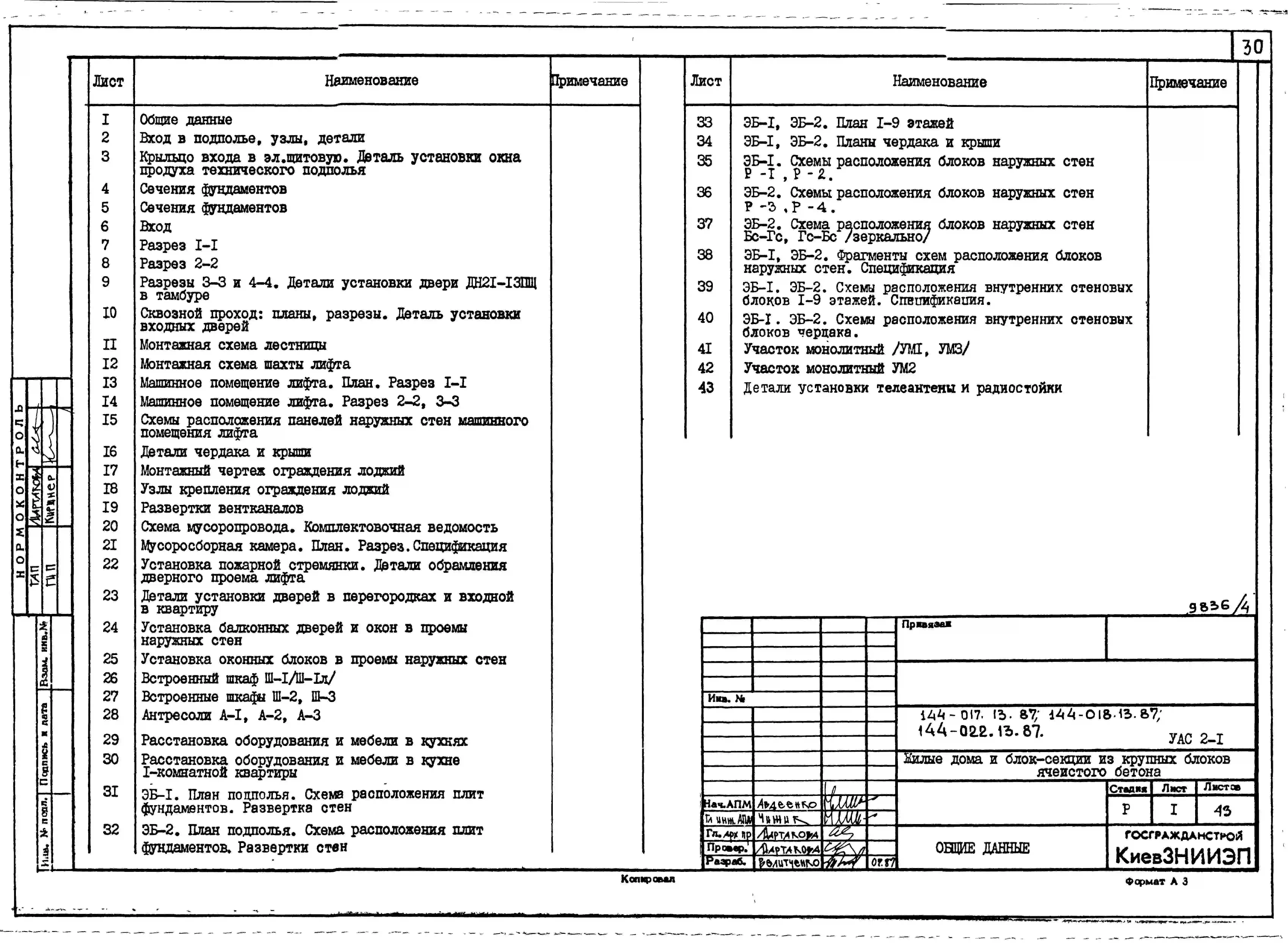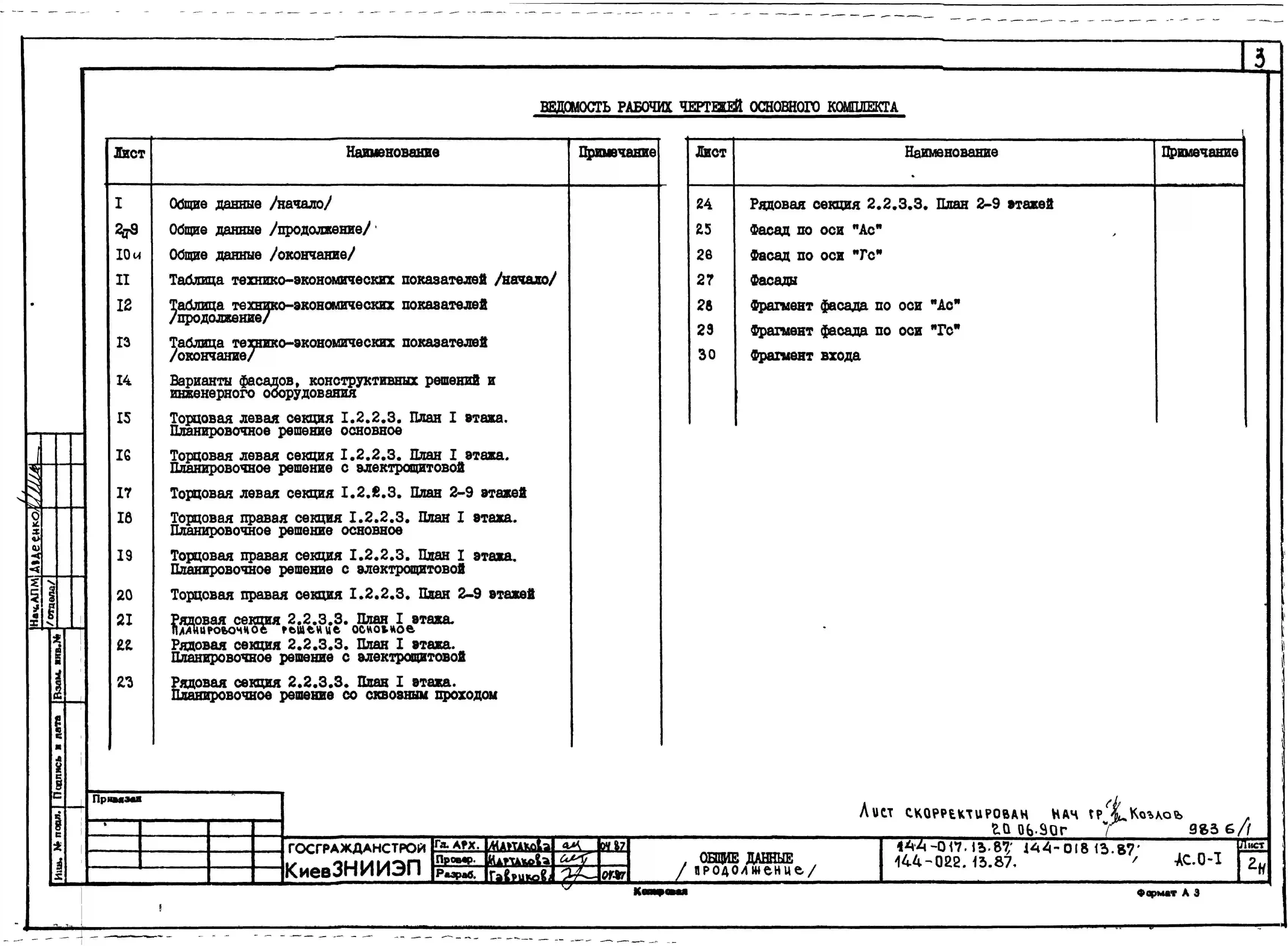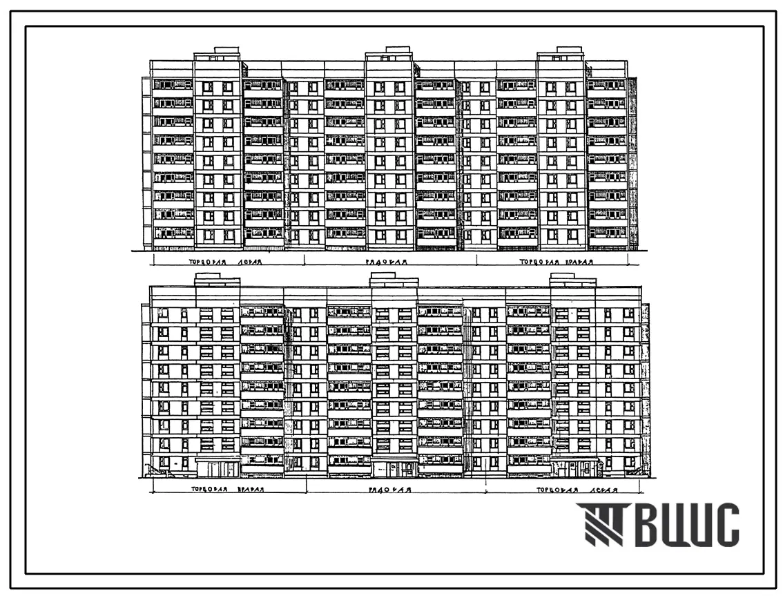 Типовой проект 144-017.13.87 Блок-секция 9-этажная 36-квартирная торцовая левая 1-2-2-3 /для строительства в УССР/