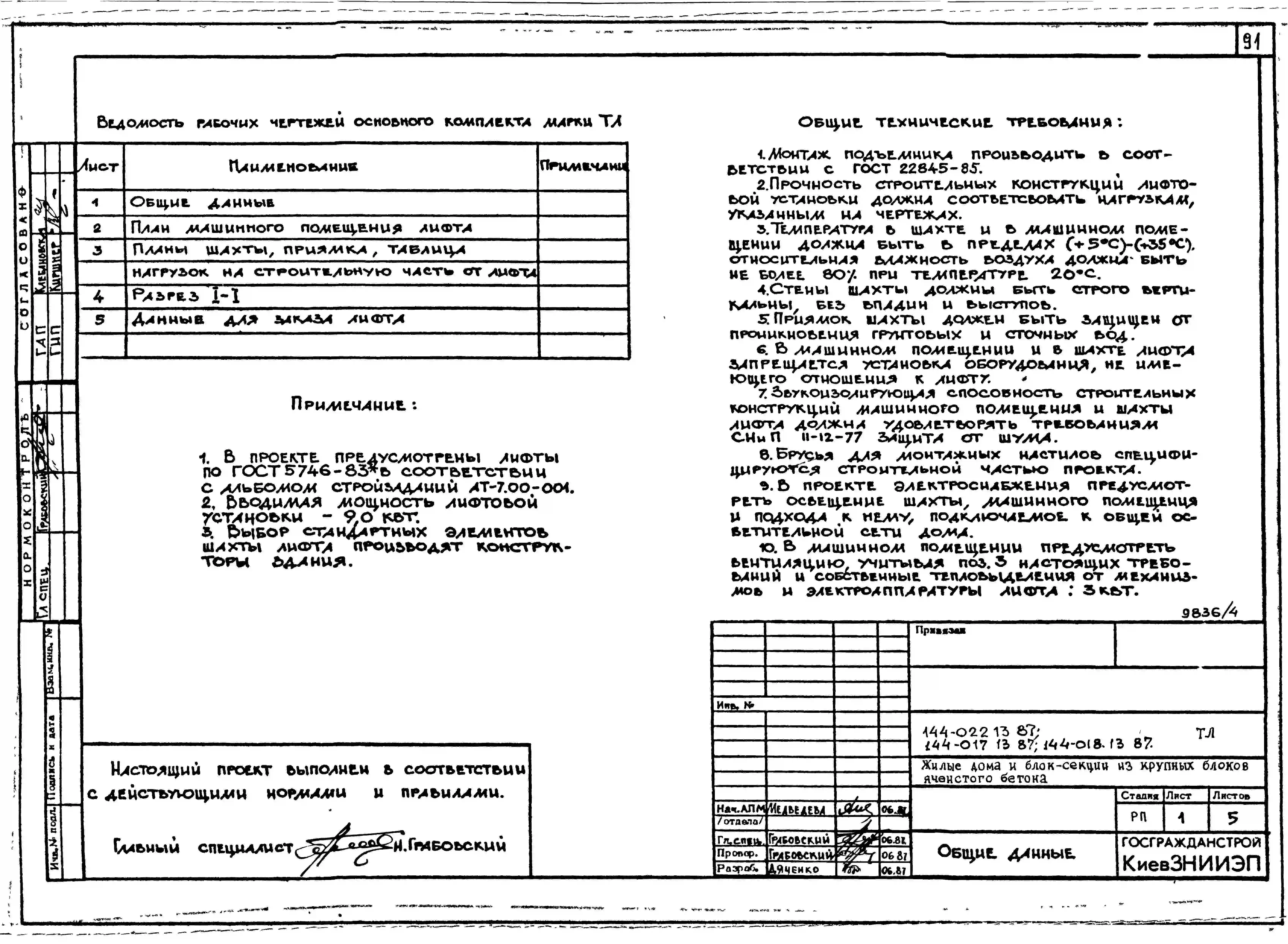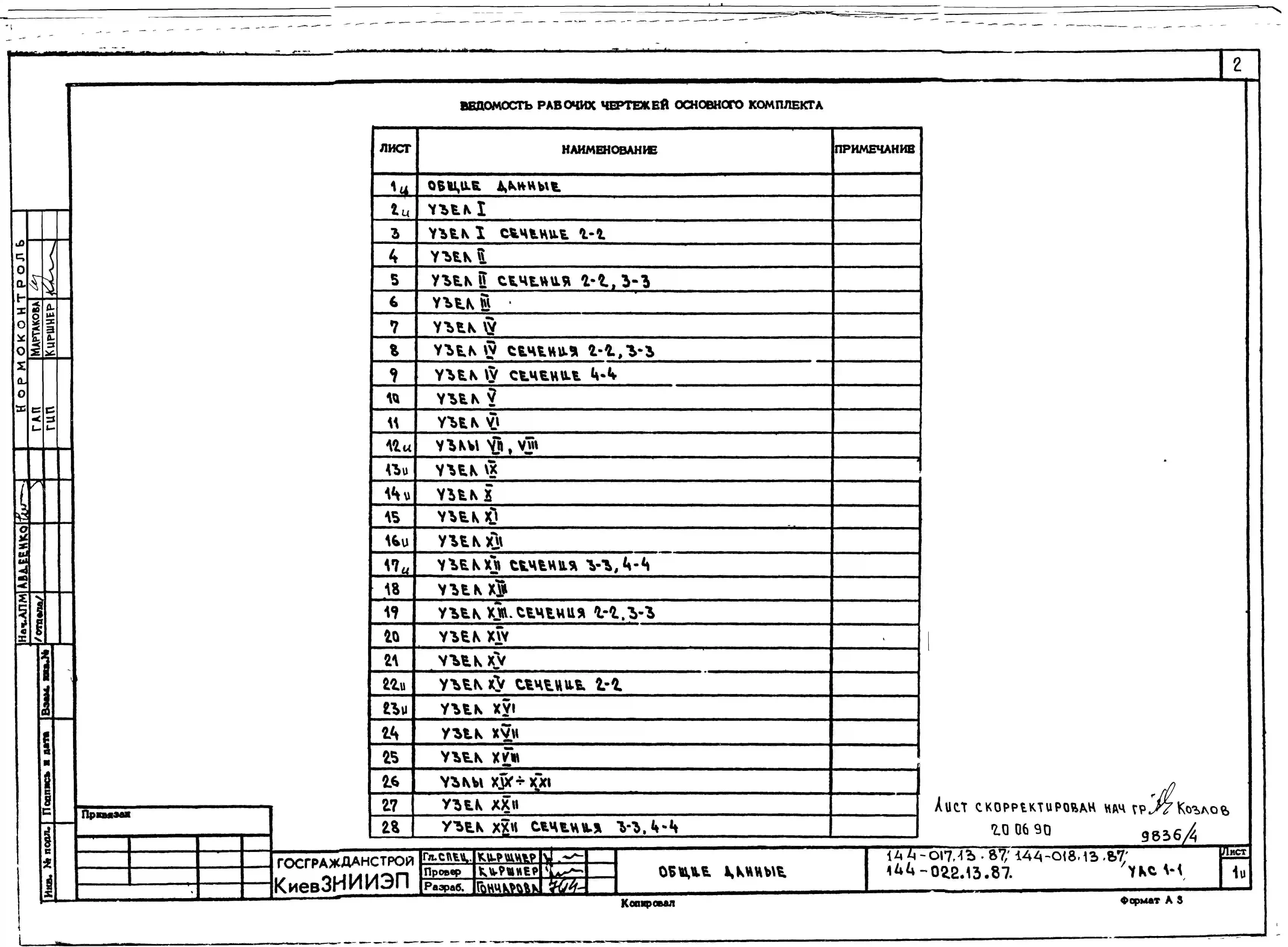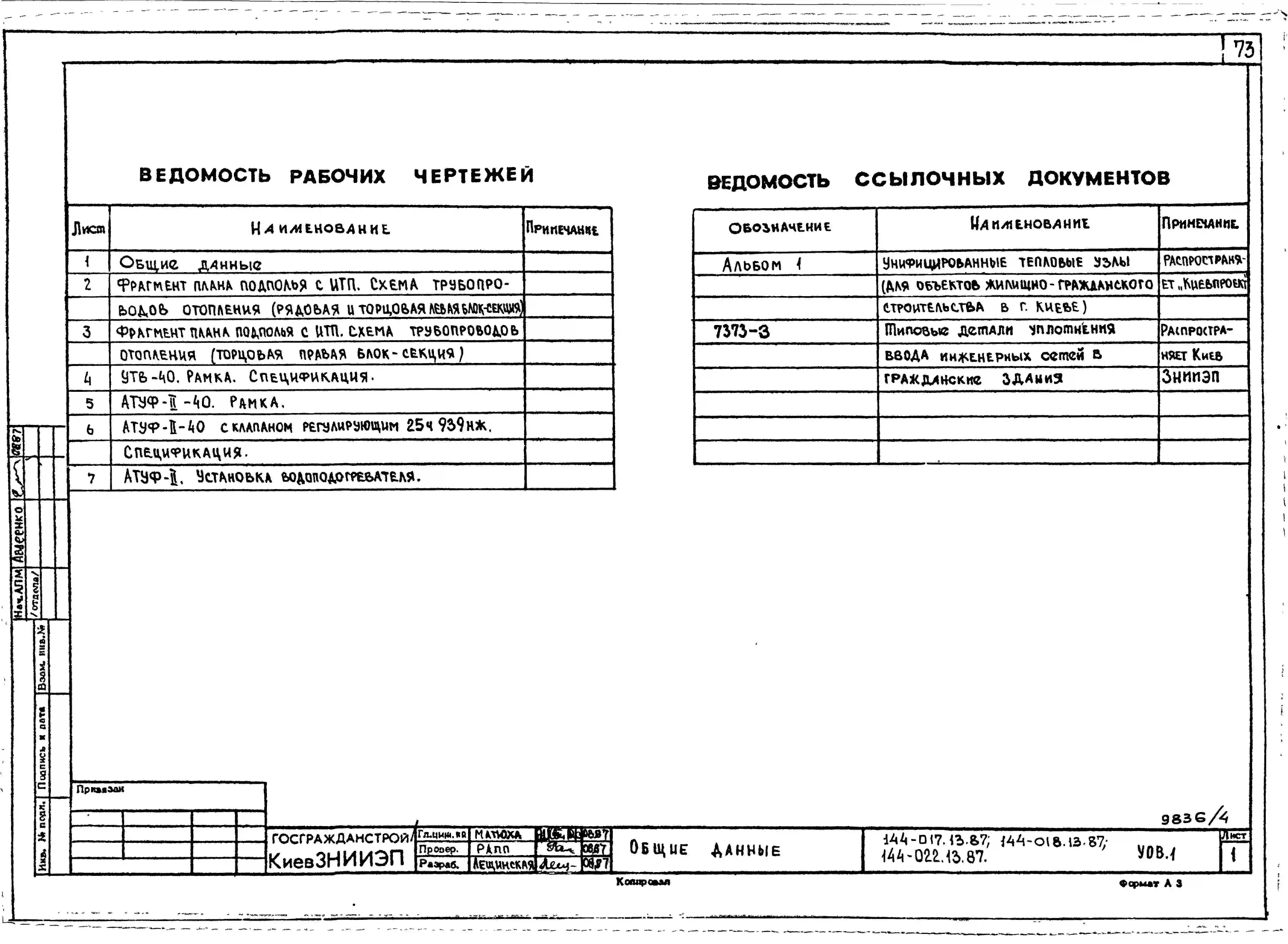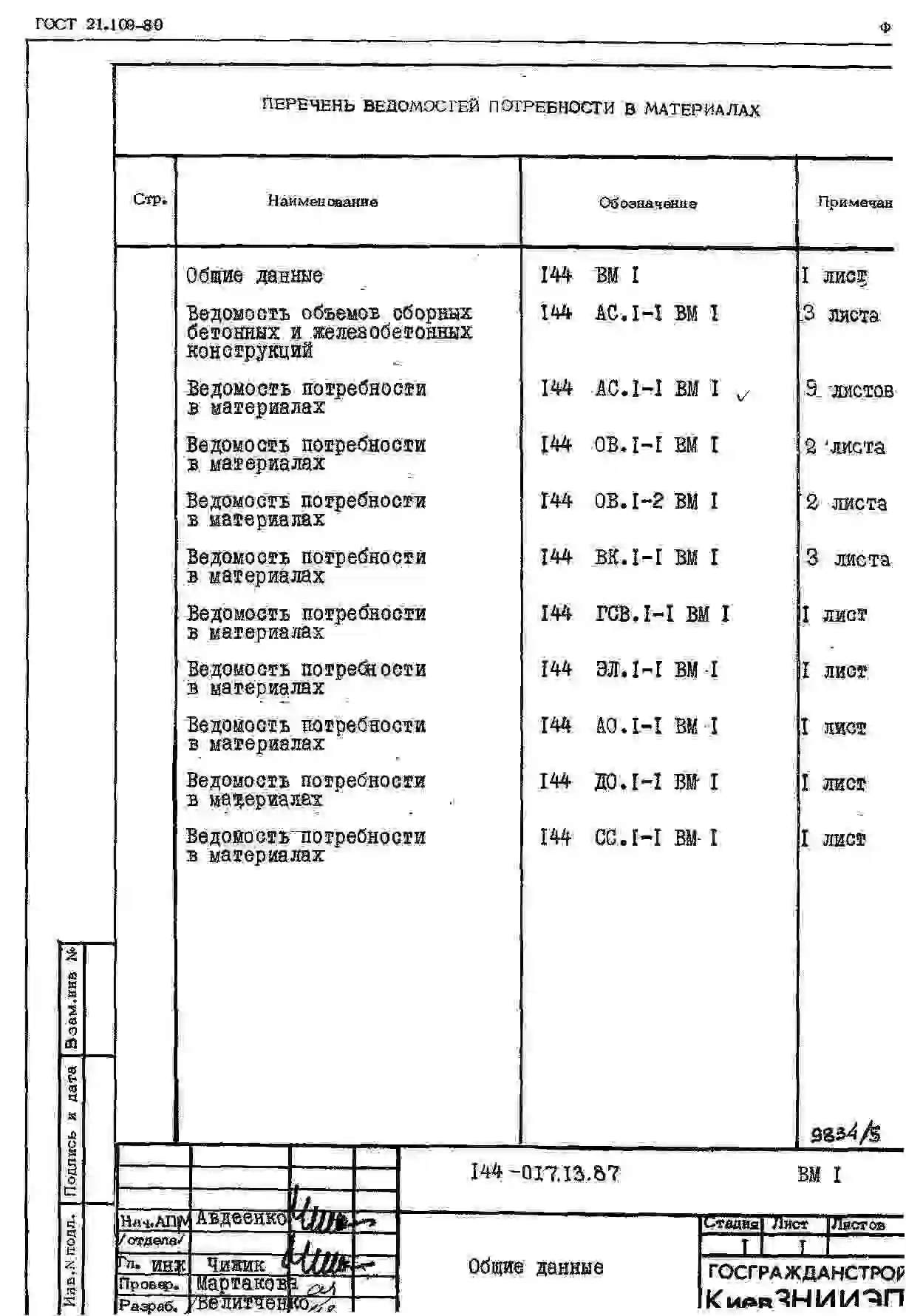 Типовой проект 144-017.13.87 Блок-секция 9-этажная 36-квартирная торцовая левая 1-2-2-3 /для строительства в УССР/
