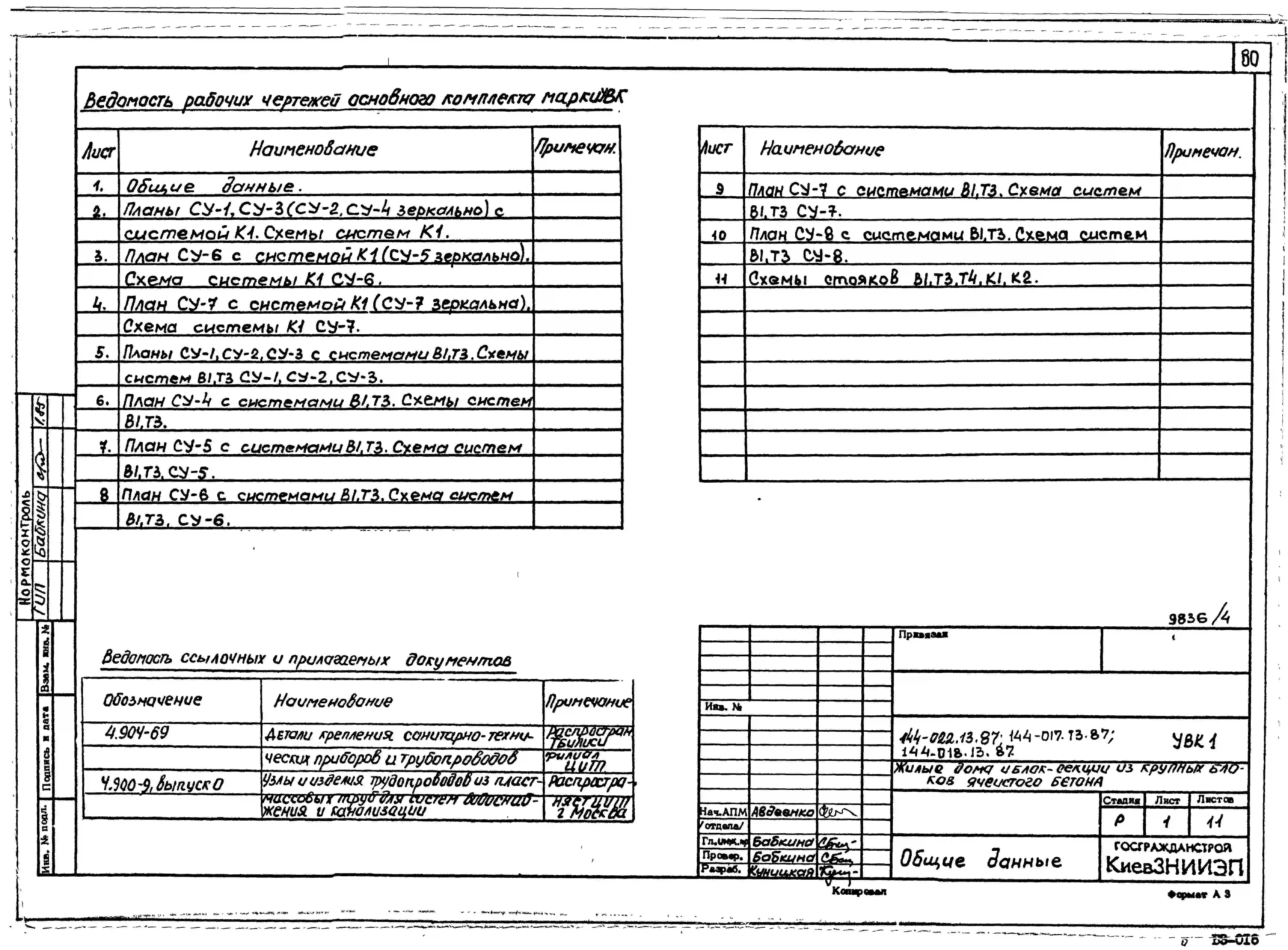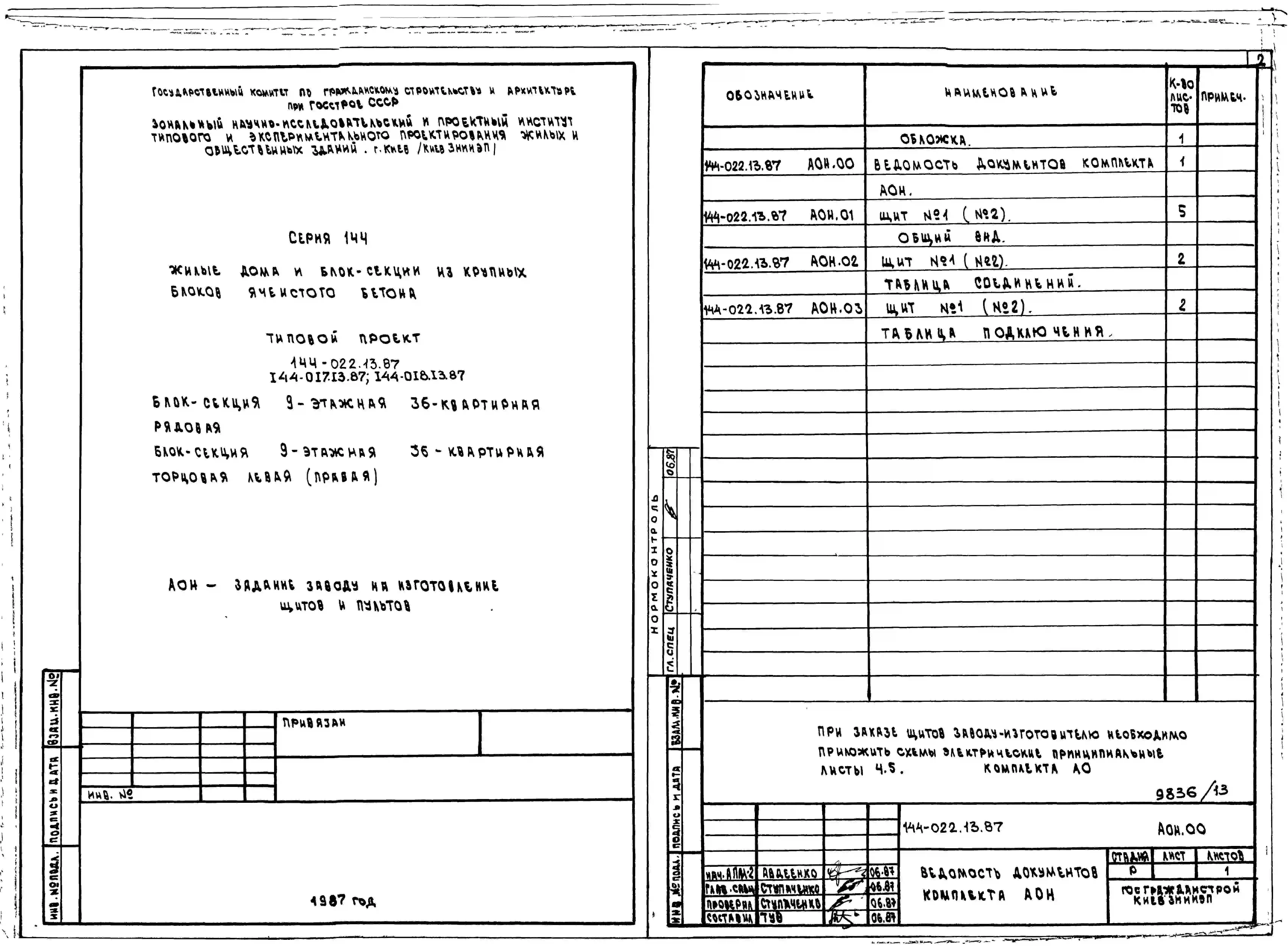Типовой проект 144-018.13.87 Блок-секция 9-этажная 36-квартирная торцовая правая 1-2-2-3 /для строительства в УССР/