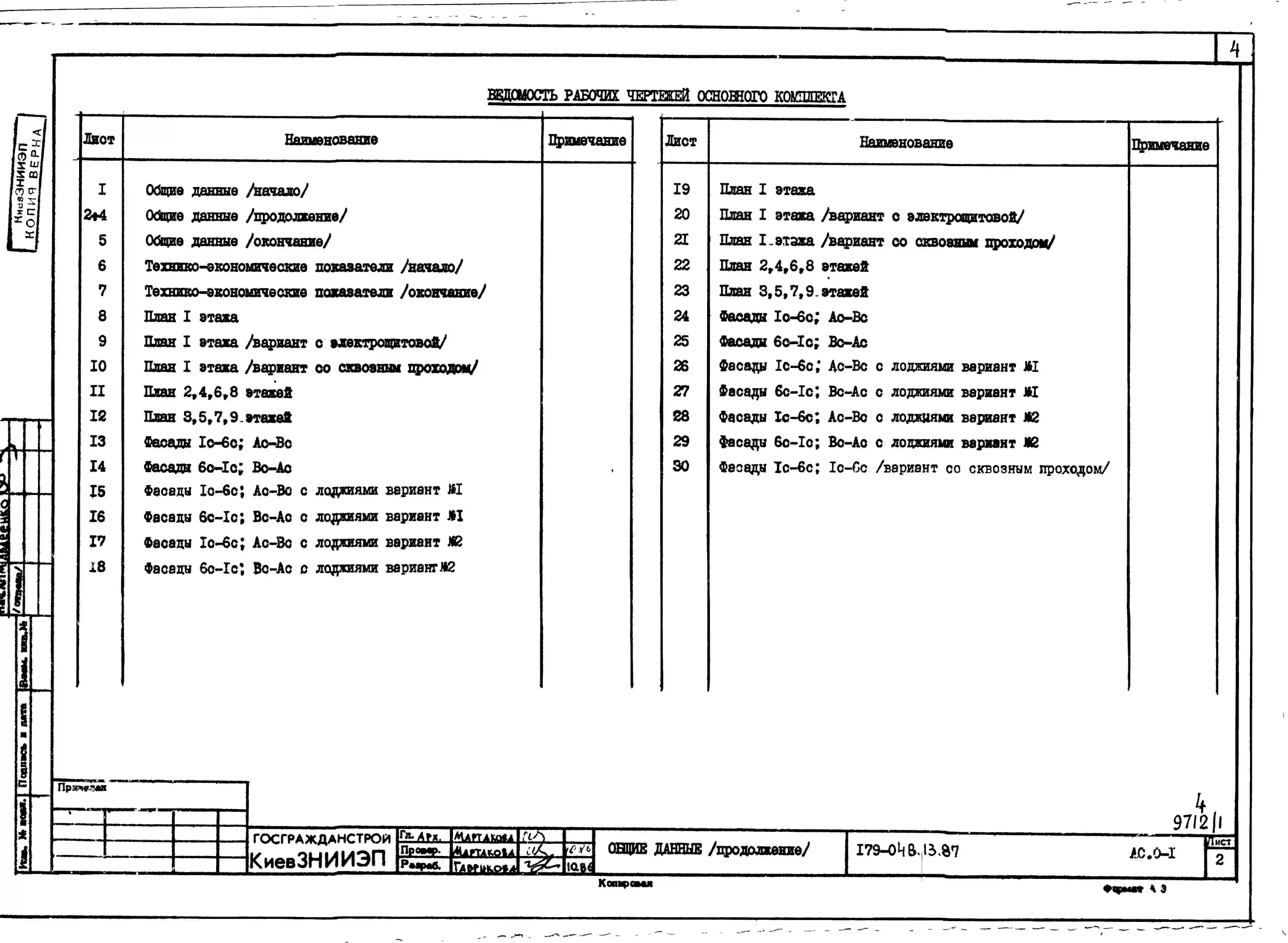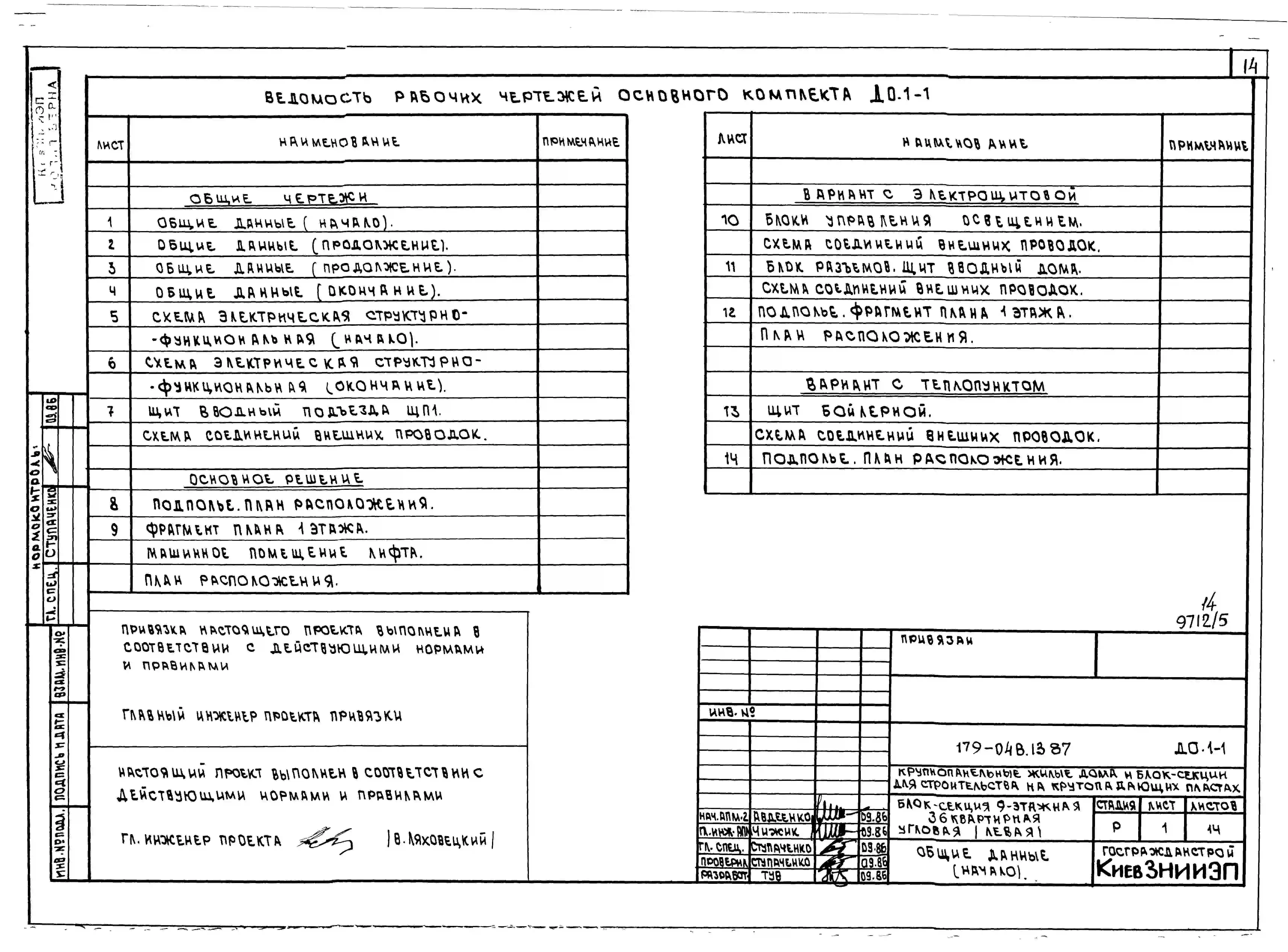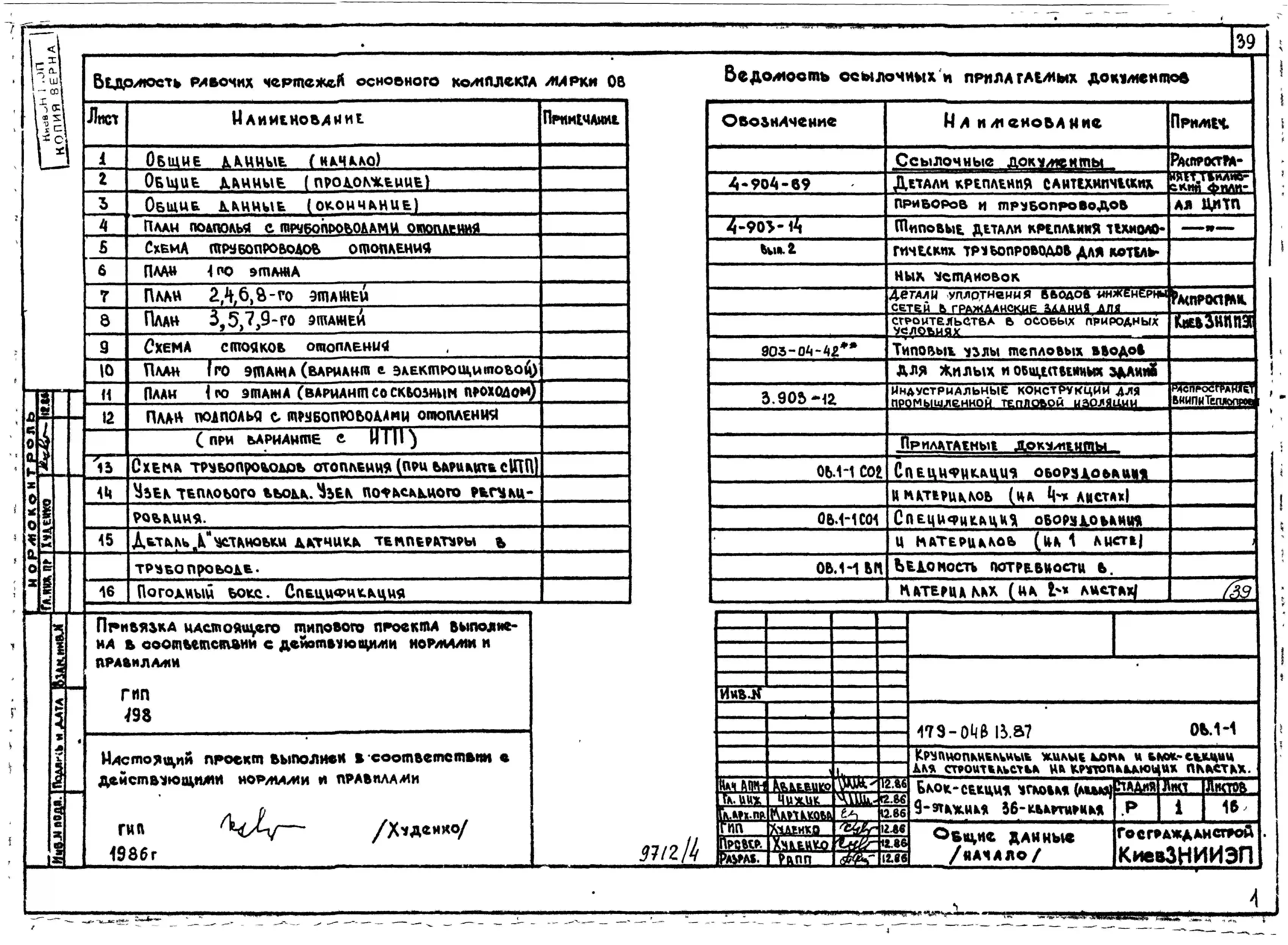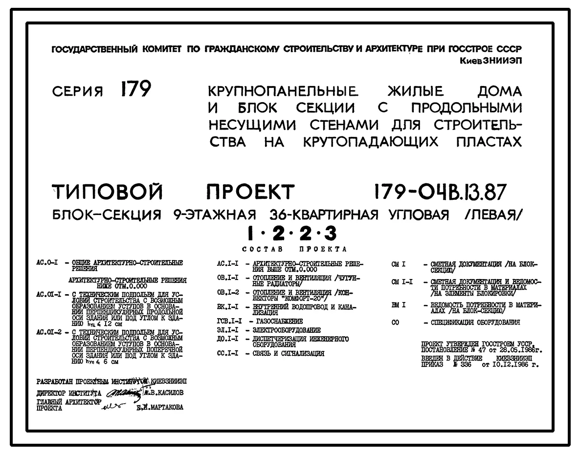 Типовой проект 179-04в.13.87 Блок-секция угловая /левая/ 9-этажная 36-квартирная для Пантелеймоновского ЖБИ