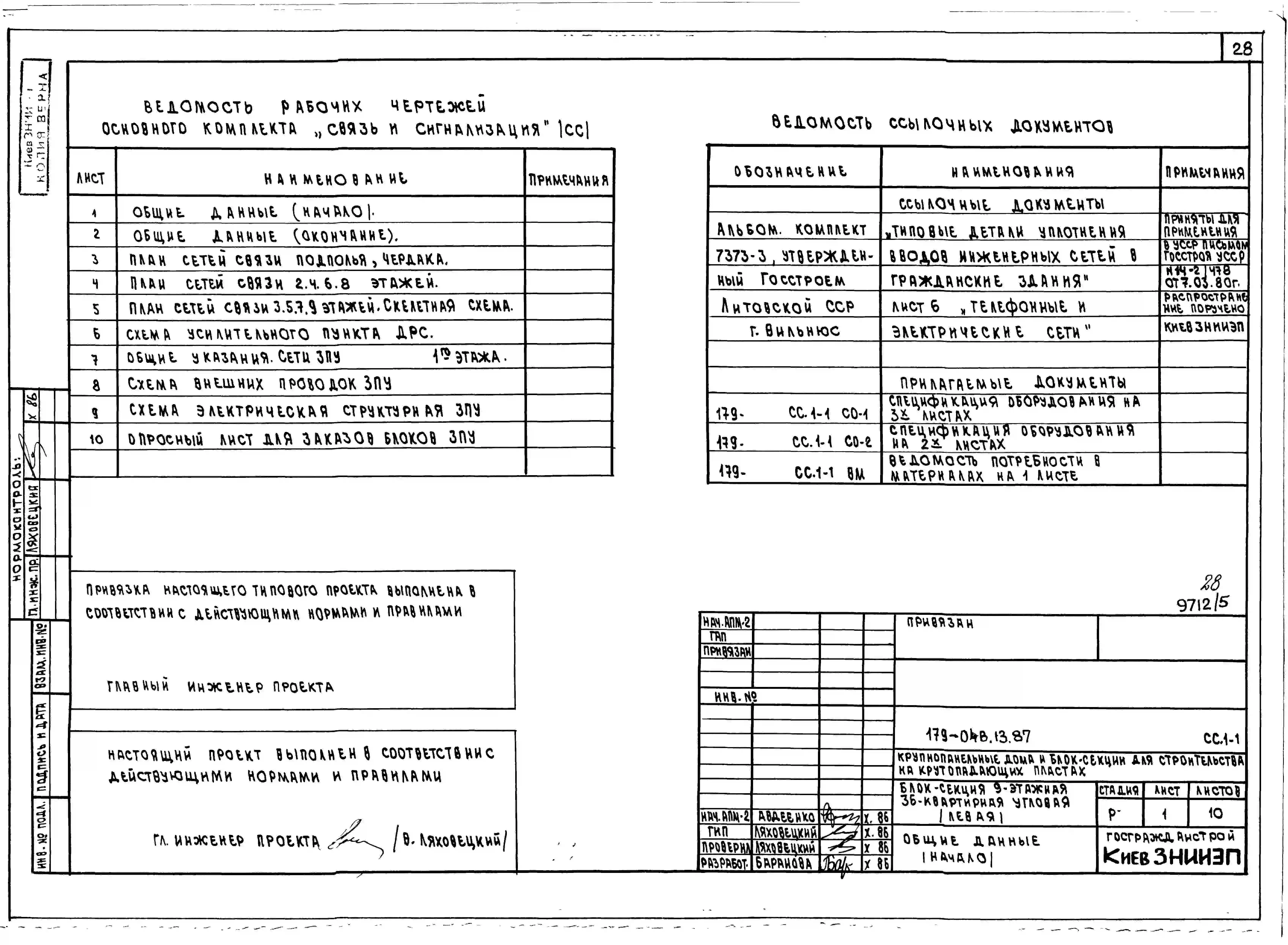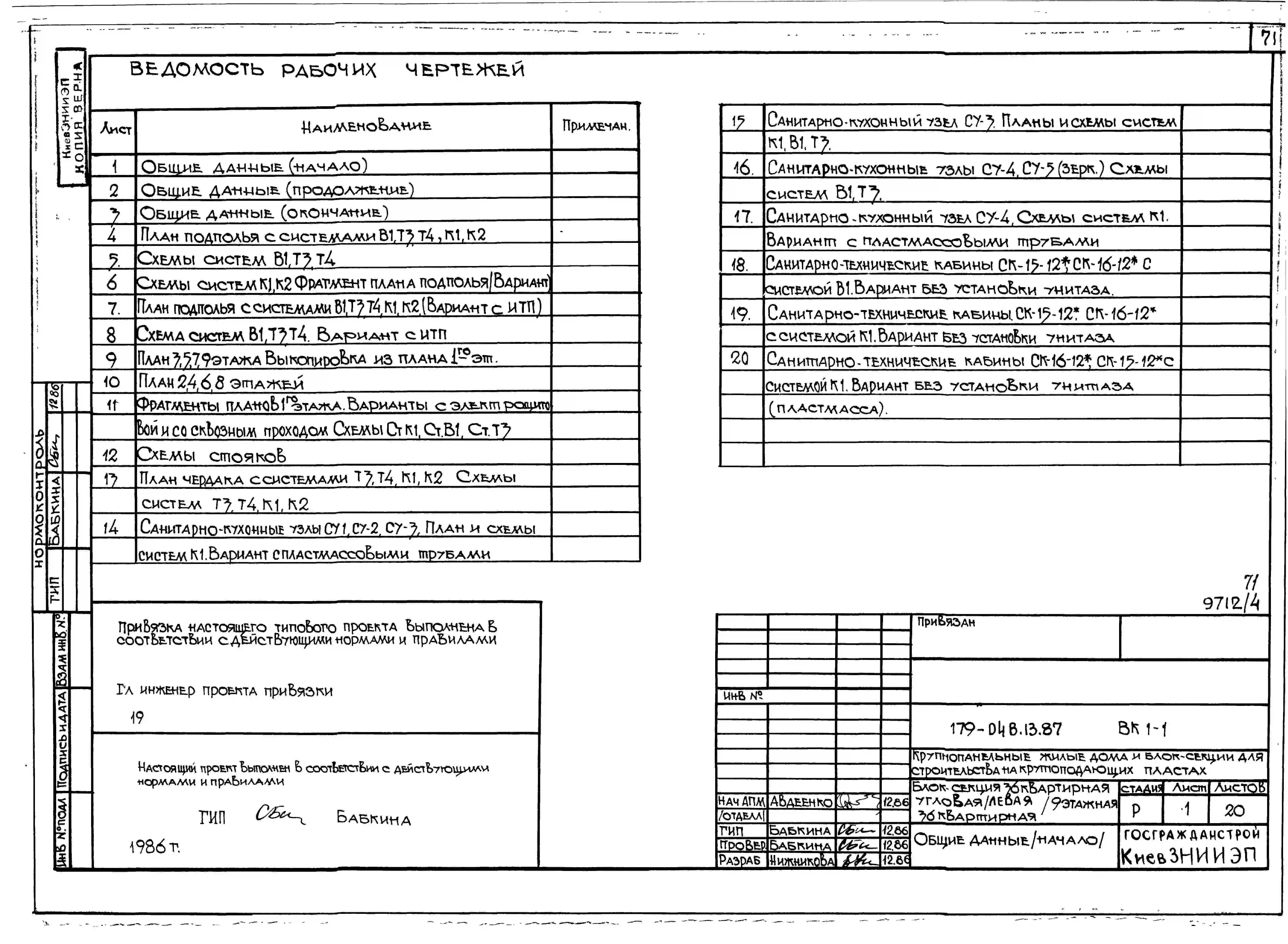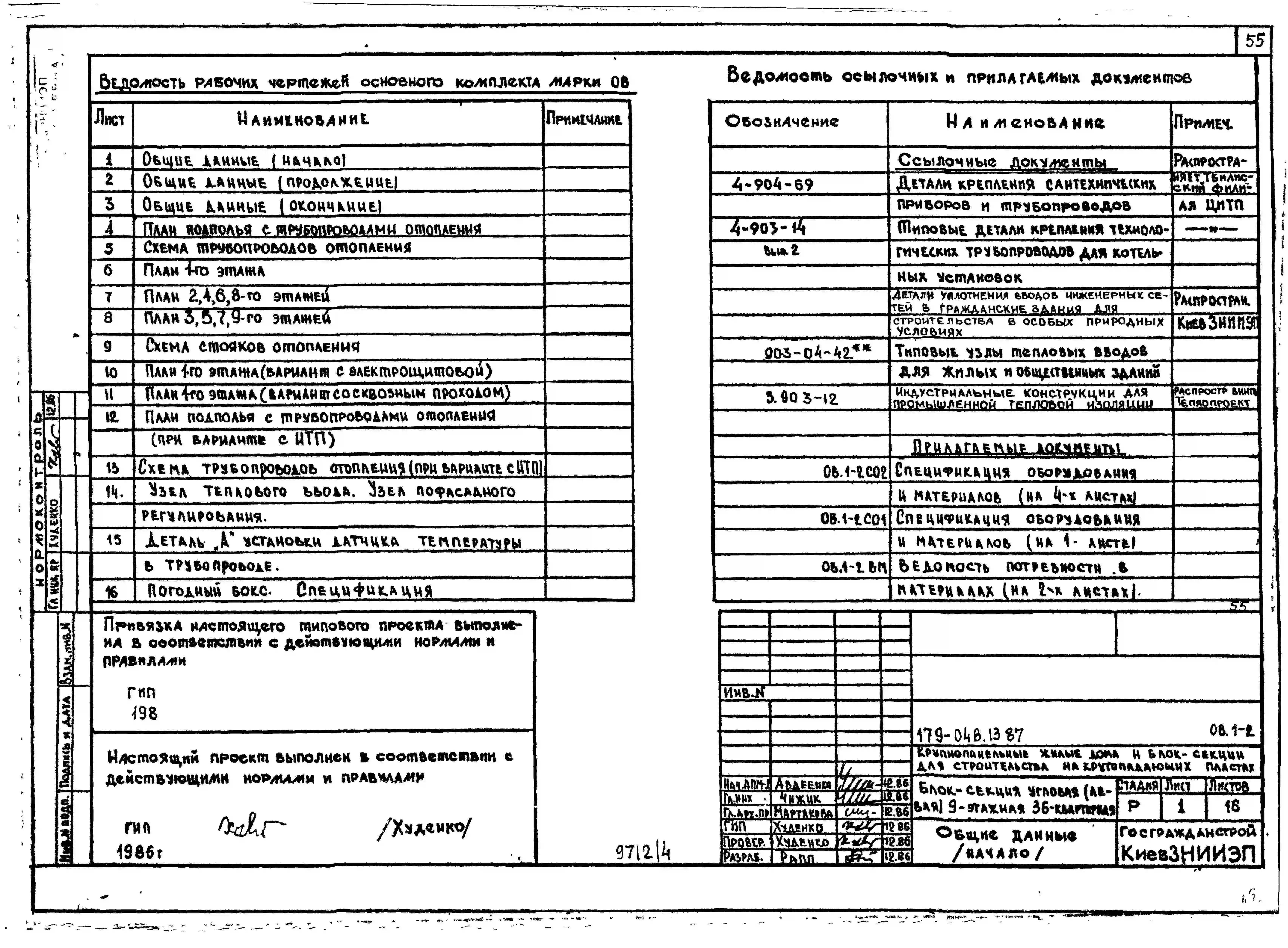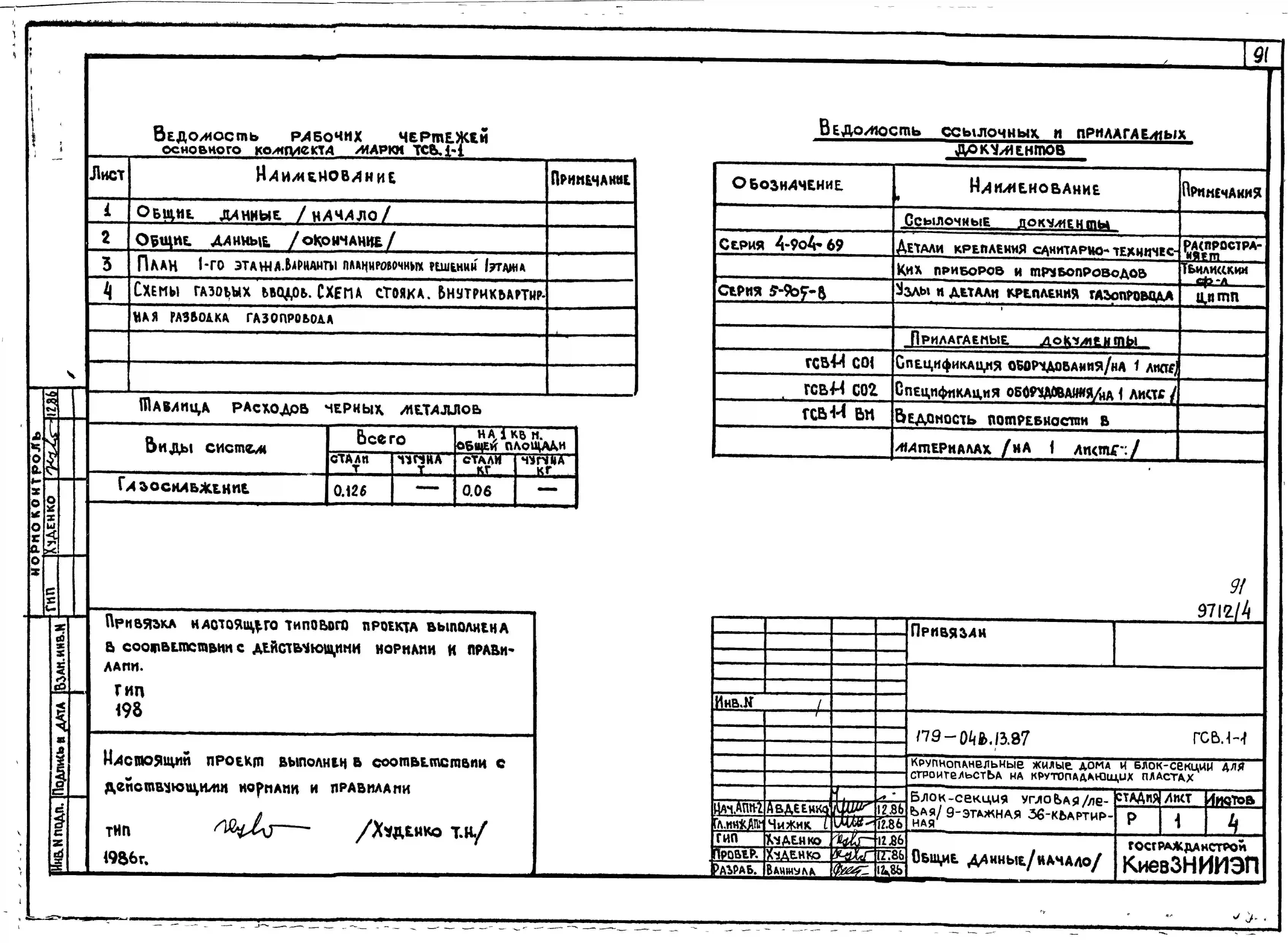 Типовой проект 179-04в.13.87 Блок-секция угловая /левая/ 9-этажная 36-квартирная для Пантелеймоновского ЖБИ