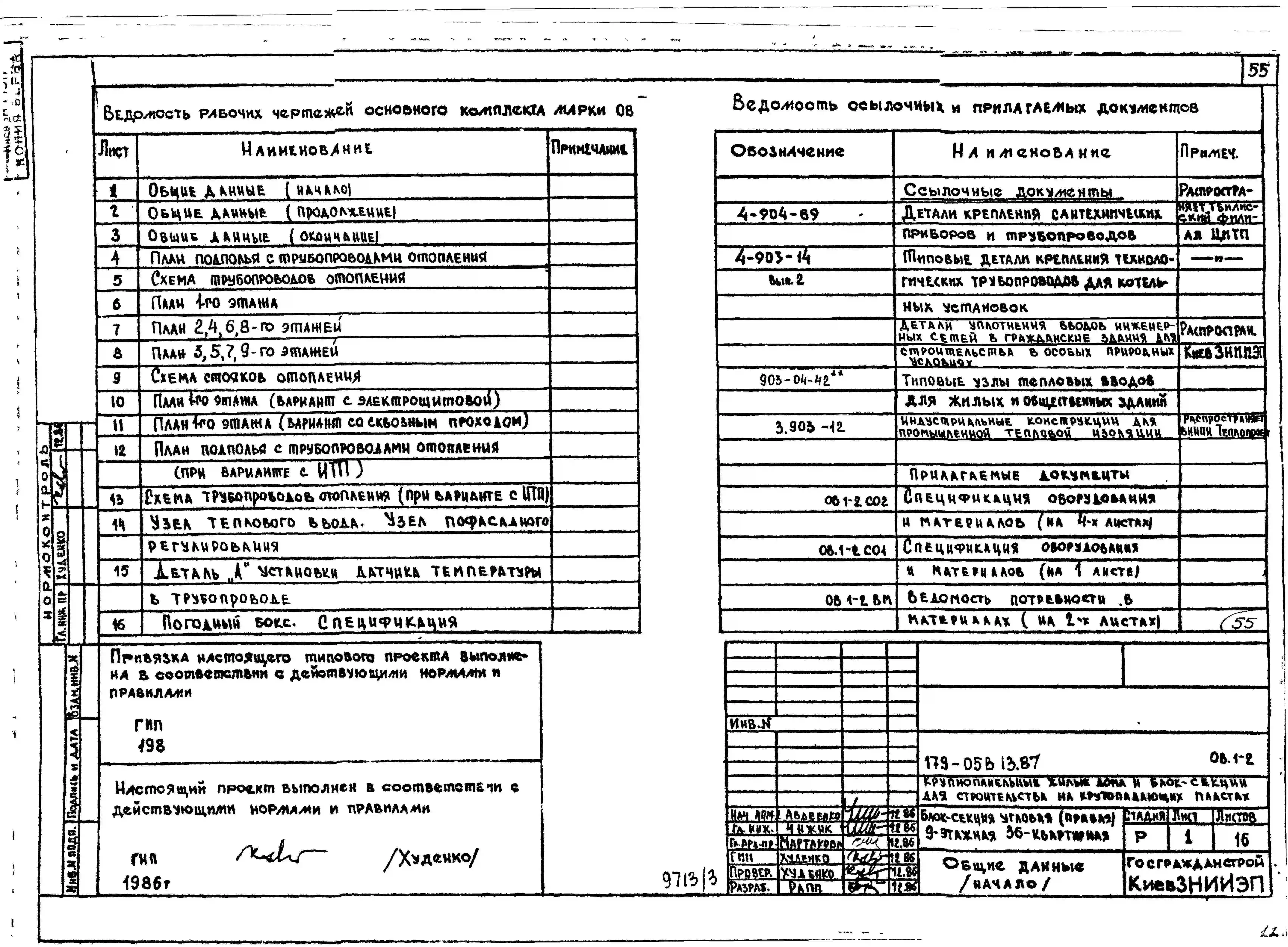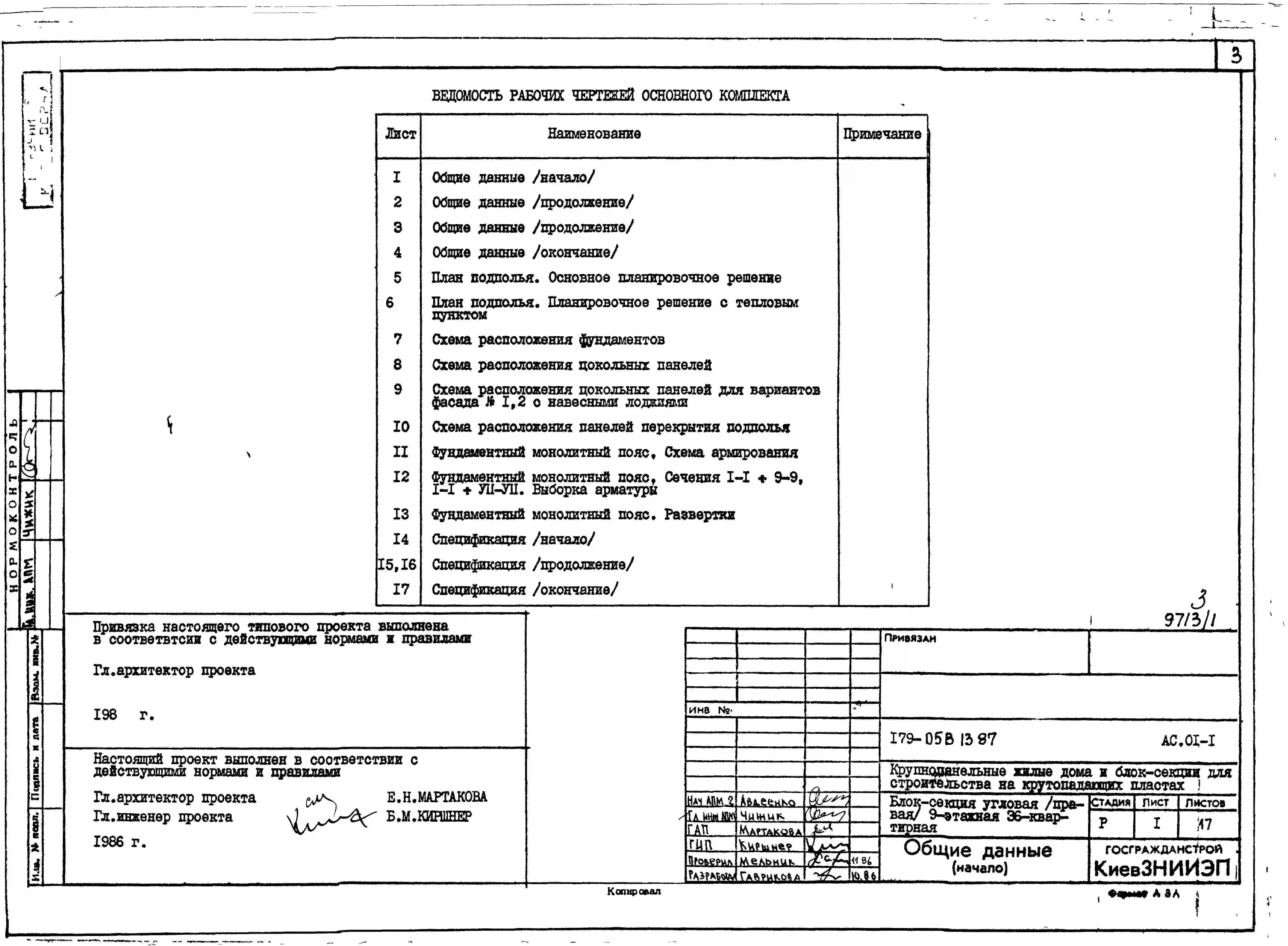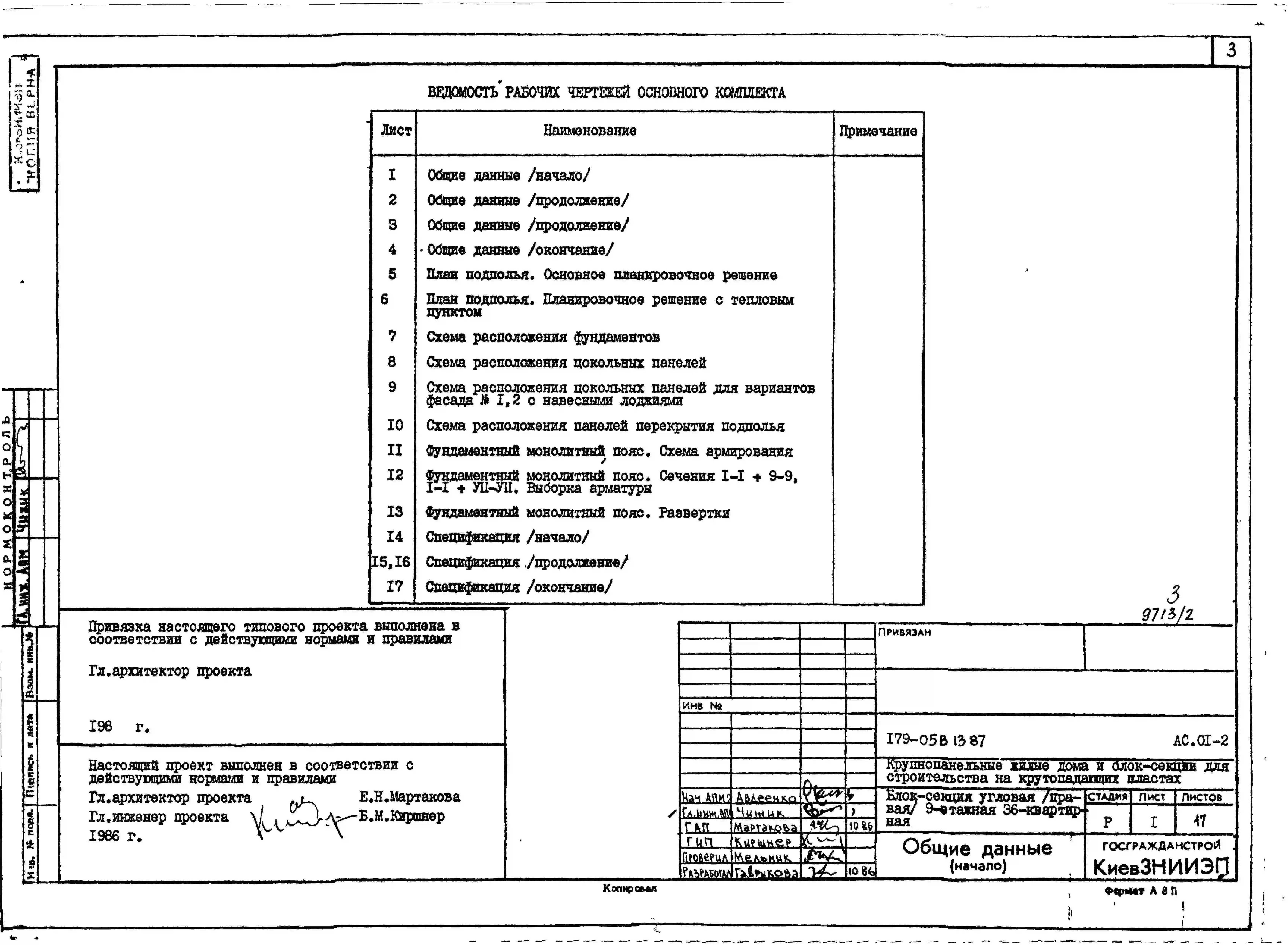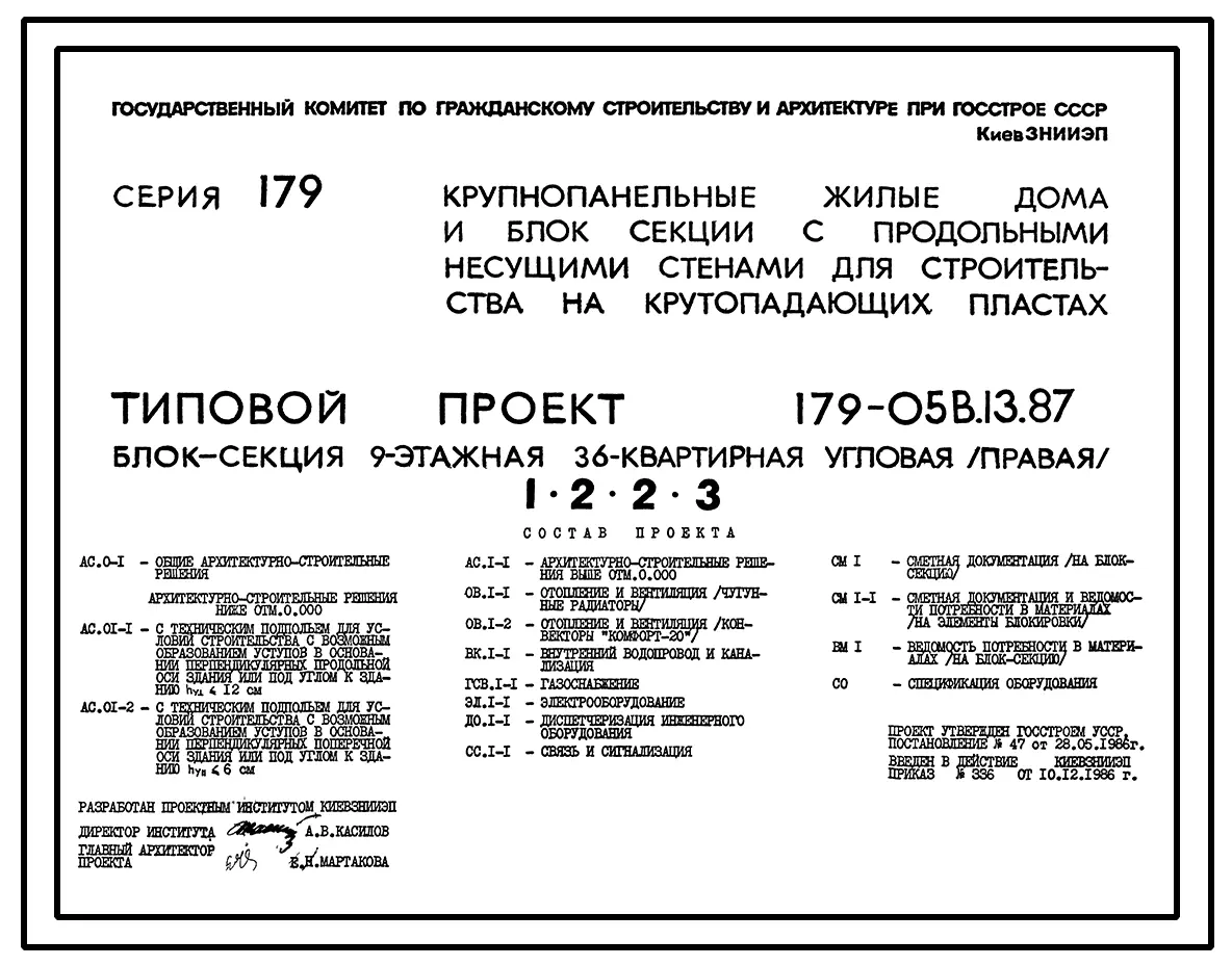 Типовой проект 179-05в.13.87 Блок-секция угловая /правая/ 9-этажная 36-квартирная для Пантелеймоновского ЖБИ