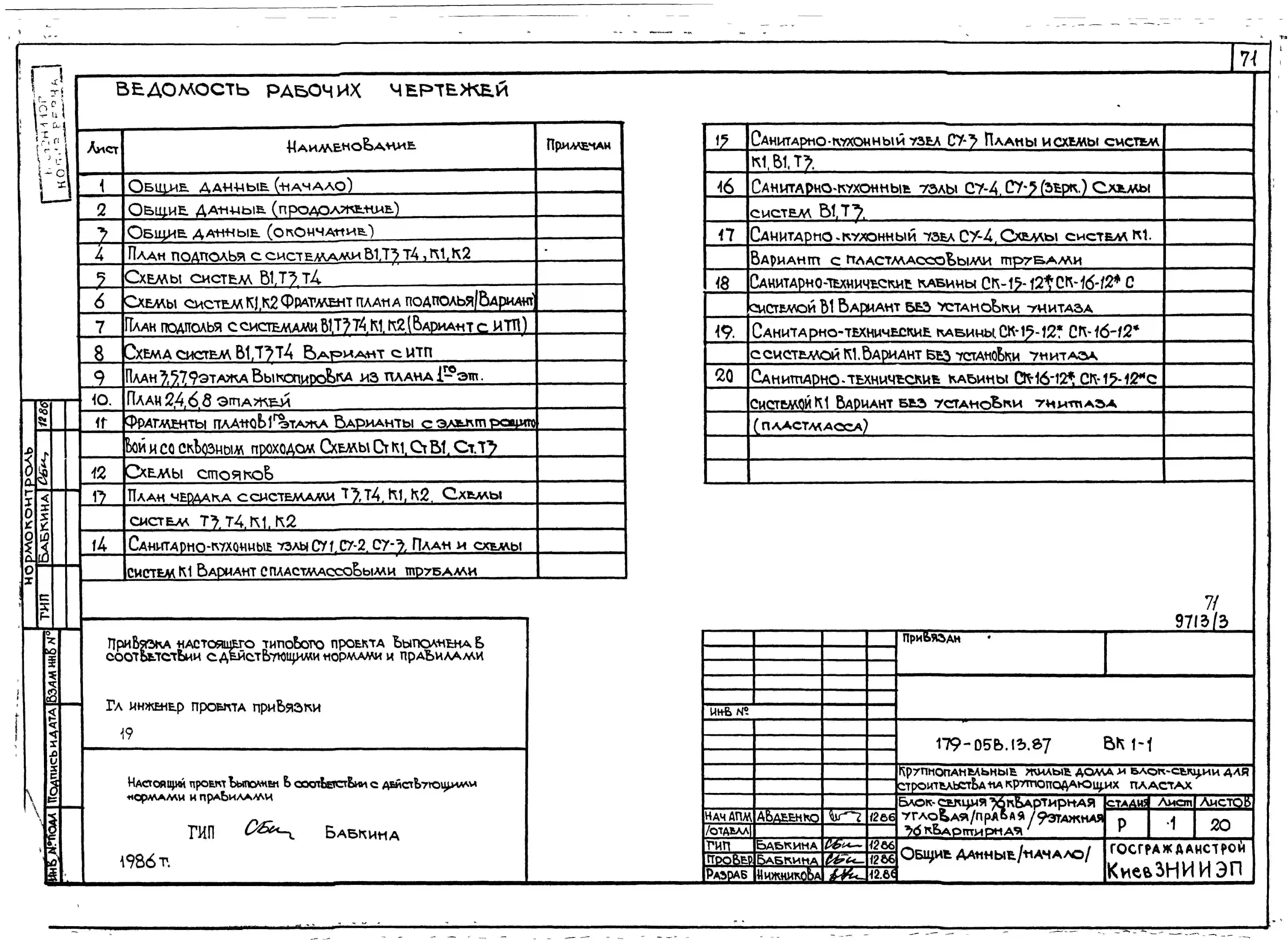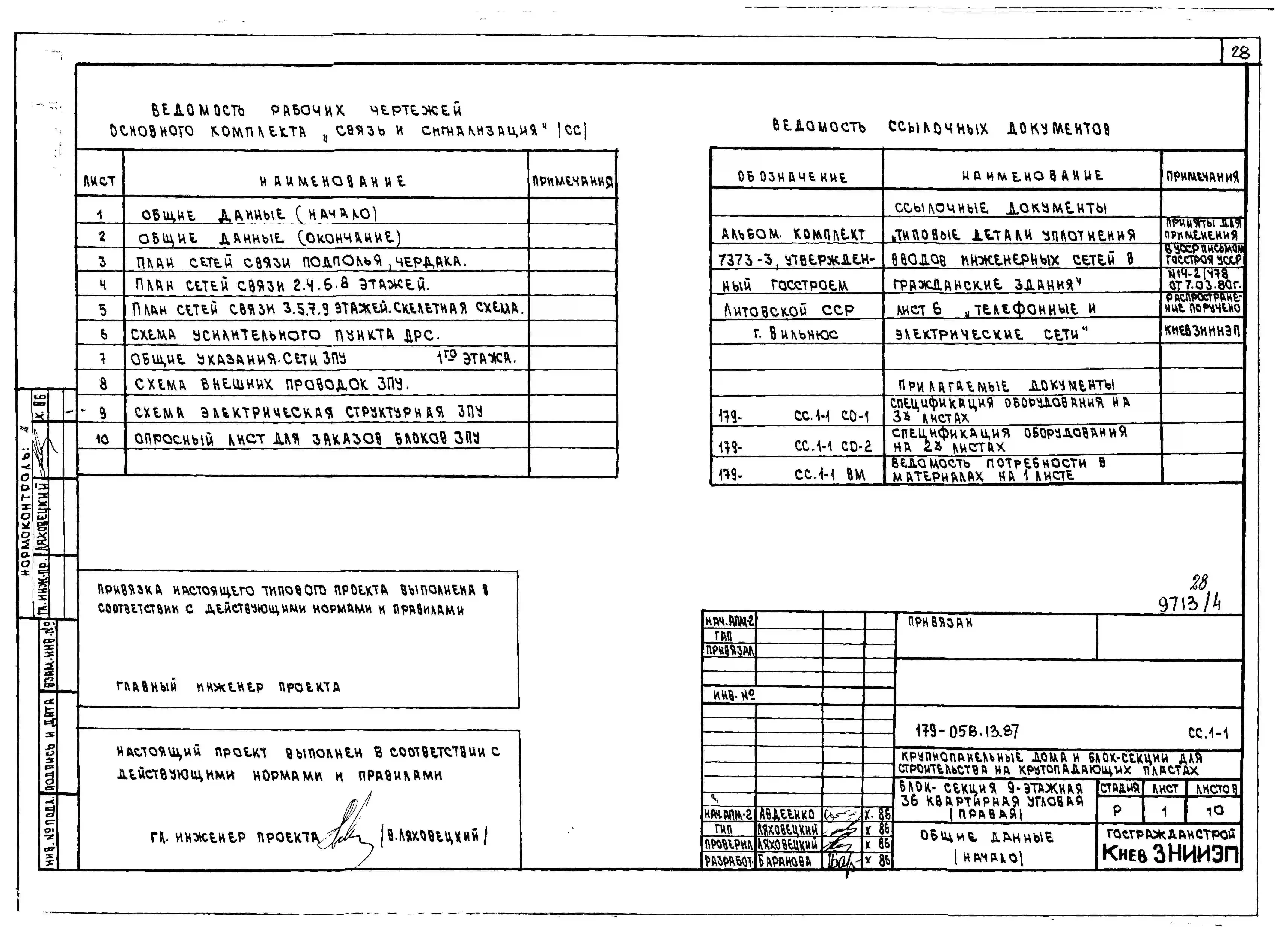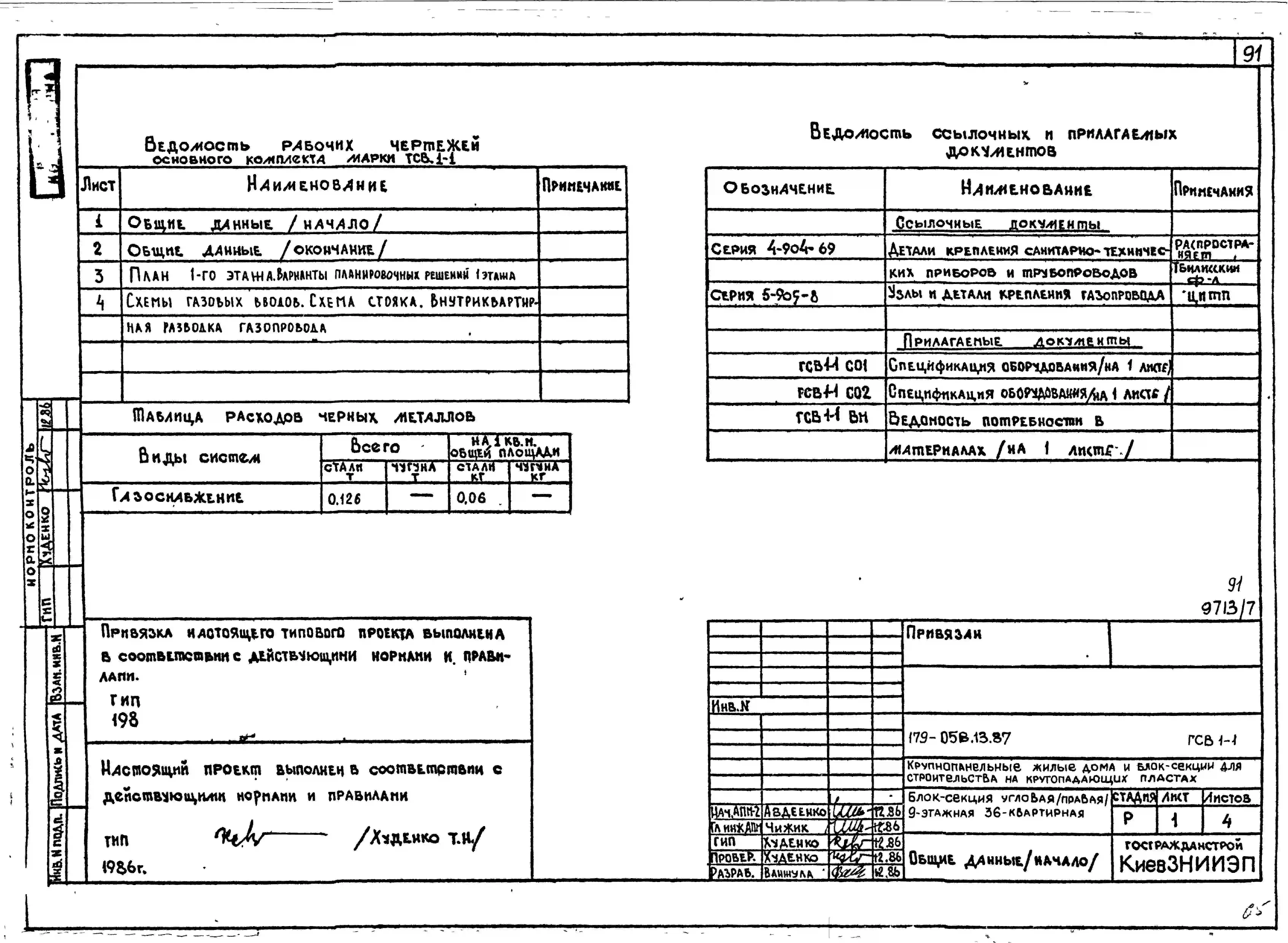 Типовой проект 179-05в.13.87 Блок-секция угловая /правая/ 9-этажная 36-квартирная для Пантелеймоновского ЖБИ