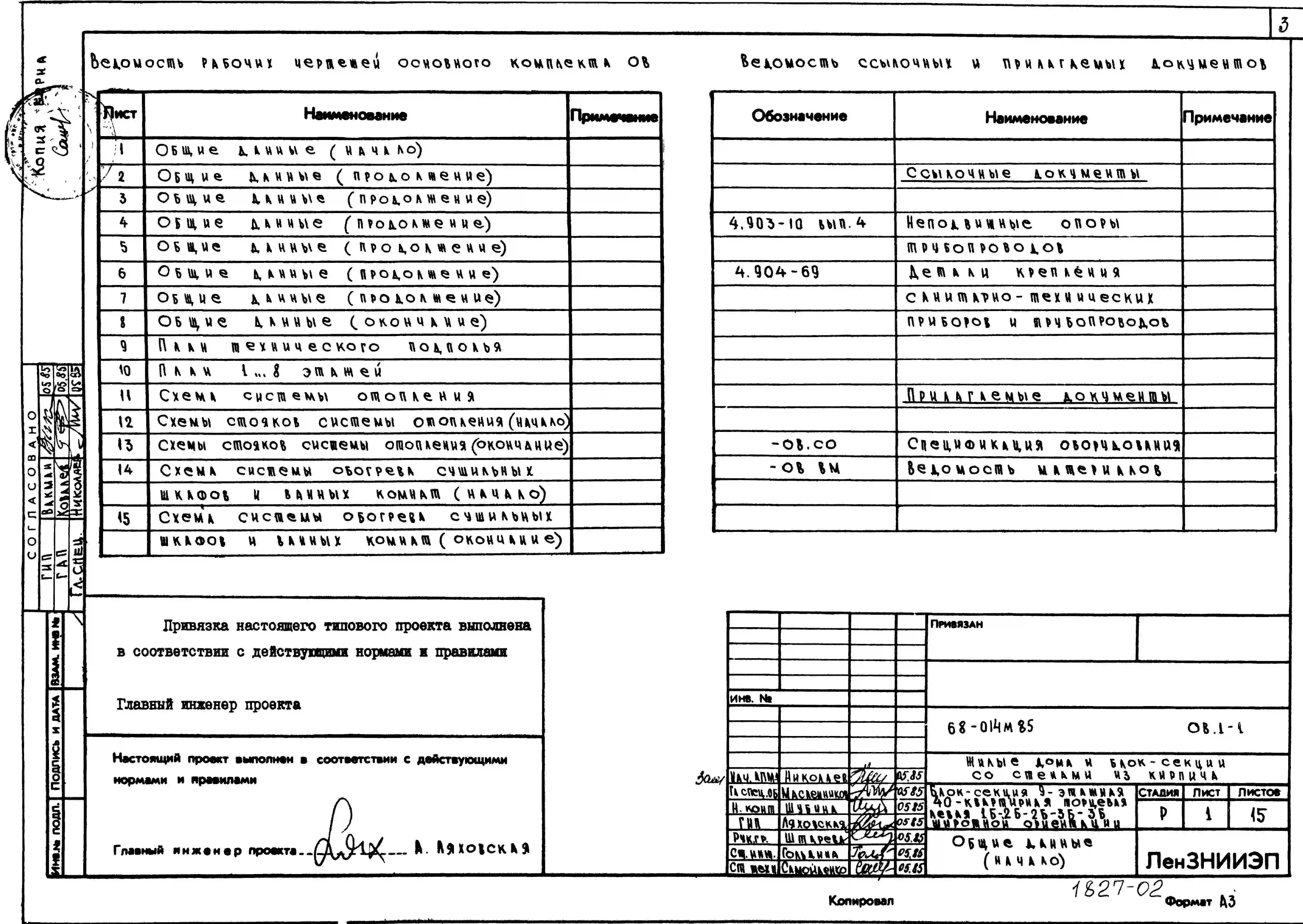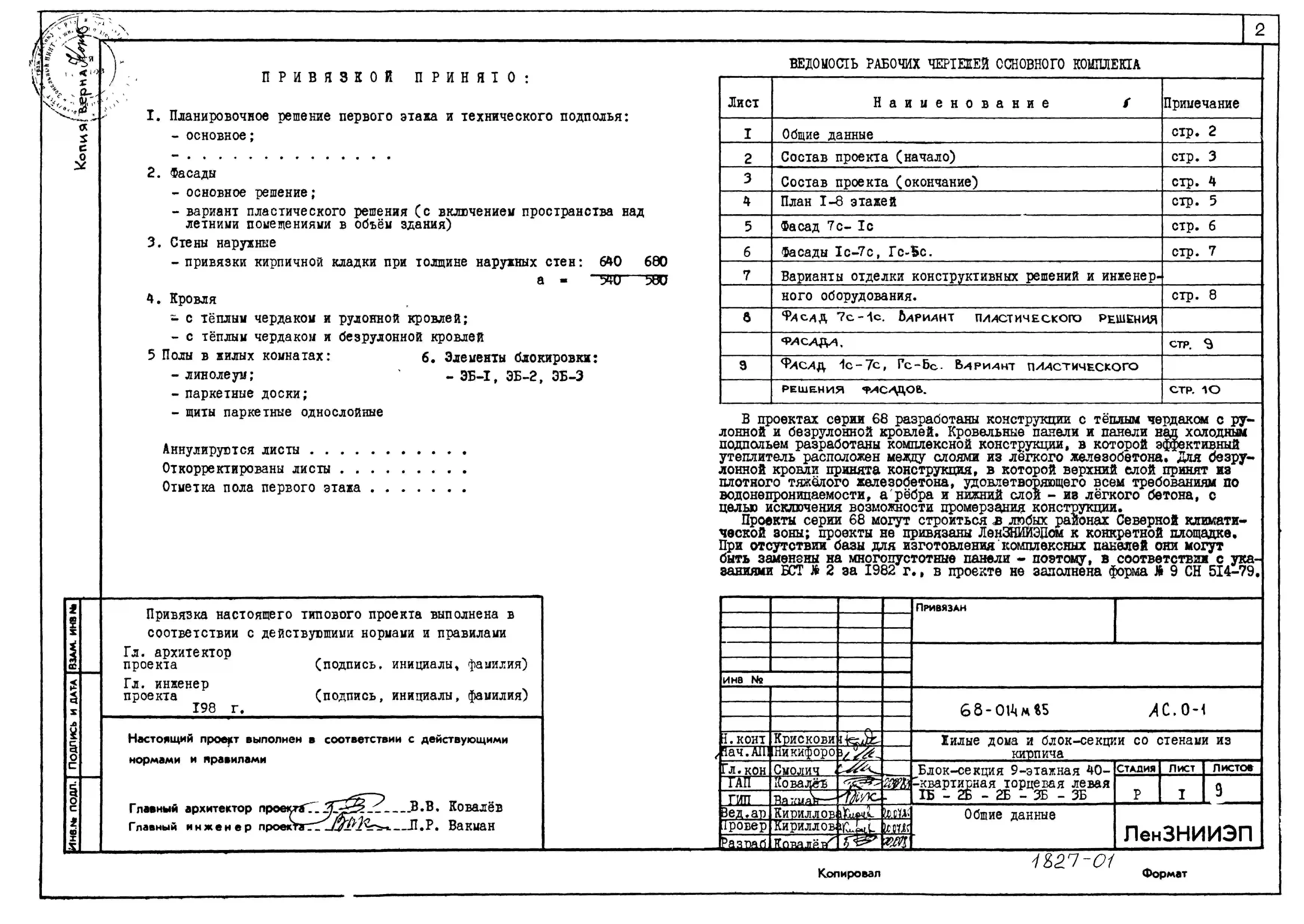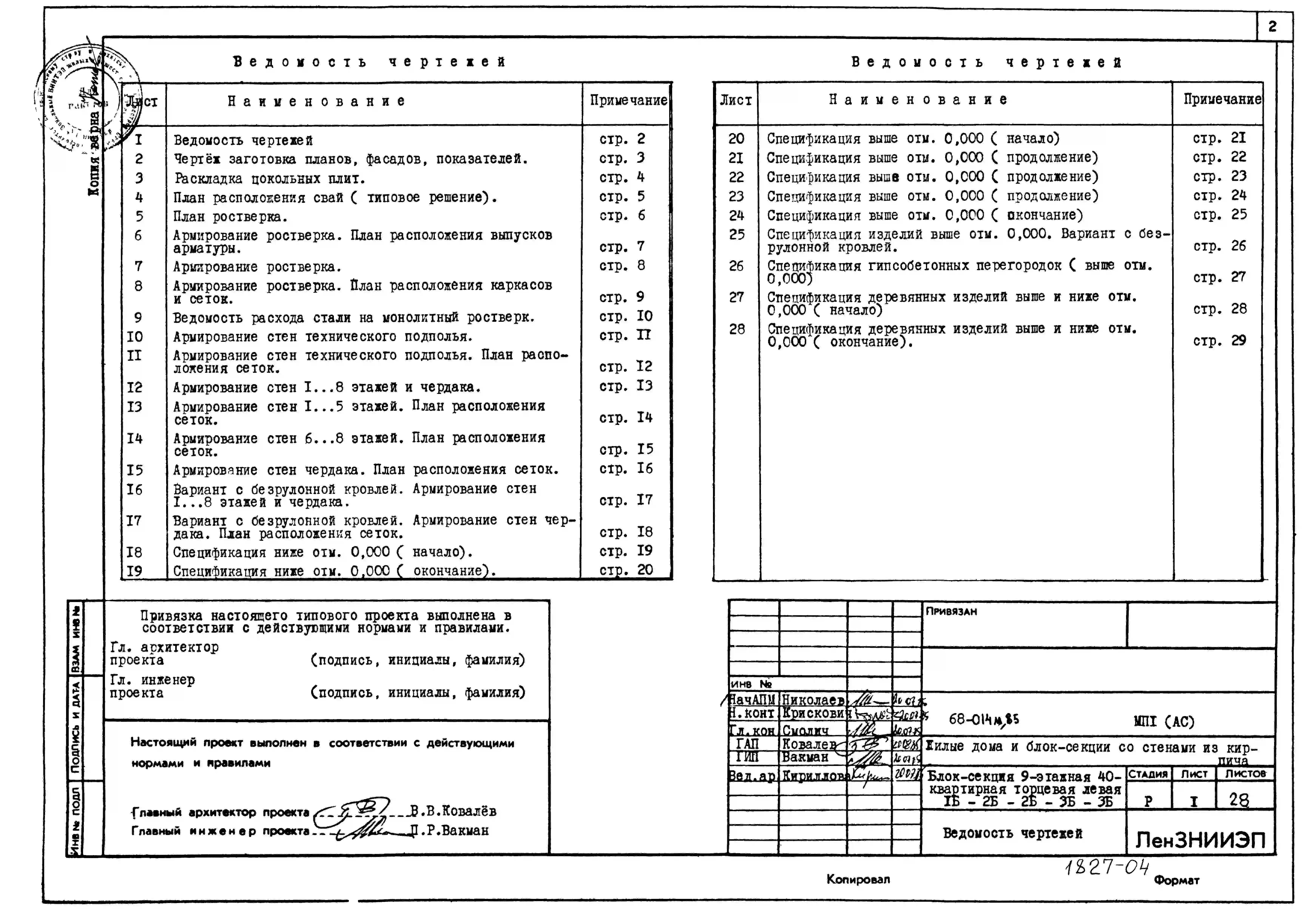 Типовой проект 68-014м.85 Девятиэтажная блок-секция торцевая левая на 40 квартир