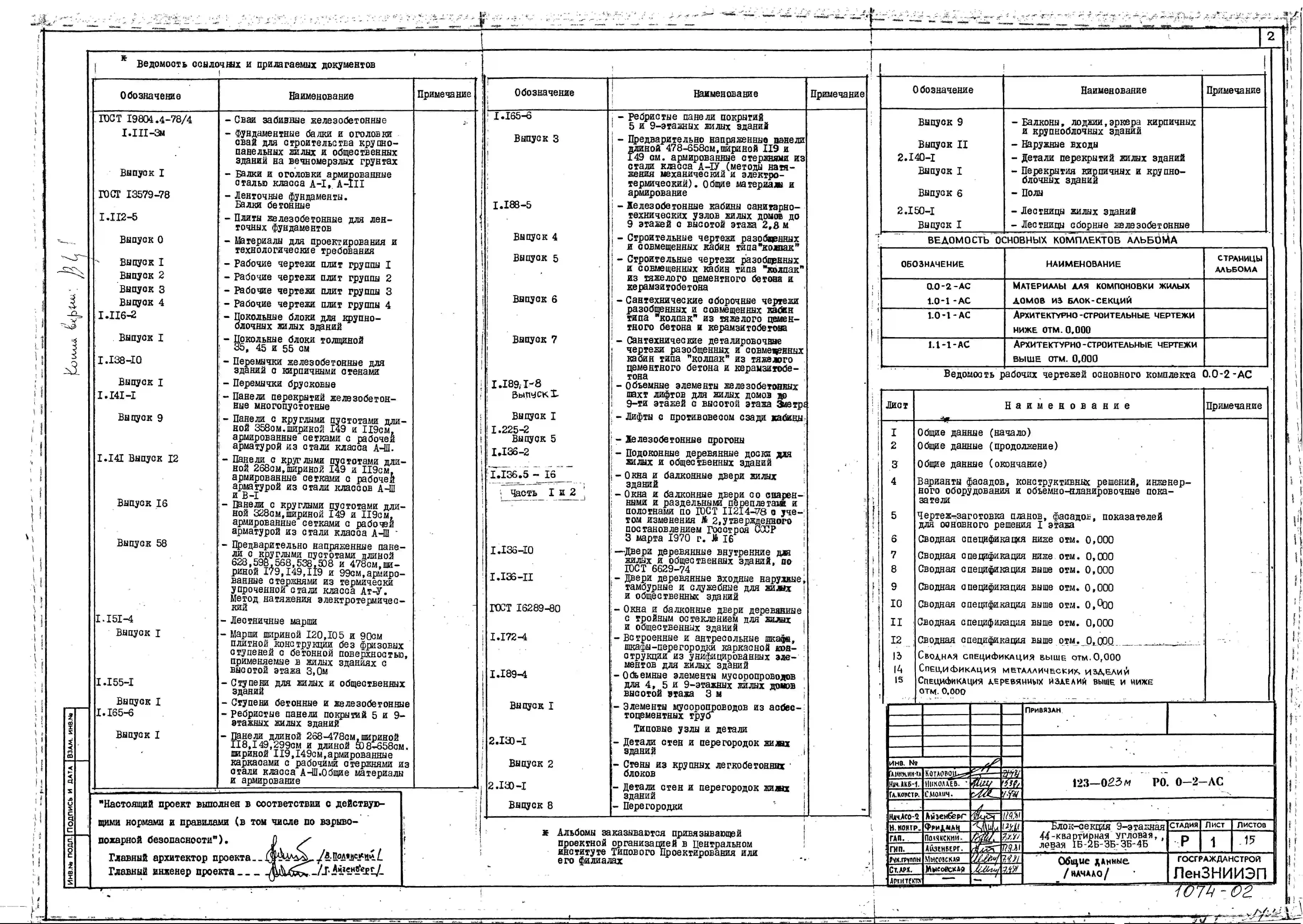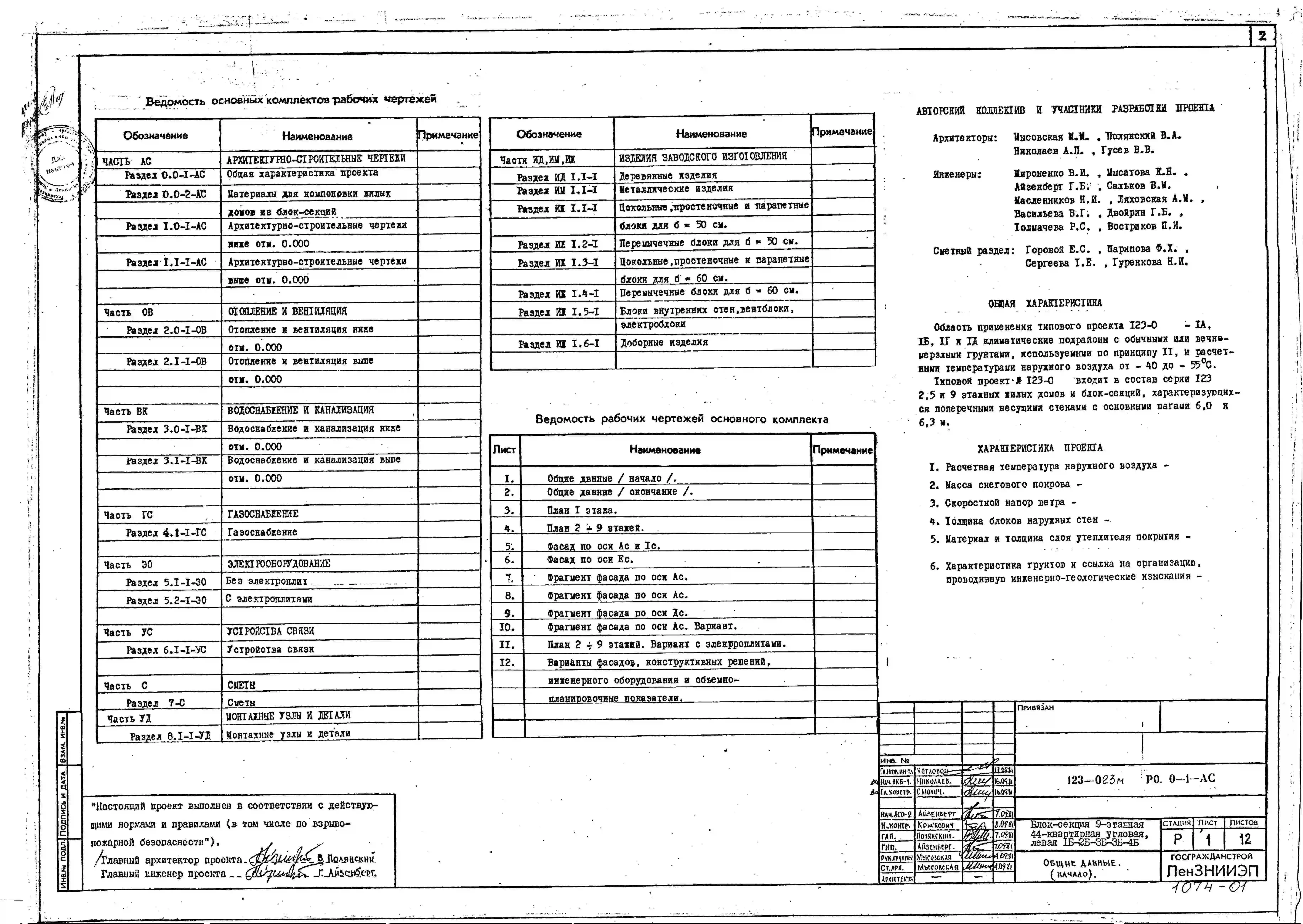 Типовой проект 123-023м Блок-секция девятиэтажная 44-квартирная угловая левая 1Б.2Б.3Б.3Б.4Б.