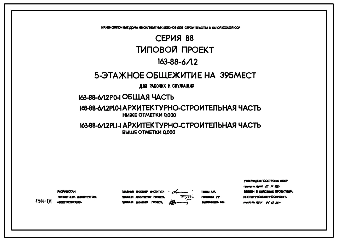 Типовой проект 163-88-6/1.2 Пятиэтажное общежитие на 395 мест для рабочих и служащих.