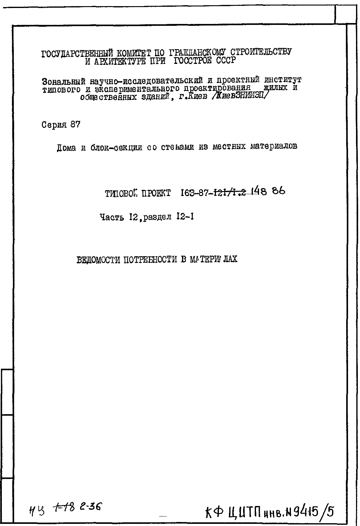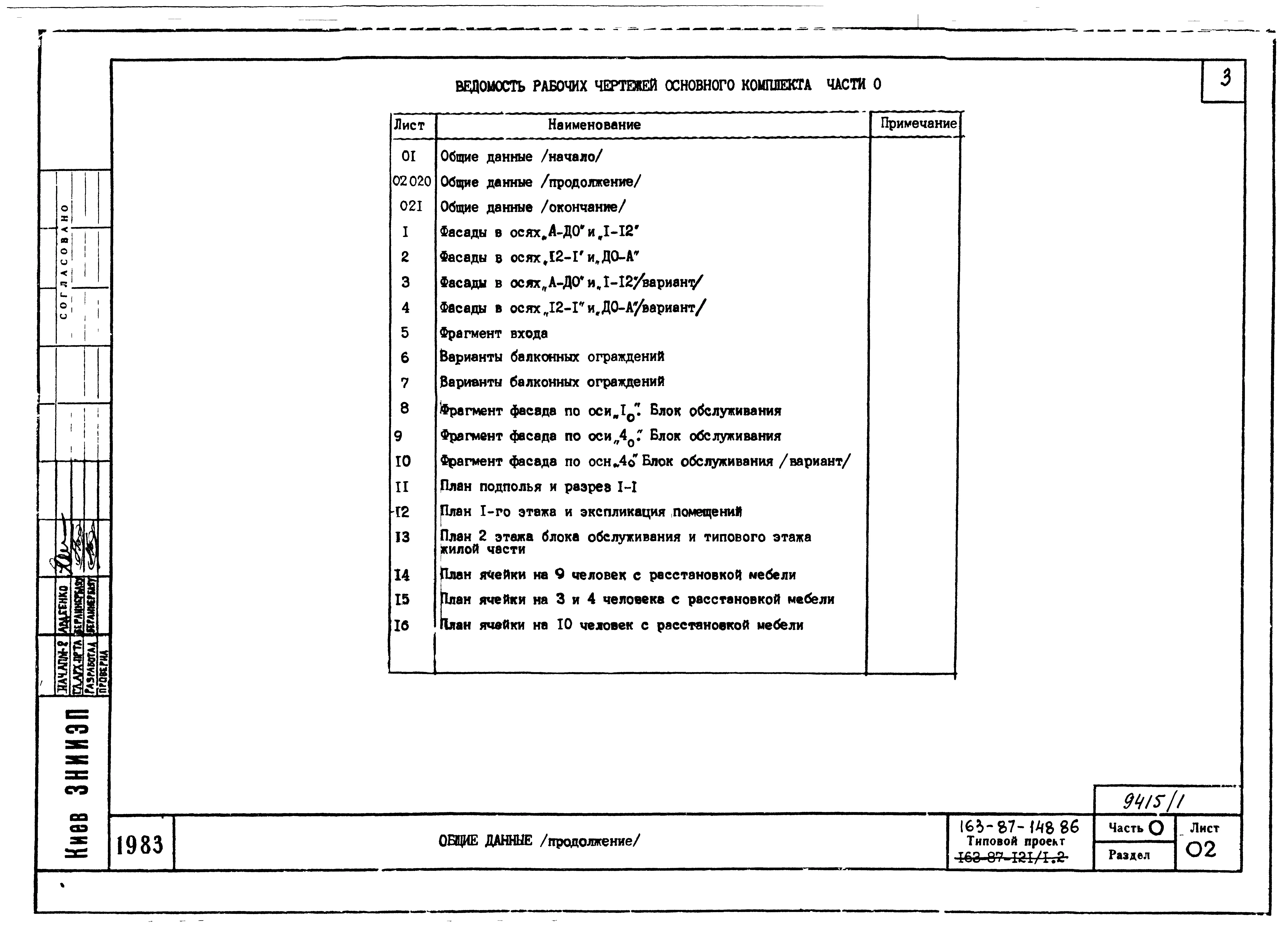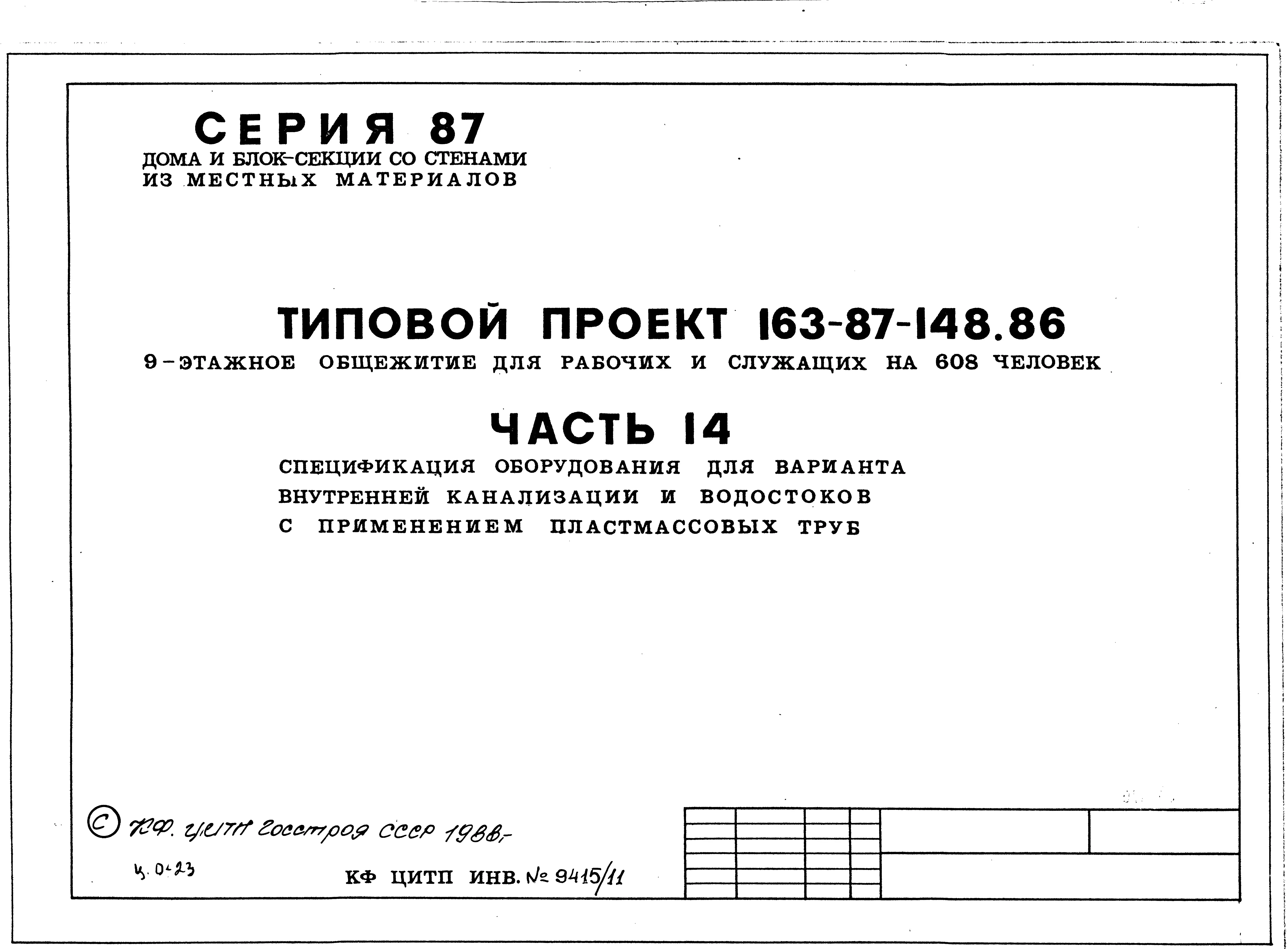 Типовой проект 163-87-148.86 9-этажное общежитие для рабочих и служащих на 608 человек с блоком обслуживания