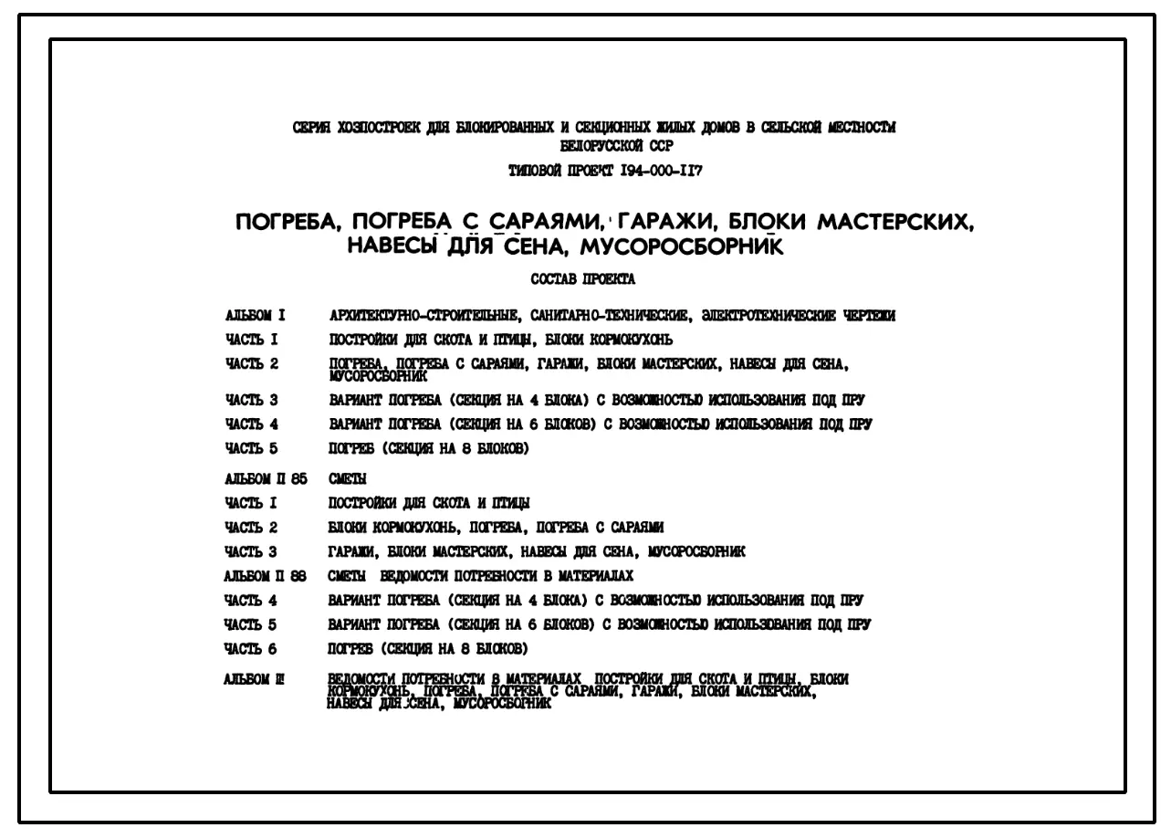 Типовой проект 194-000-117 Склад для хранения опилок. Паспорт проекта (формат PDF) Чертежи (формат TIF)