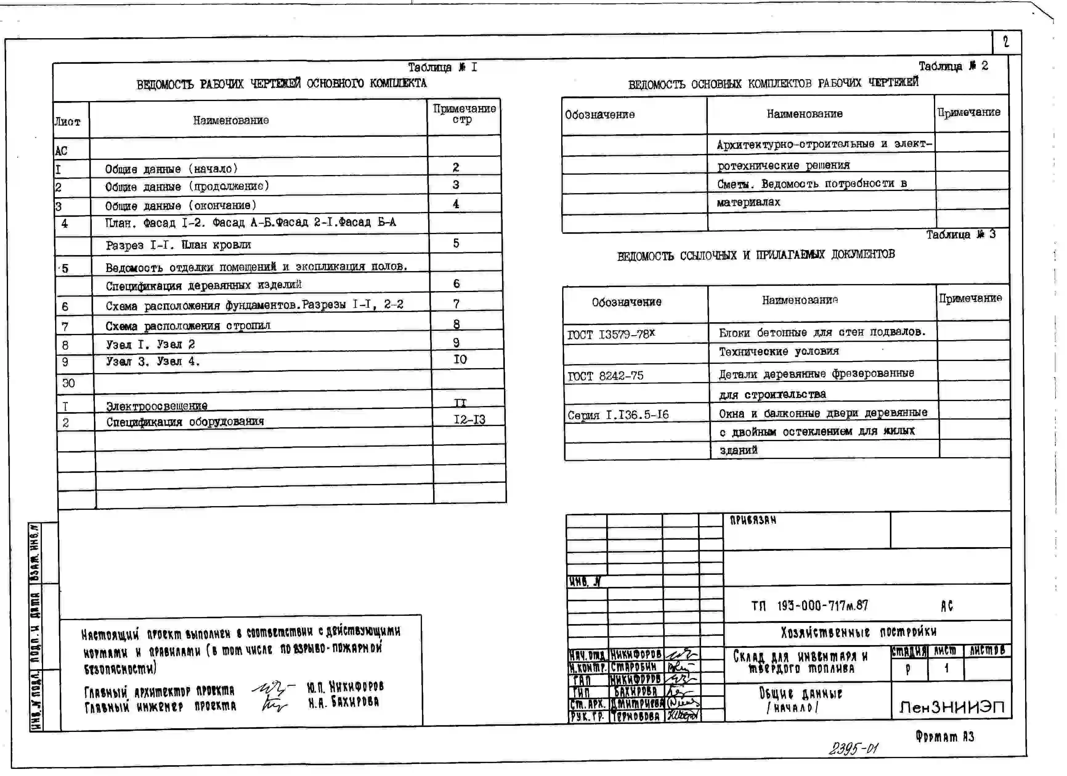 Типовой проект 193-000-717м.87 Хозяйственные постройки. Склад для инвентаря и твердого топлива