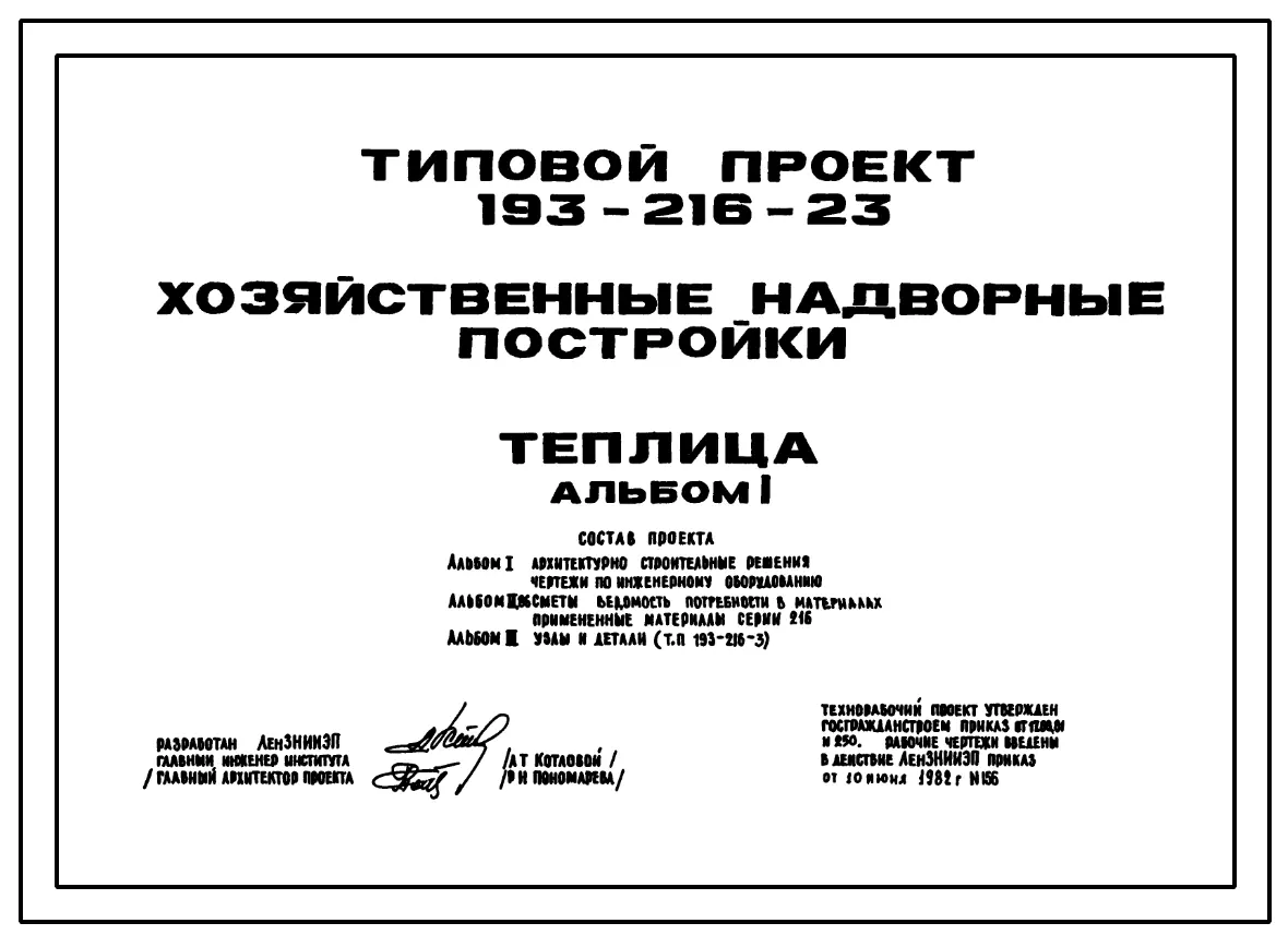 Типовой проект 193-216-23 Хозяйственные надворные постройки. Теплица