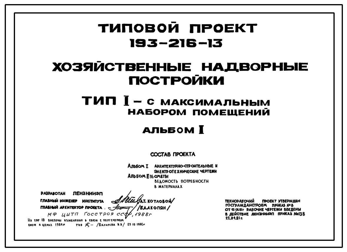 Типовой проект 193-216-13 Хозяйственные надворные постройки. Тип I — с максимальным набором помещений.