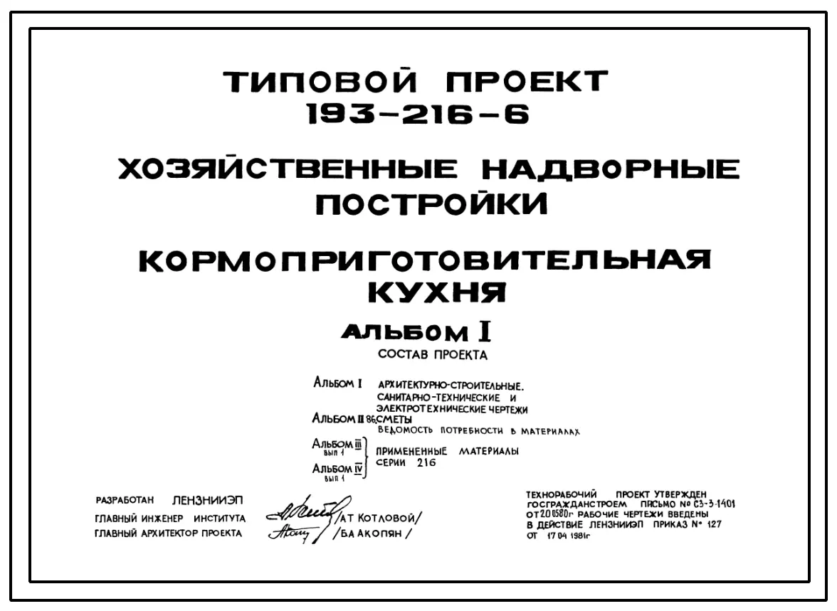Типовой проект 193-216-6 Хозяйственные надворные постройки. Кормоприготовительная кухня.