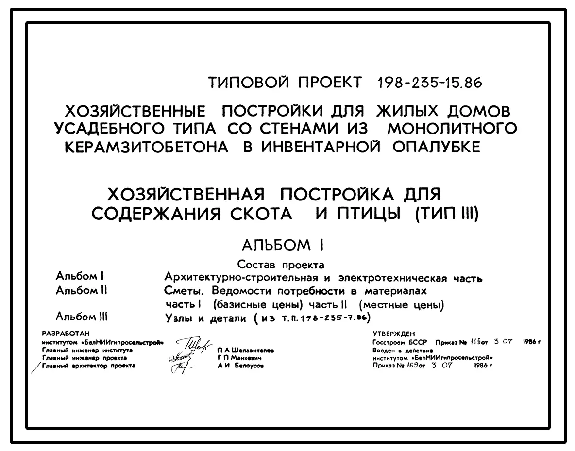 Типовой проект 198-235-15.86 Хозяйственная постройка для содержания скота и птицы. Для индивидуального строительства в сельской местности