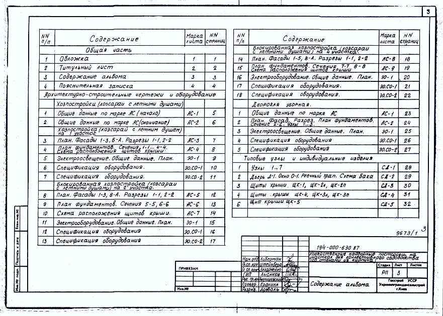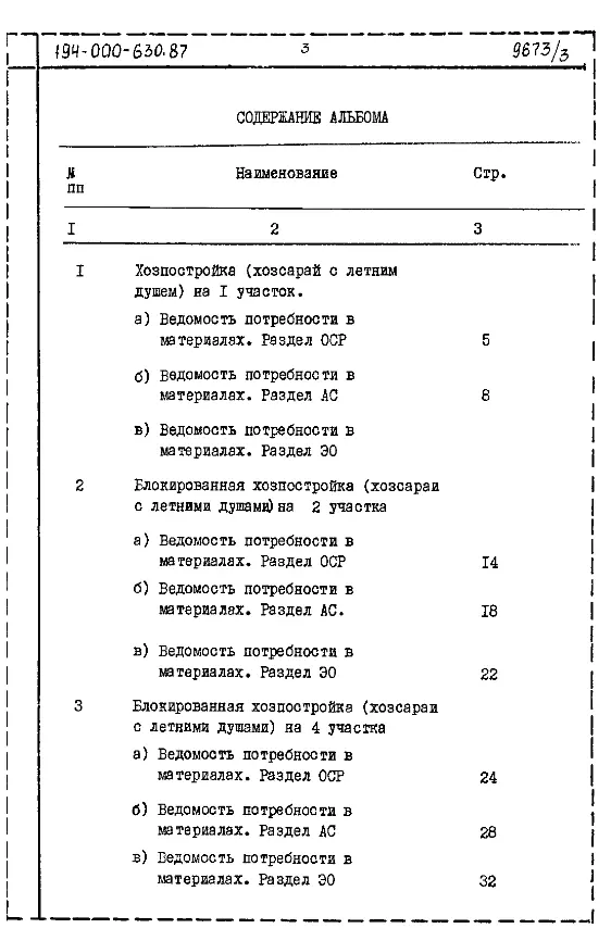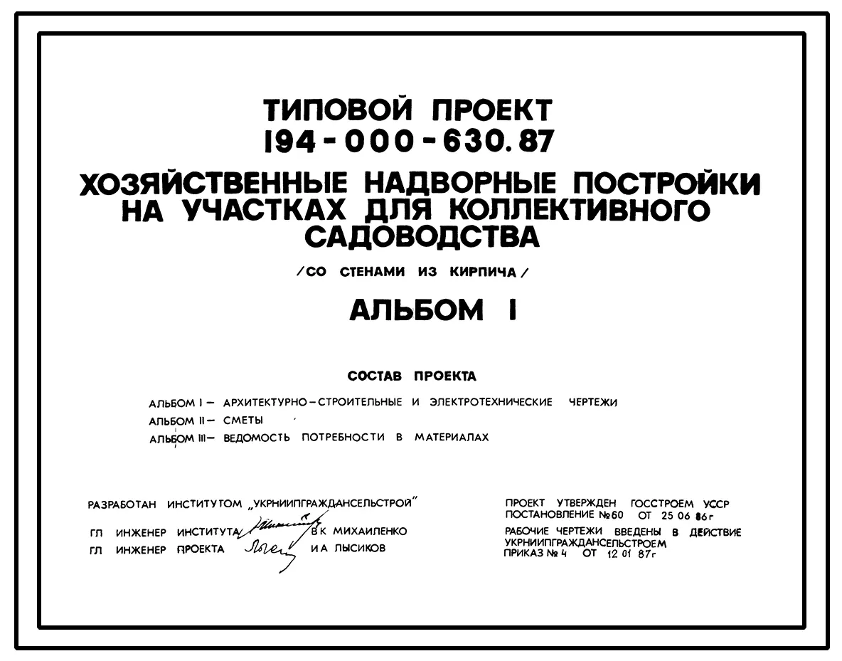 Типовой проект 194-000-630.87 Хозяйственные надворные постройки на участках коллективного садоводства (со стенами из кирпича)