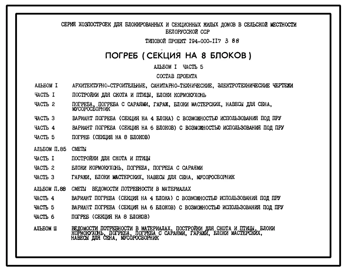 Типовой проект 194-000-117.3.88 Погреб (секция на 8 блоков)