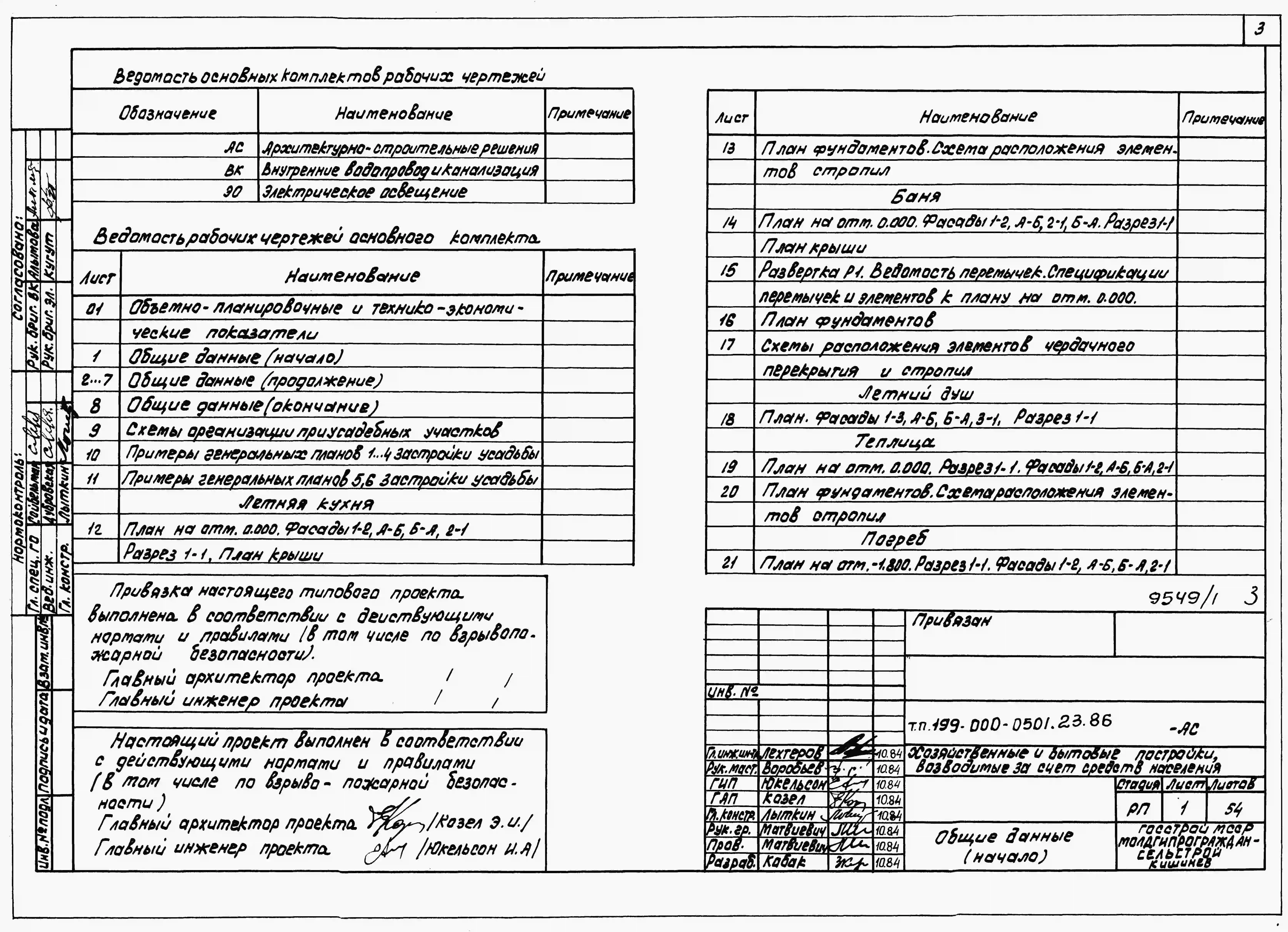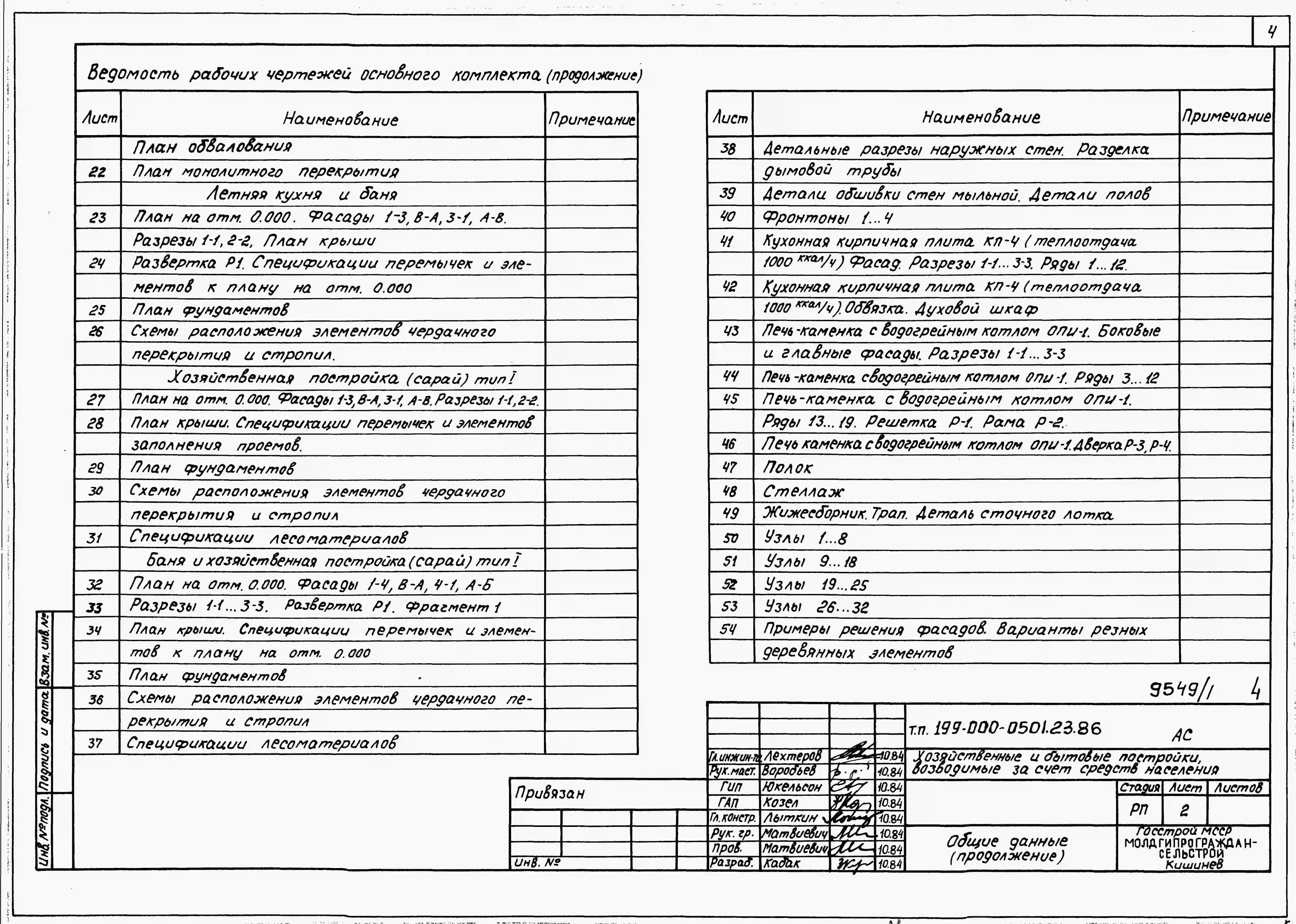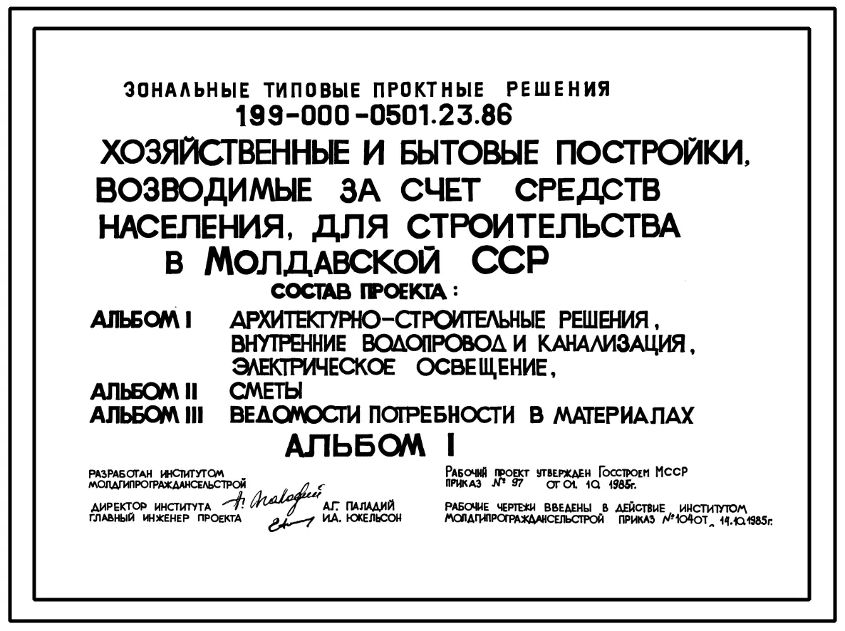Типовой проект 199-000-0501.23.86 Хозяйственные и бытовые постройки, возводимые за счет средств населения (летняя кухня, баня, теплица, летний душ)