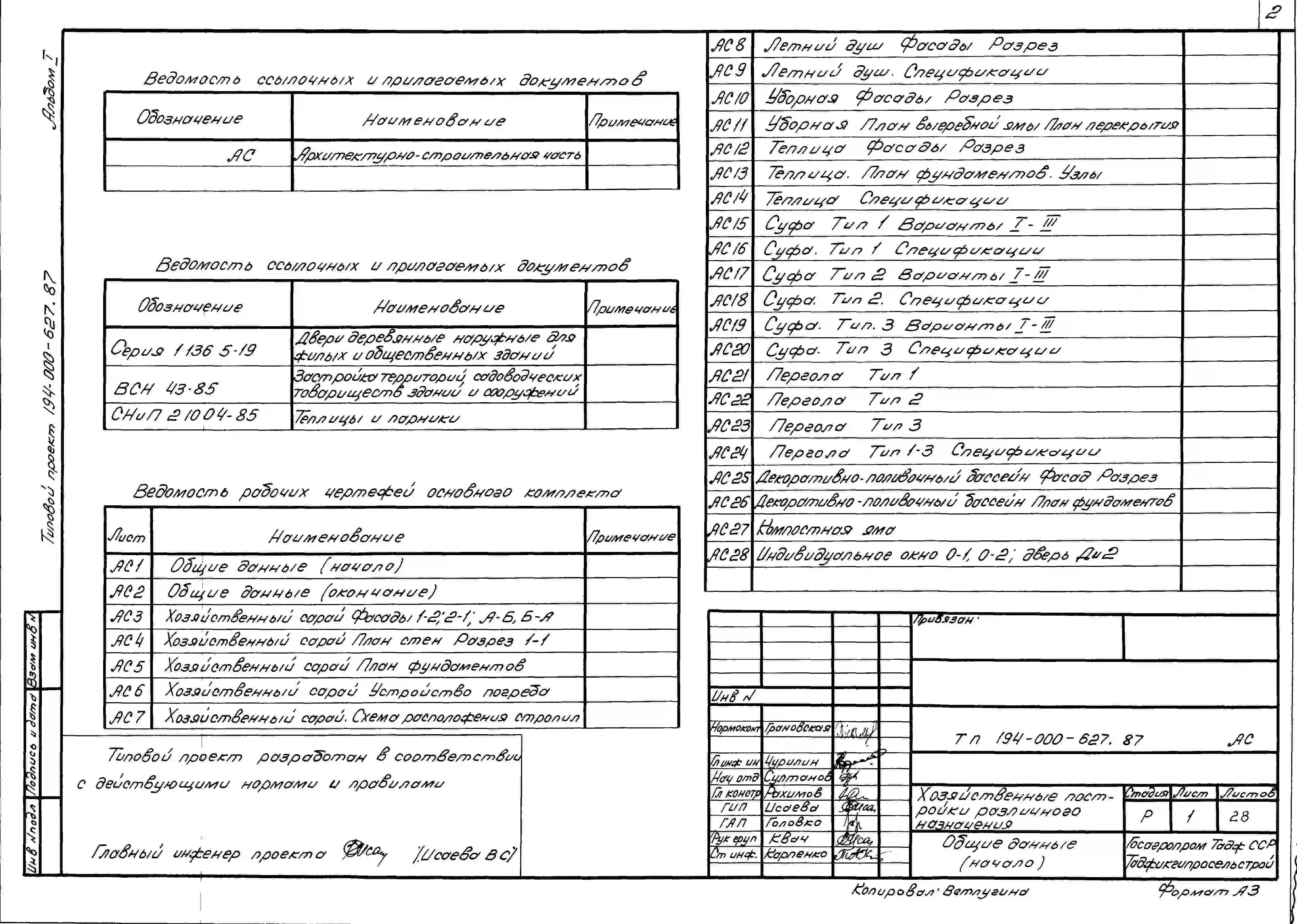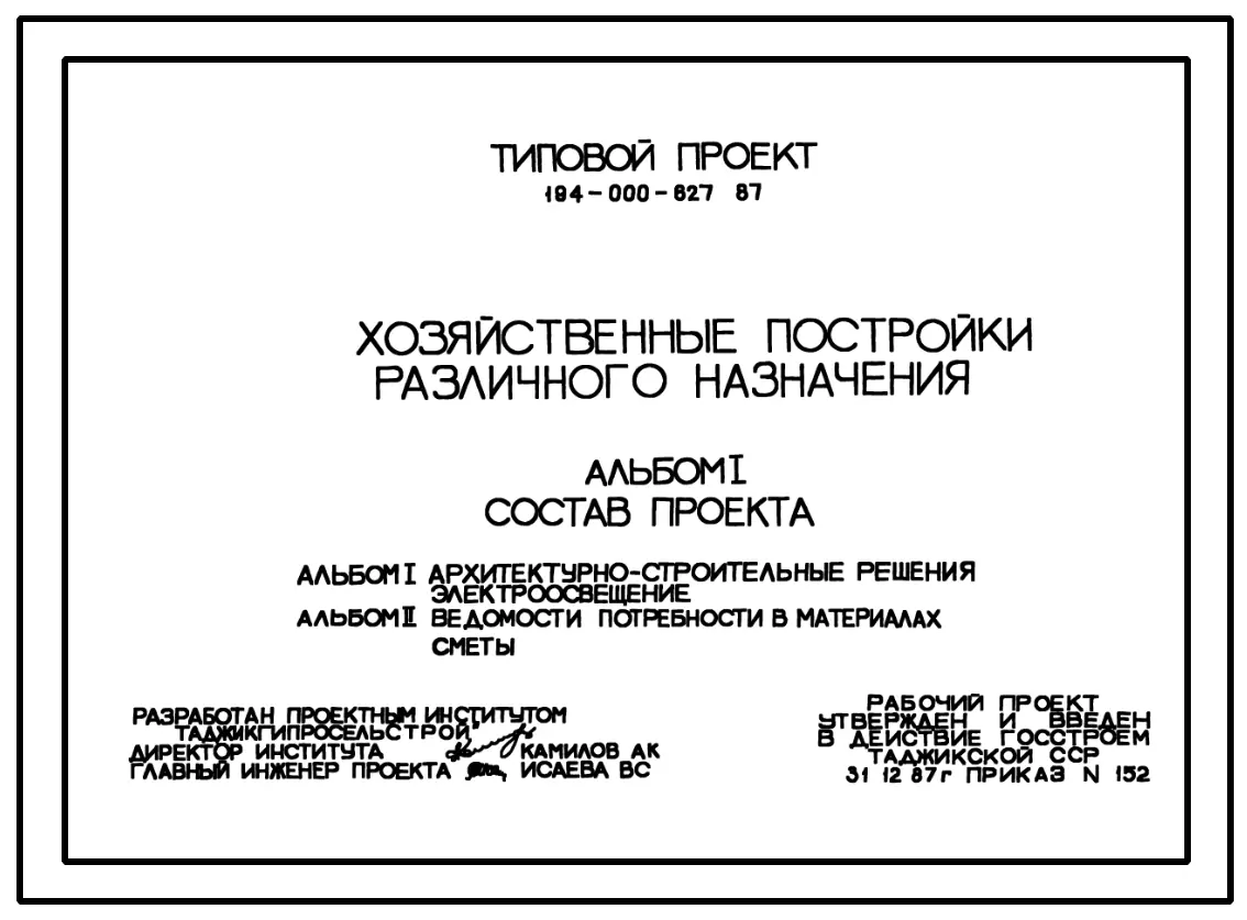 Типовой проект 194-000-627.87 Хозяйственные постройки различного назначения