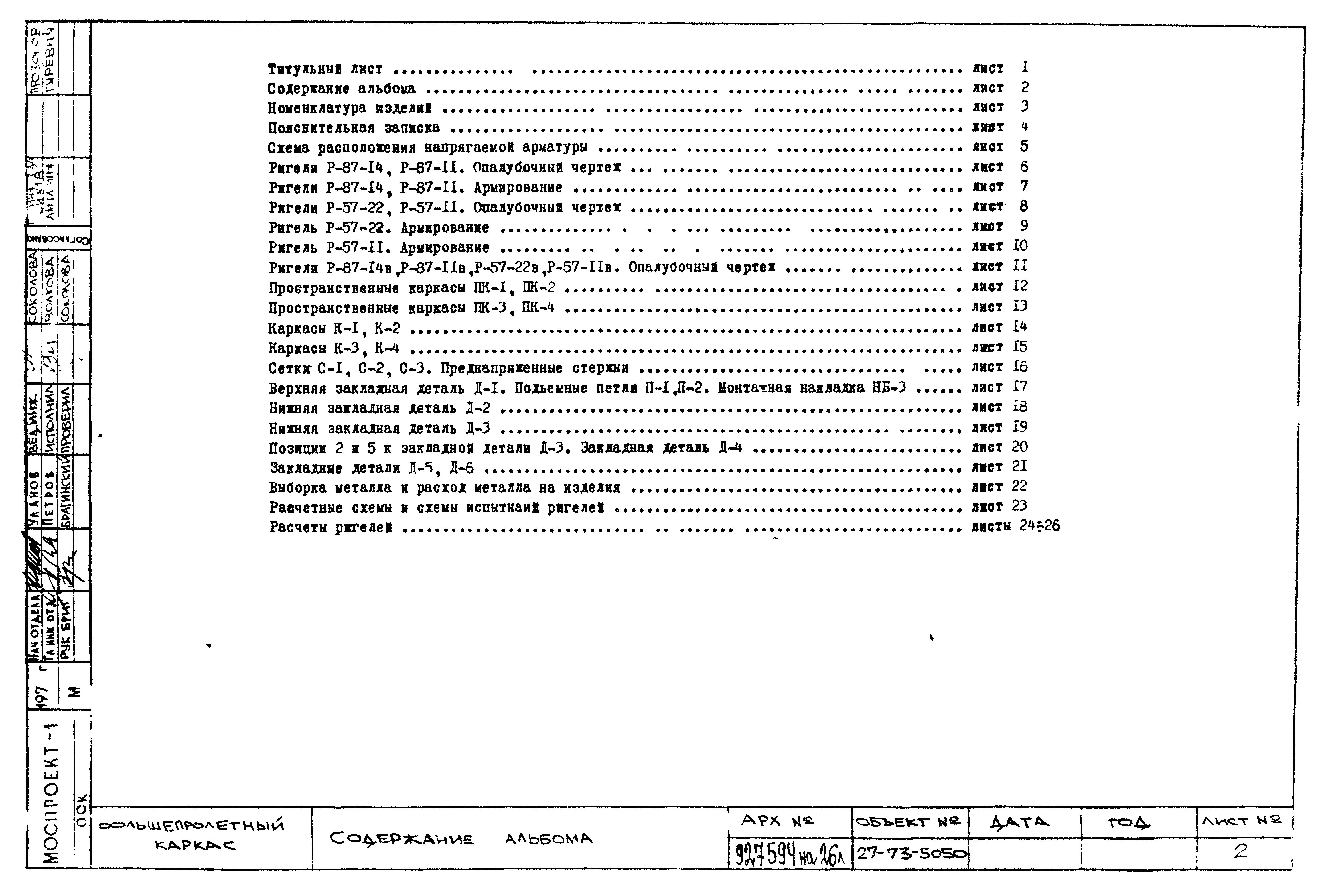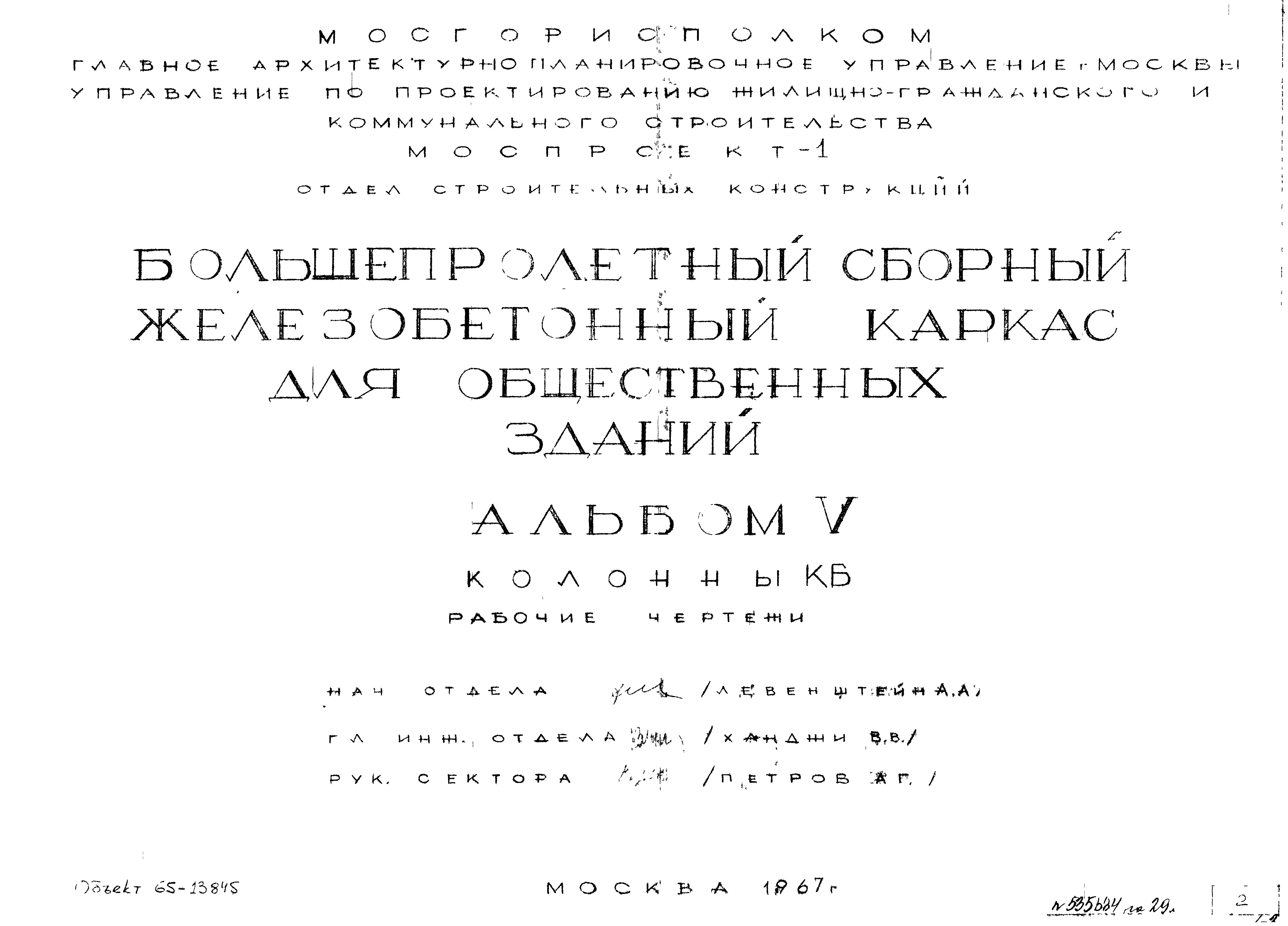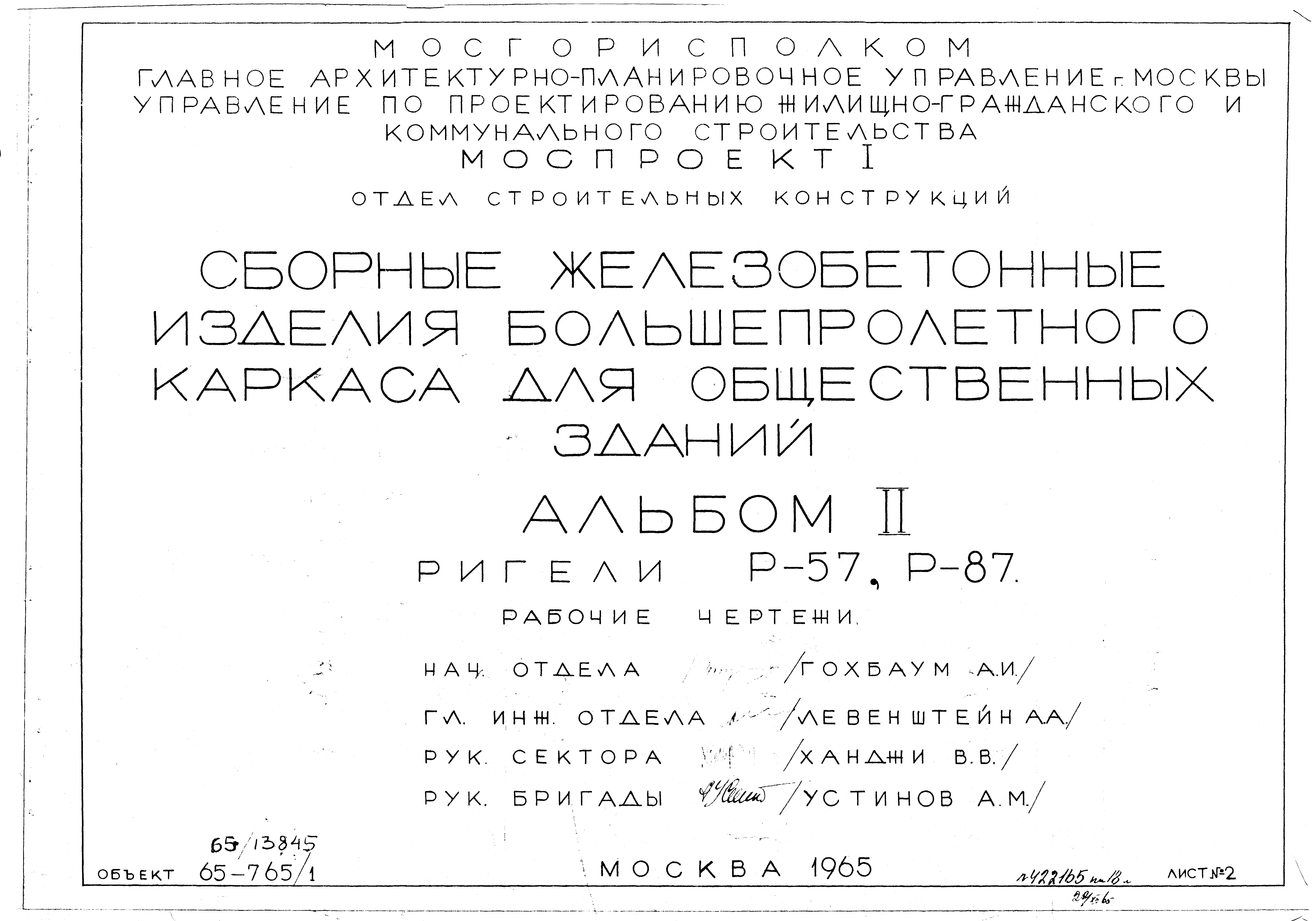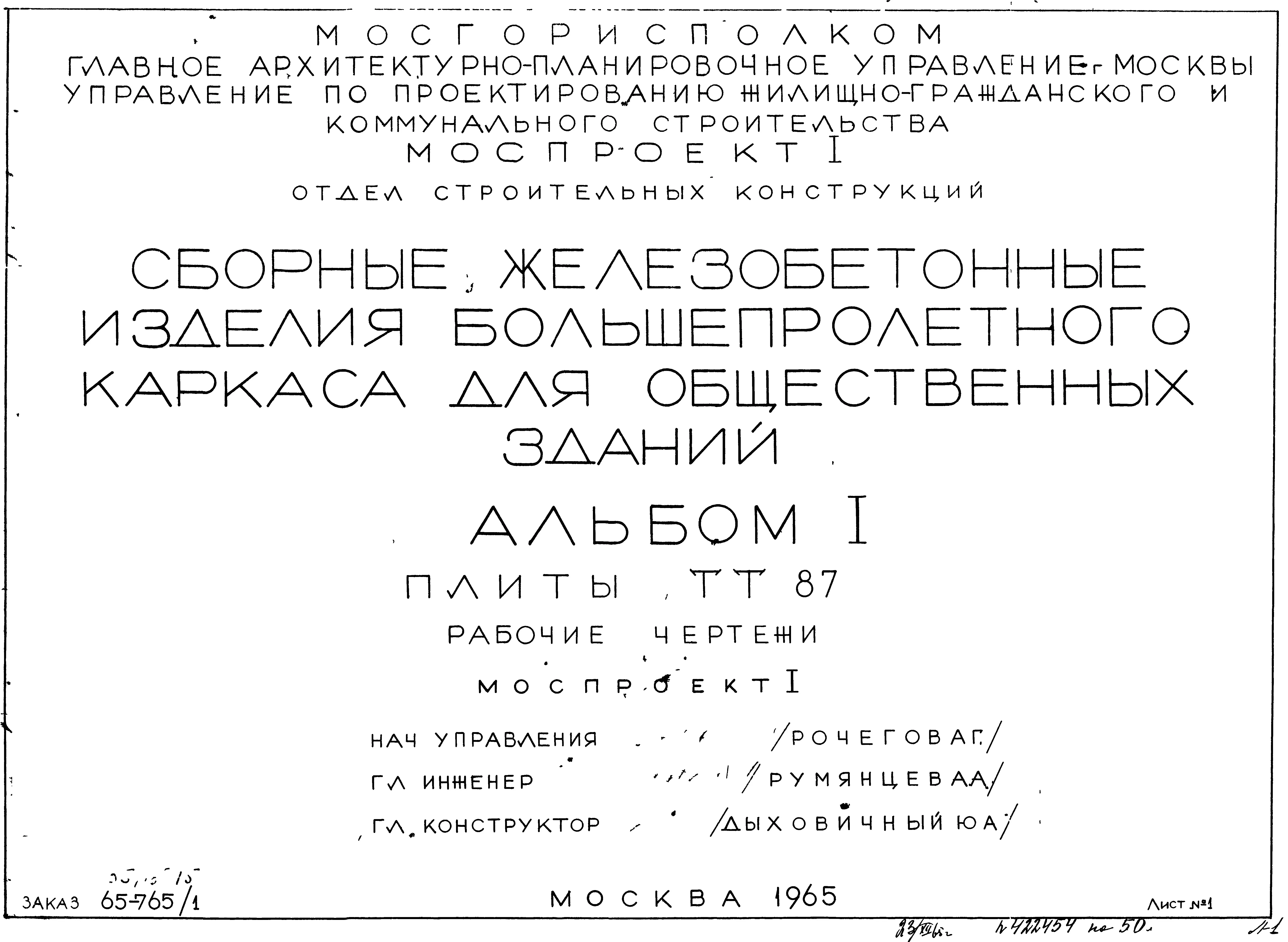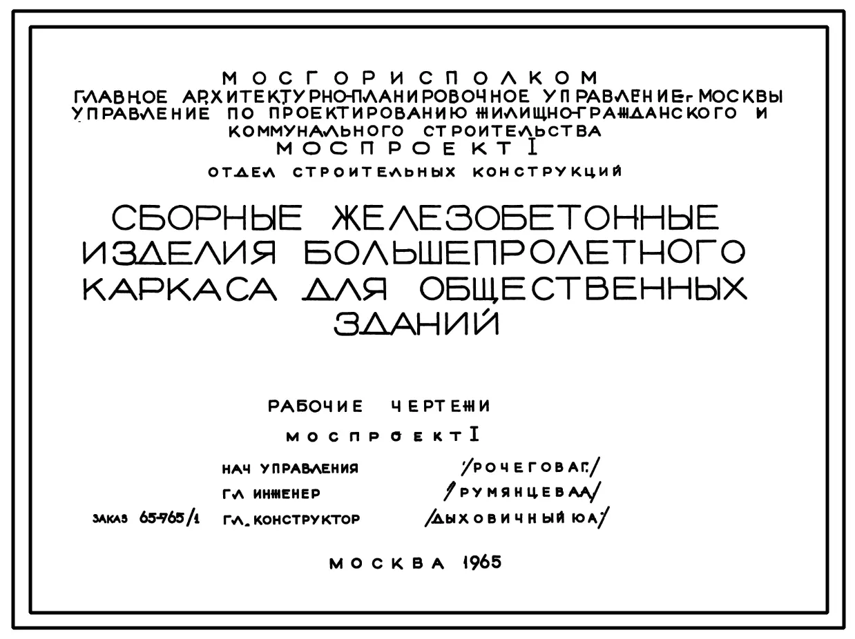 Шифр 65-765/1 Сборные железобетонные изделия большепролетного каркаса для общественных зданий