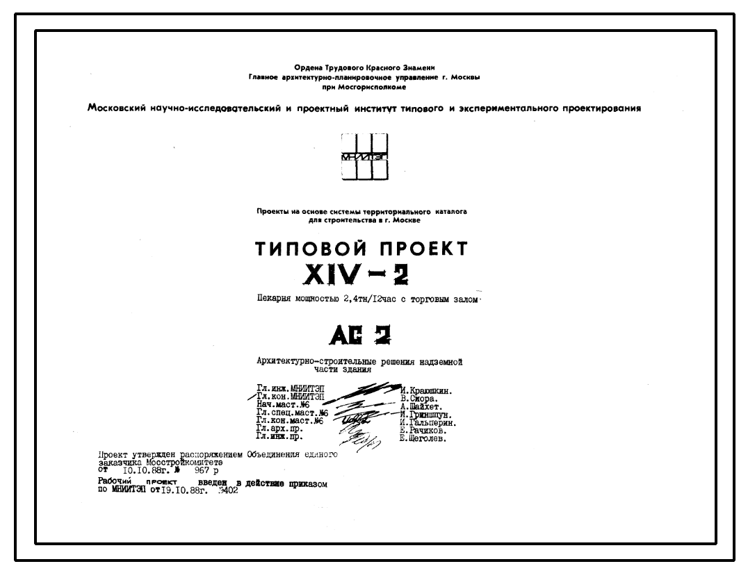 Типовой проект XIV-2 Пекарня мощностью 2,4 тн./12 час с торговым залом