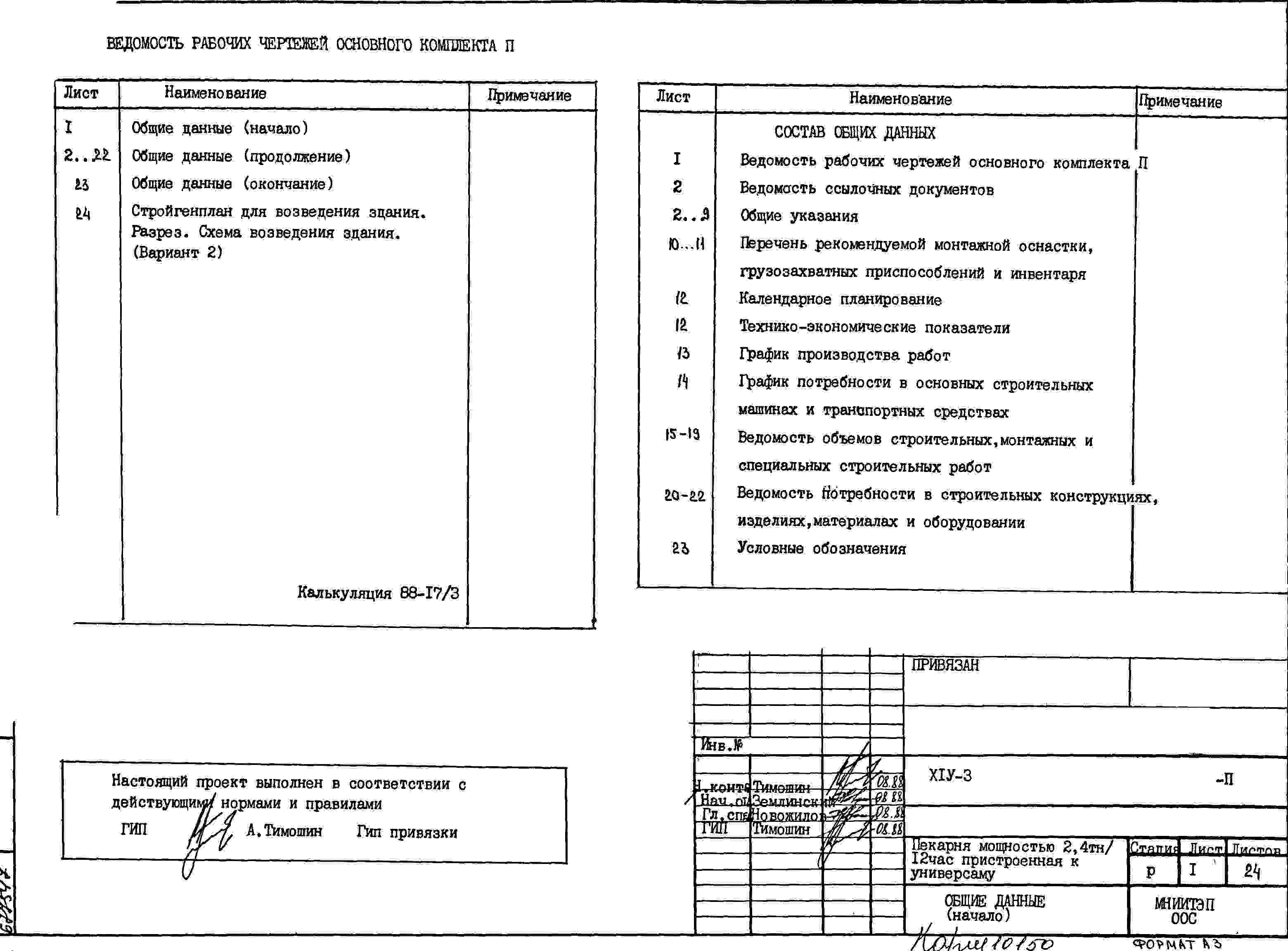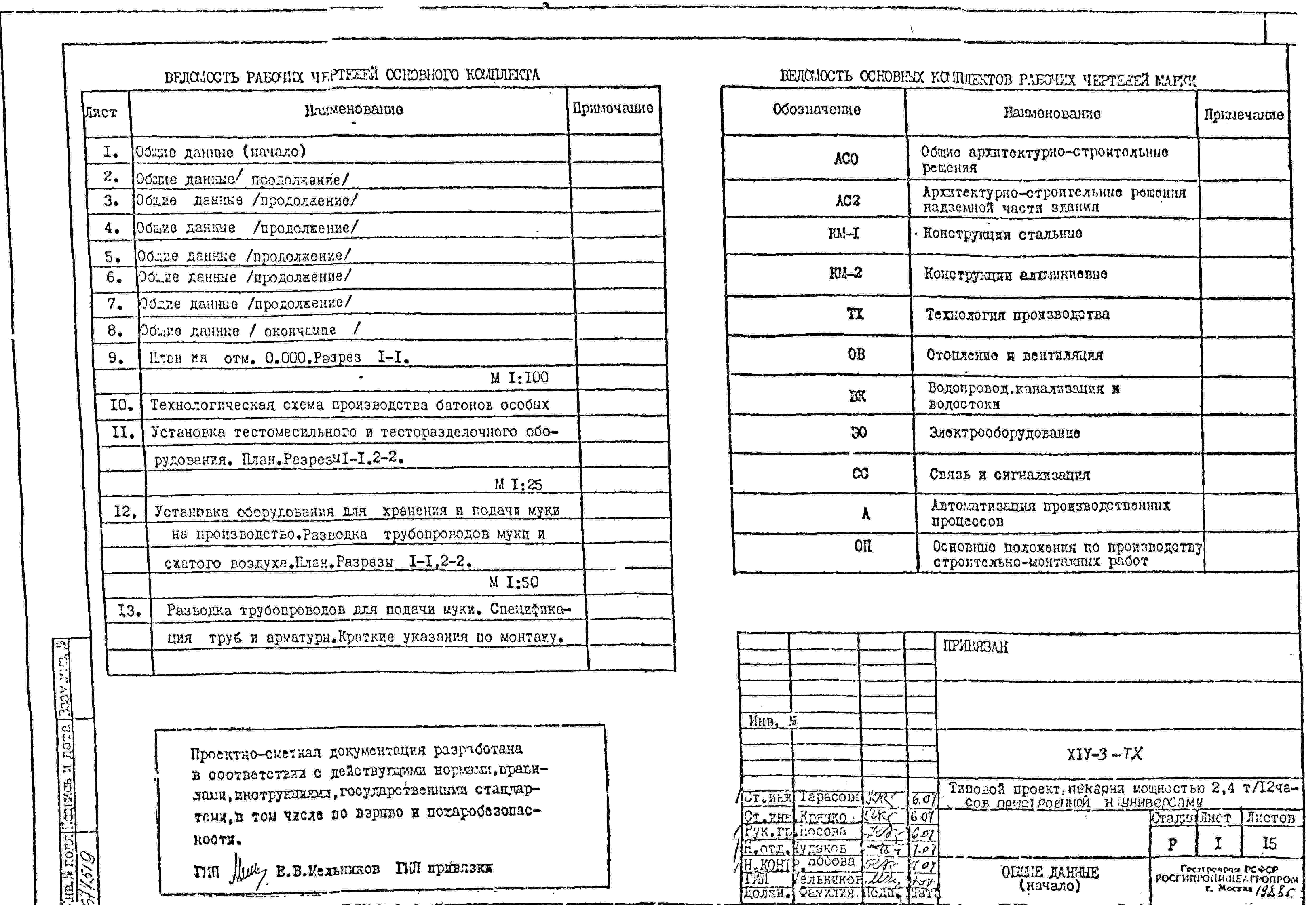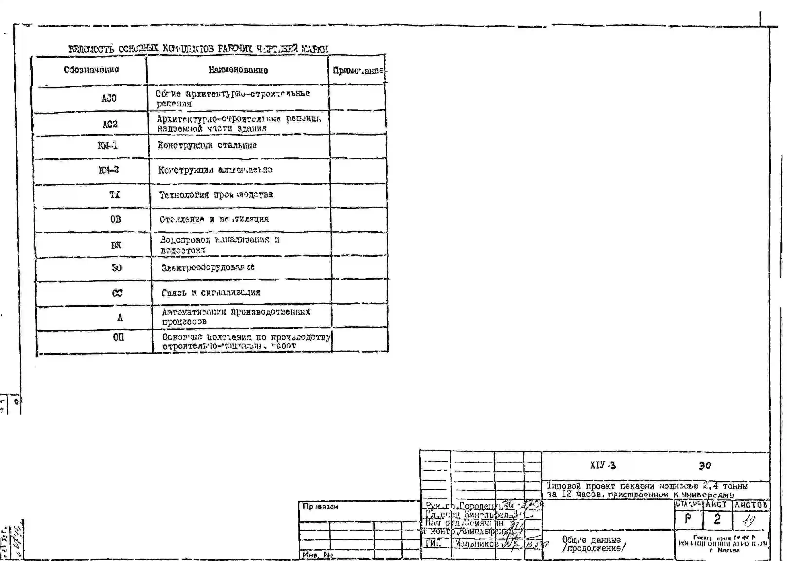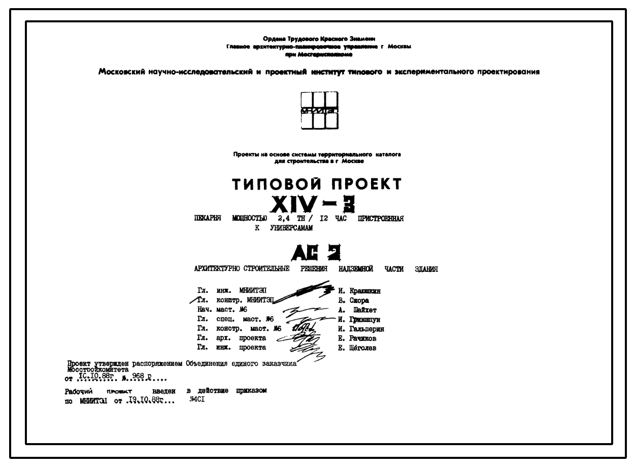 Типовой проект XIV-3 Пекарня мощностью 2,4 тн./12 час , пристроенная к универсамам