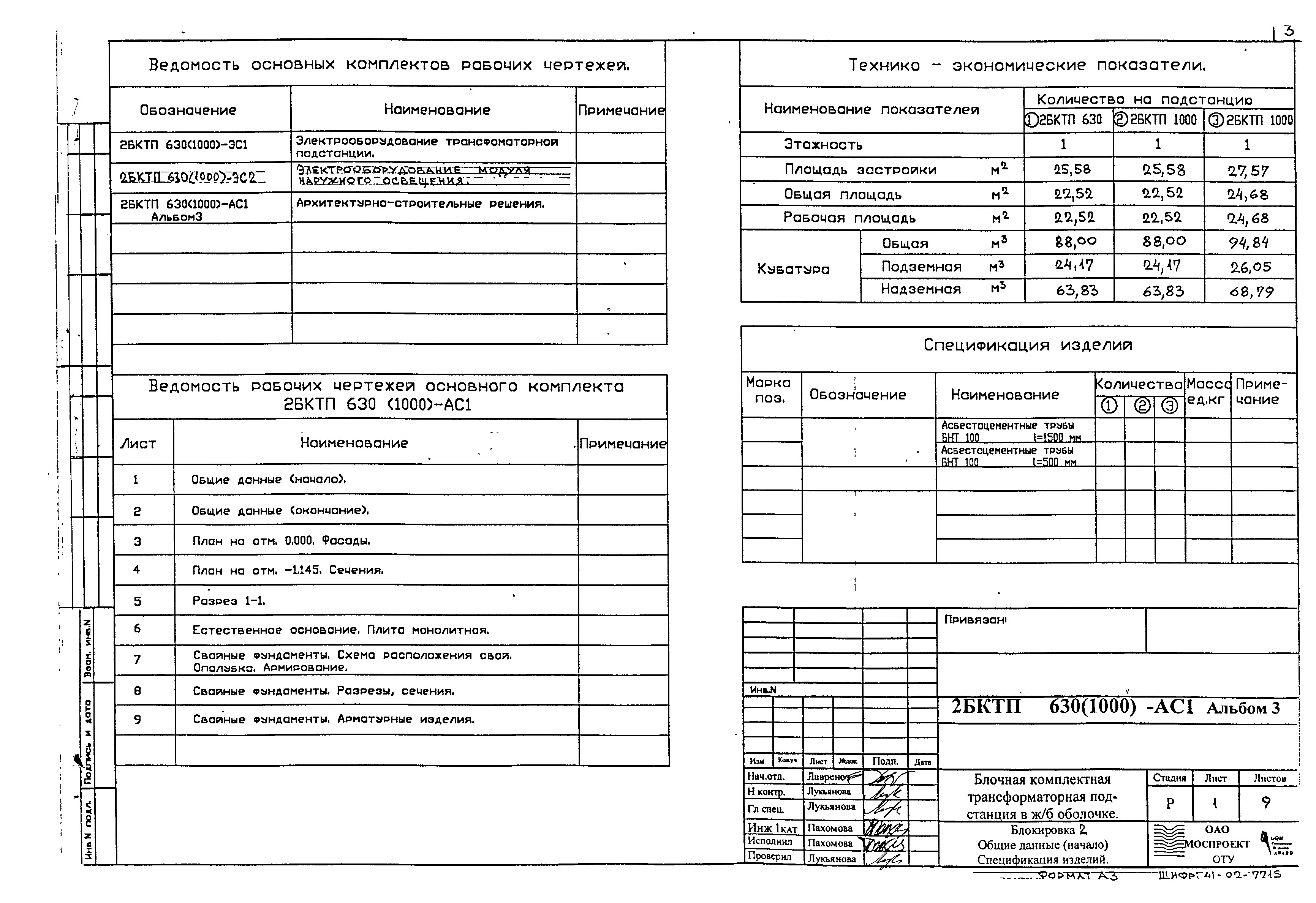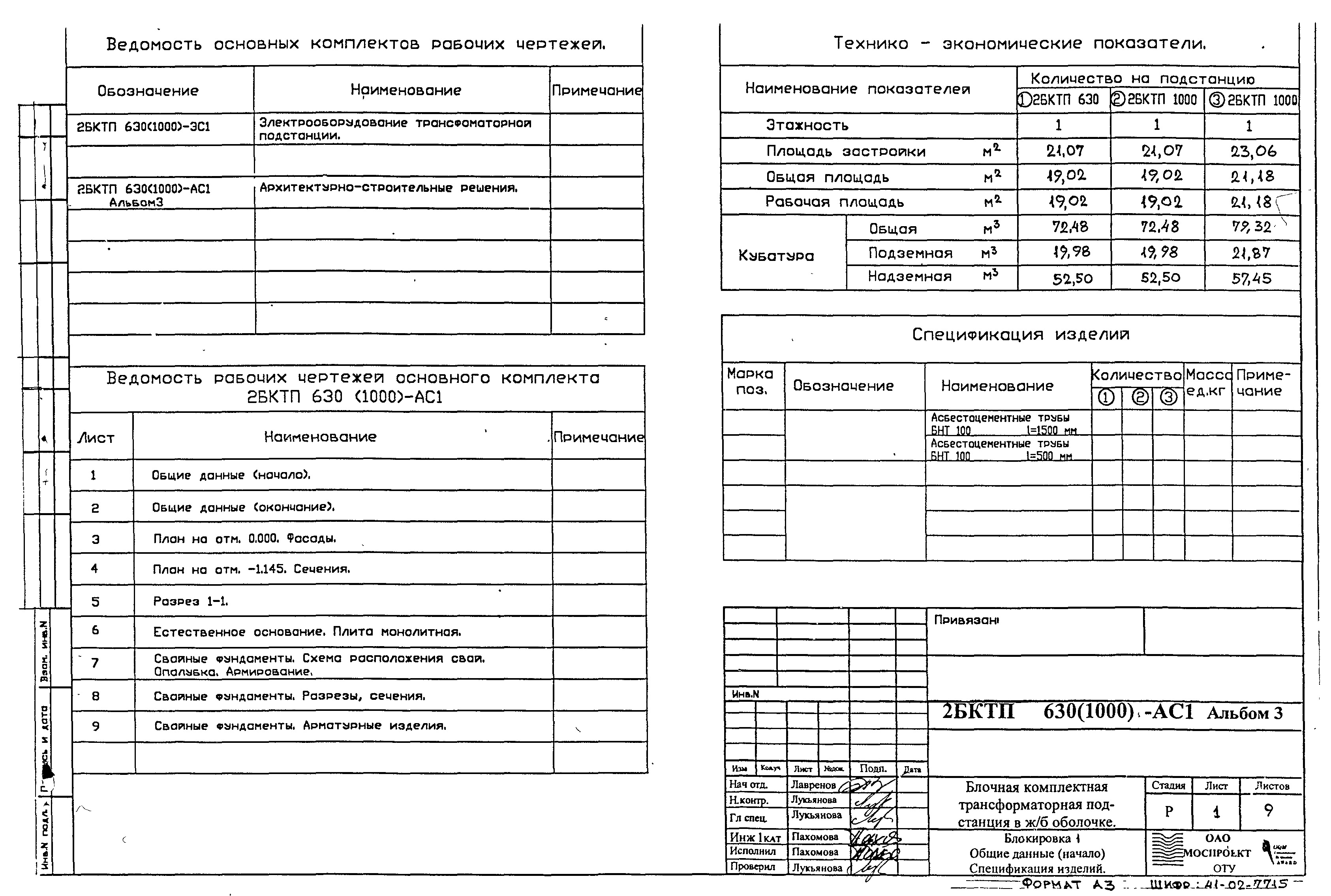 Типовой проект 2БКТП-630-1000 Блочная трансформаторная подстанция в железобетонной оболочке с двумя трансформаторами мощностью 630-1000 кВА