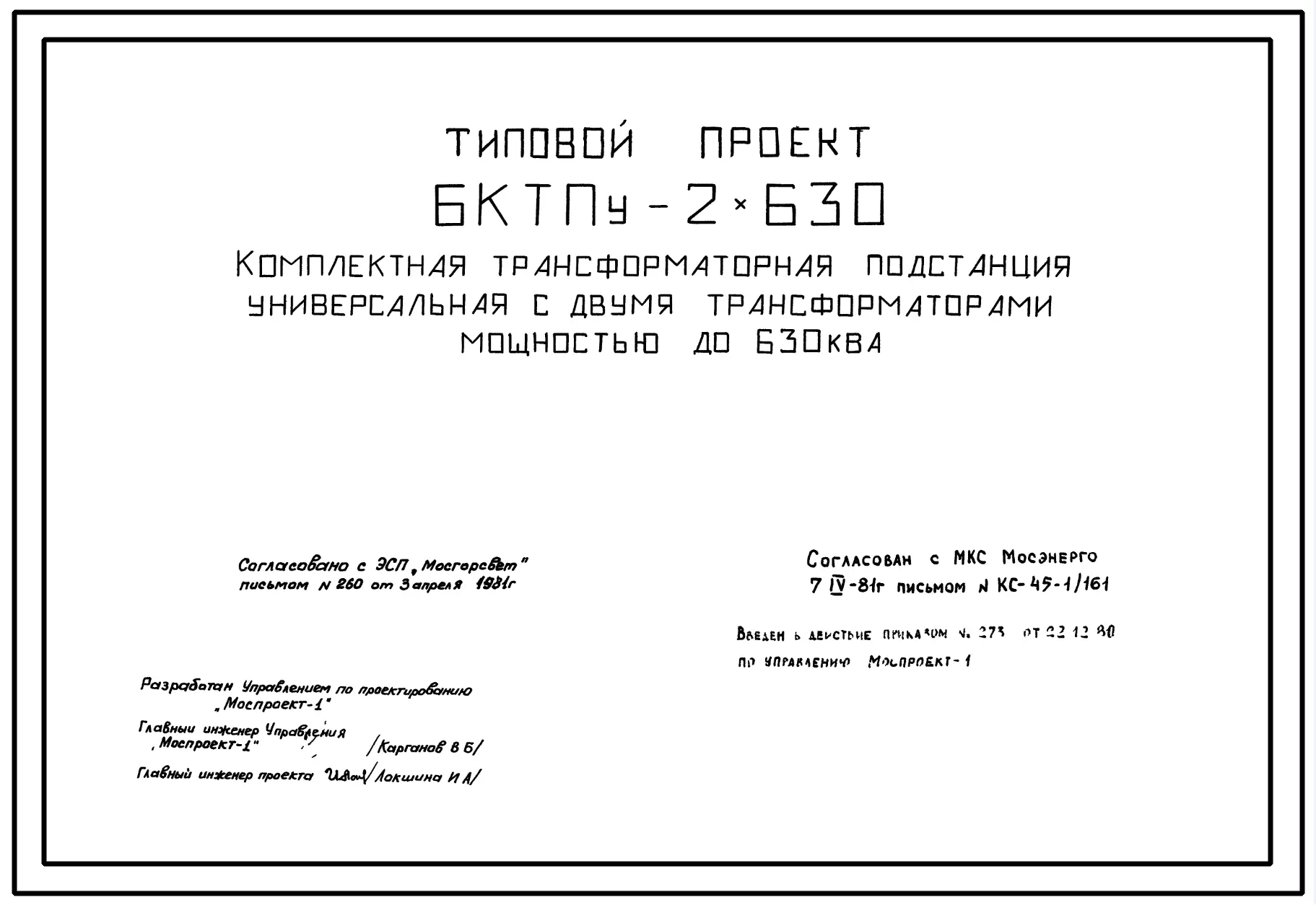 Типовой проект БКТПУ-2х630 Блочная комплектная трансформаторная подстанция универсальная с двумя трансформаторами мощностью до 630 кВа