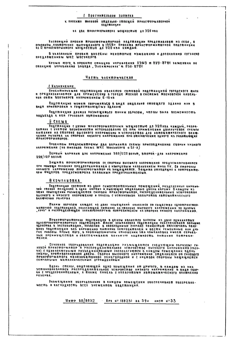 Шифр 60/8032 Отдельно стоящая трансформаторная подстанция на два трансформатора до 320 кВа. И-60