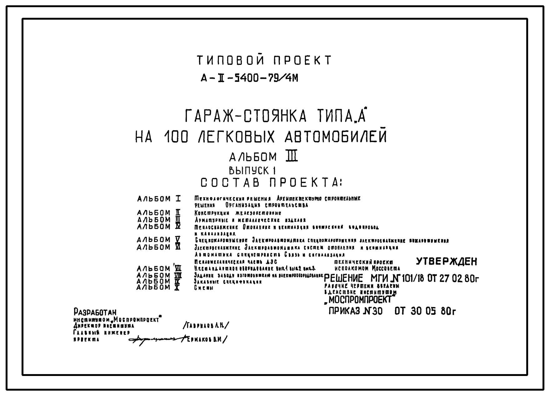 Типовой проект А-II-5400-79/4М Гараж-стоянка типа «А» на 100 легковых автомобилей
