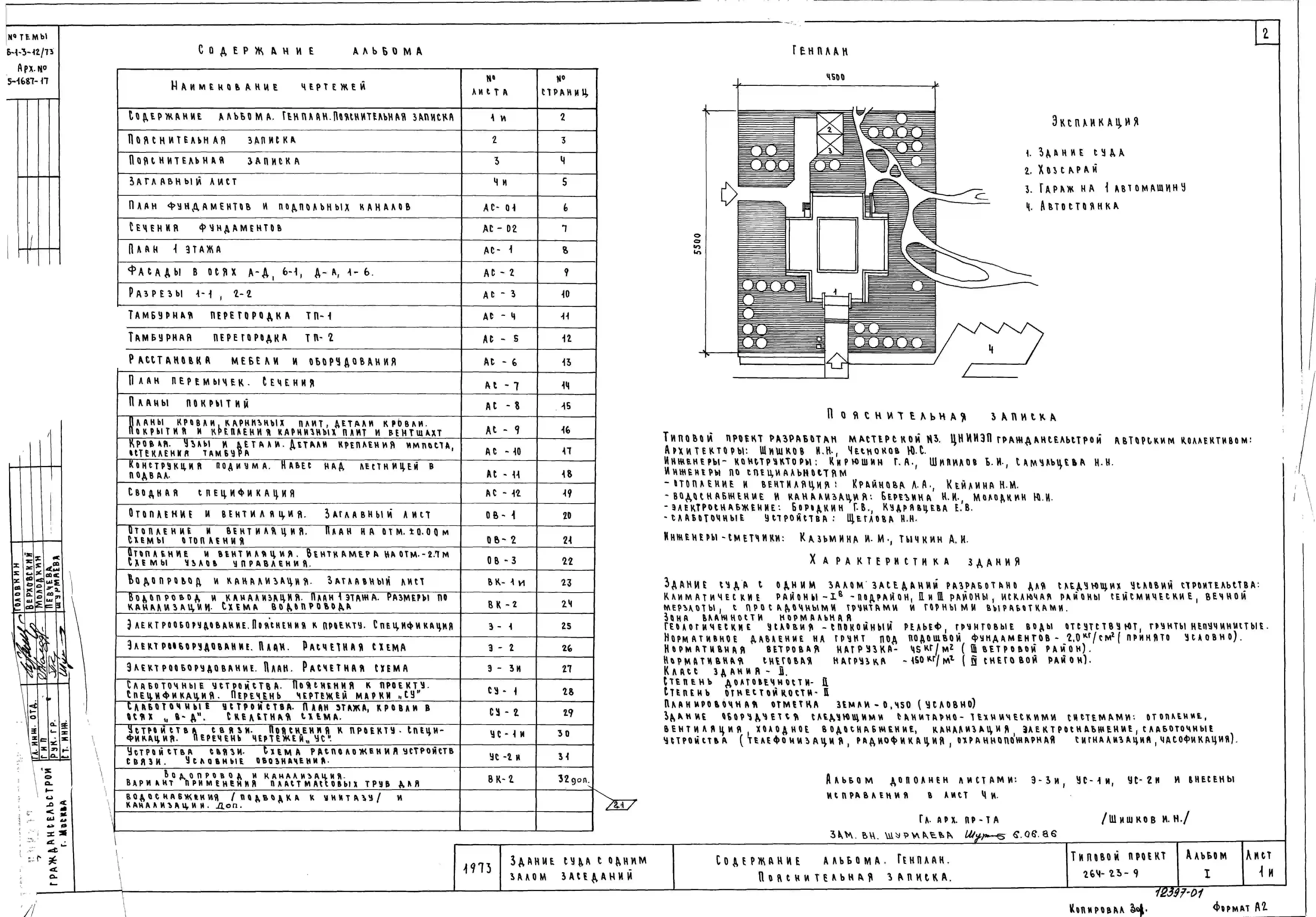 Типовой проект 264-23-9 Здание суда с одним залом заседаний для строительства в 1В климатическом подрайоне, 2 и 3 климатических районах