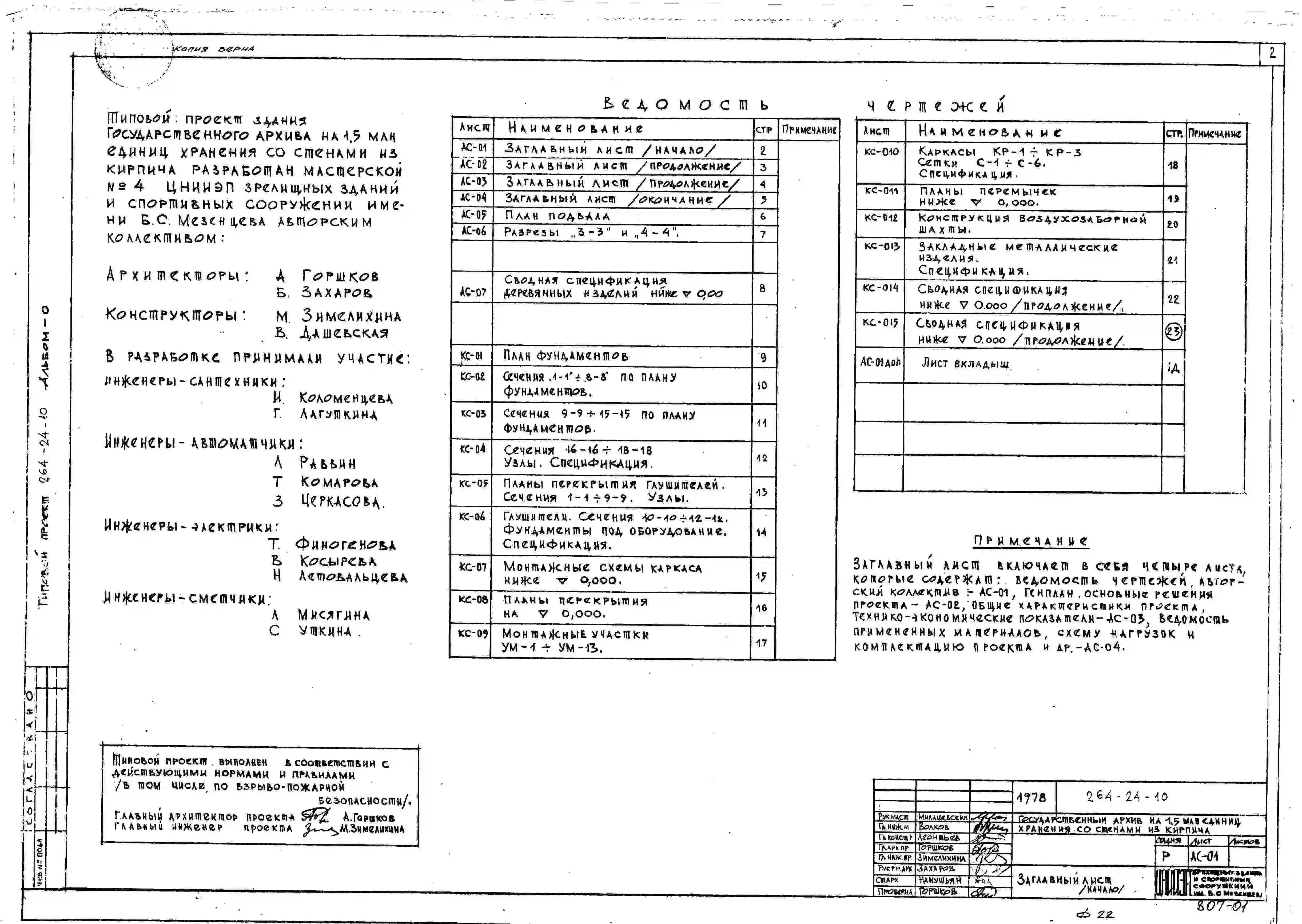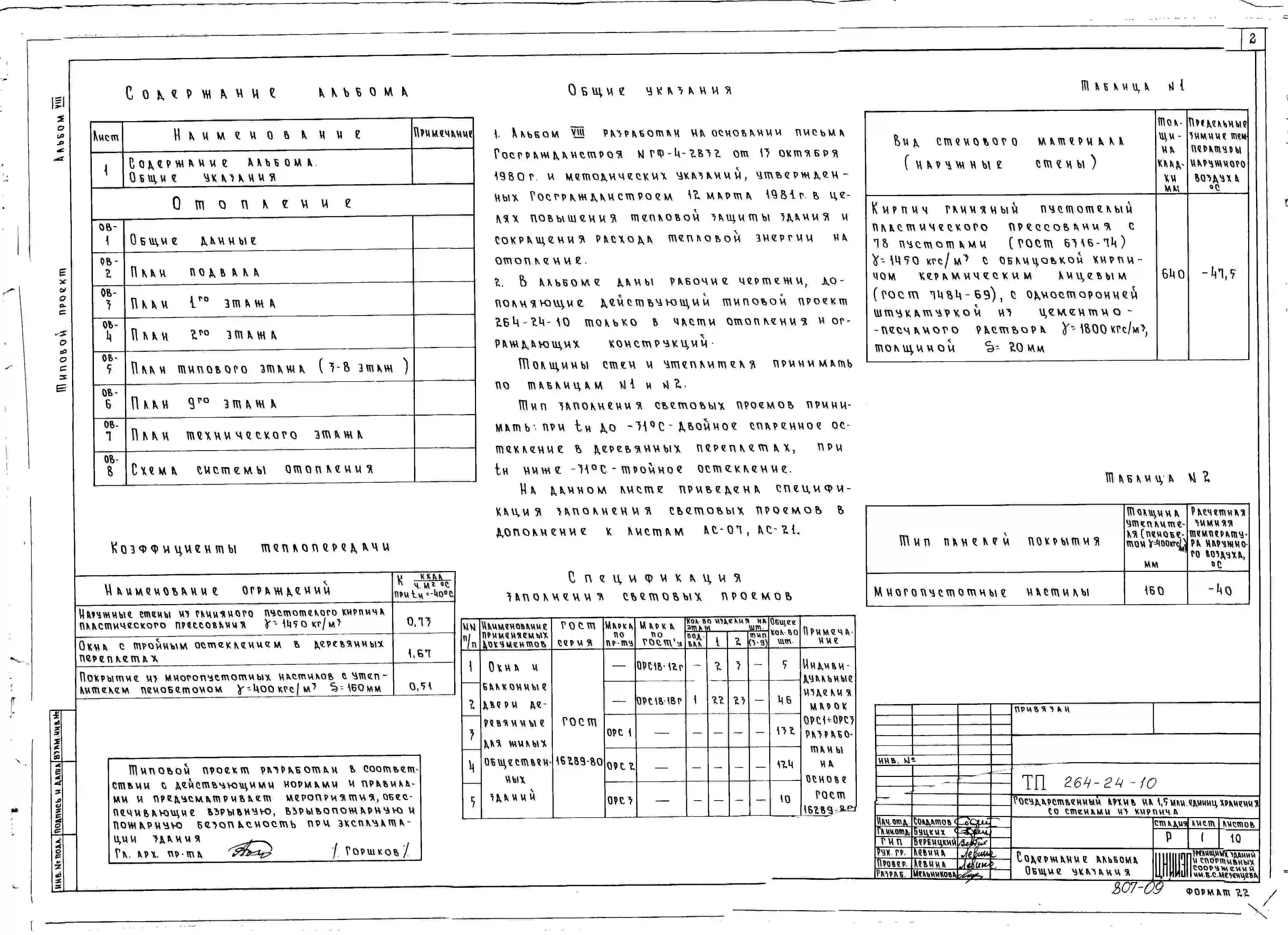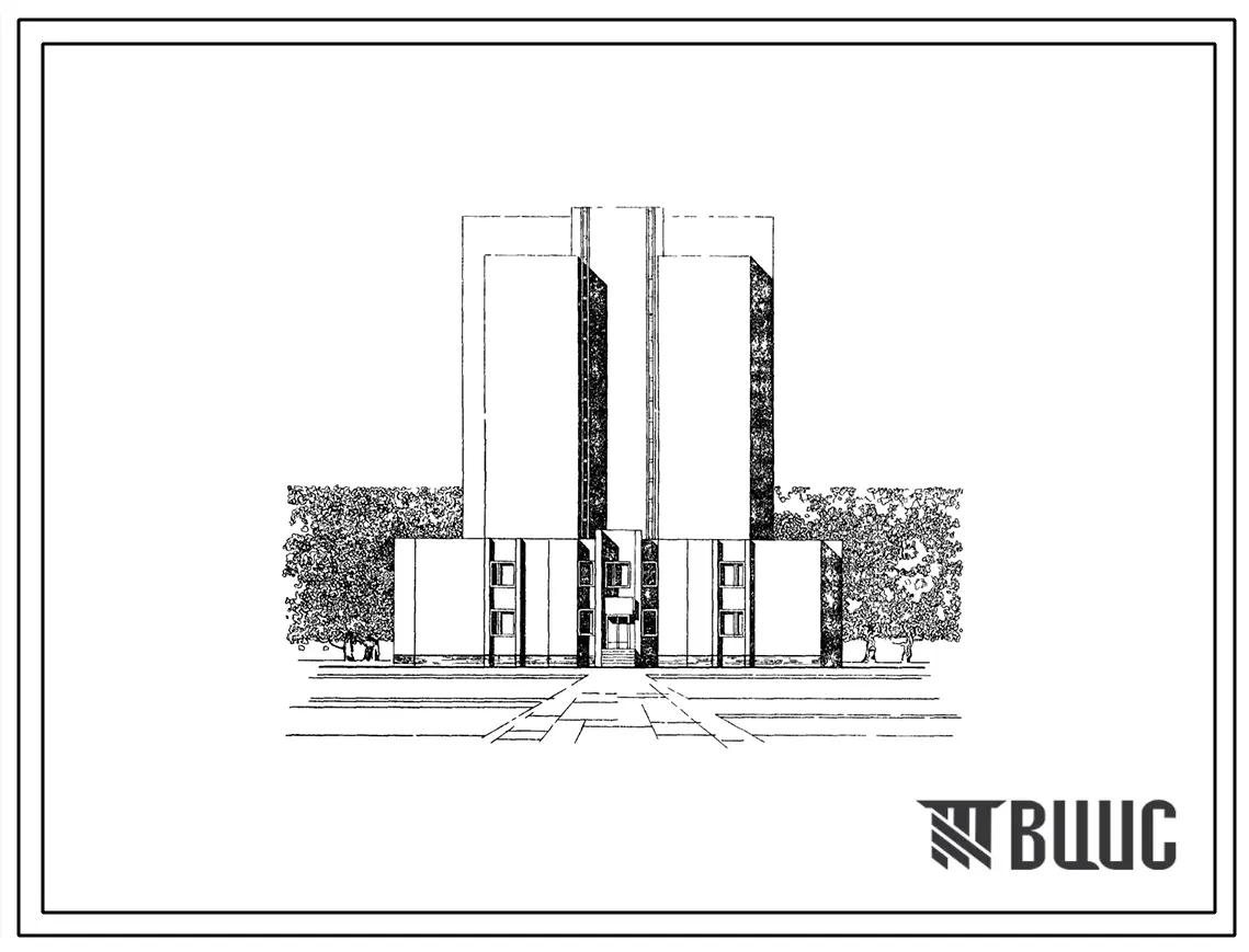 Типовой проект 264-24-10 Государственный архив на 1,5 млн. единиц хранения. Здание девятиэтажное. Каркас сборный железобетонный серии ИИ-04. Стены из кирпича.