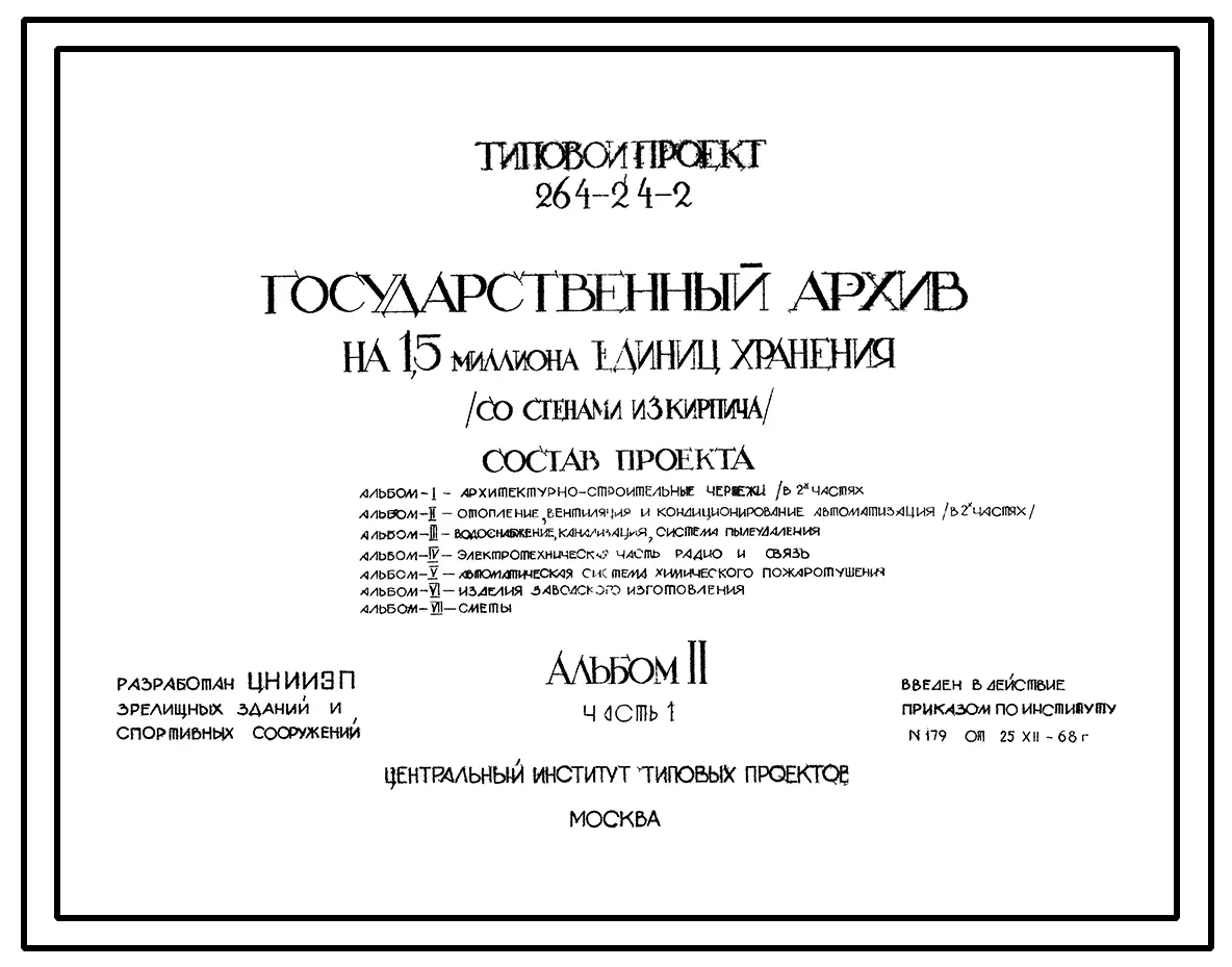 Типовой проект 264-24-2 Государственный архив на 1,5 миллиона единиц хранения