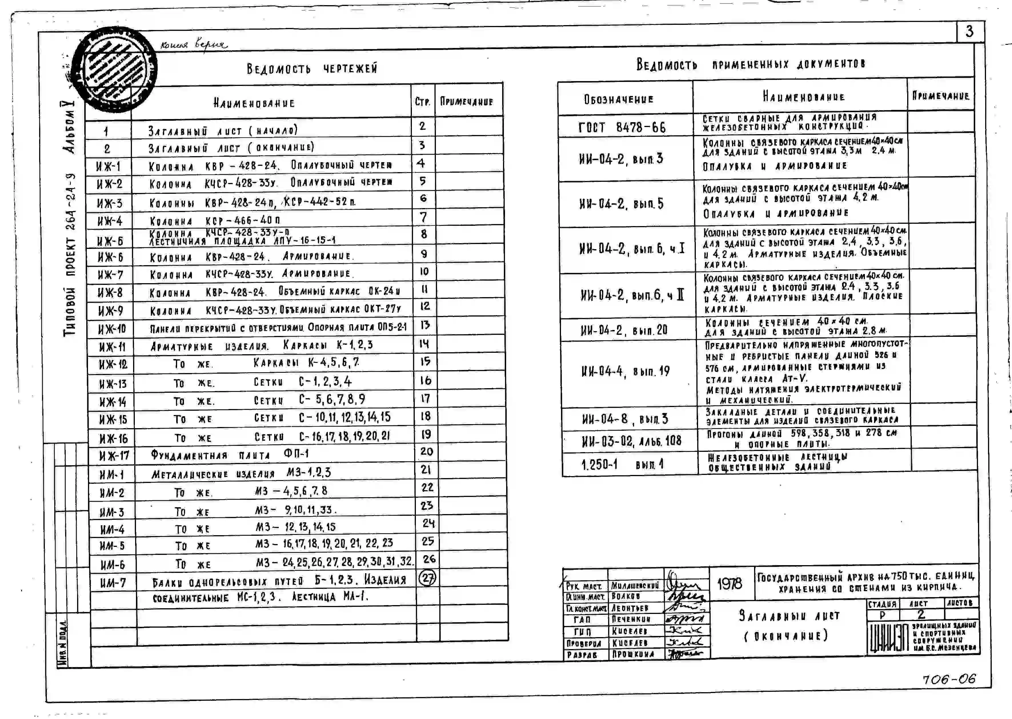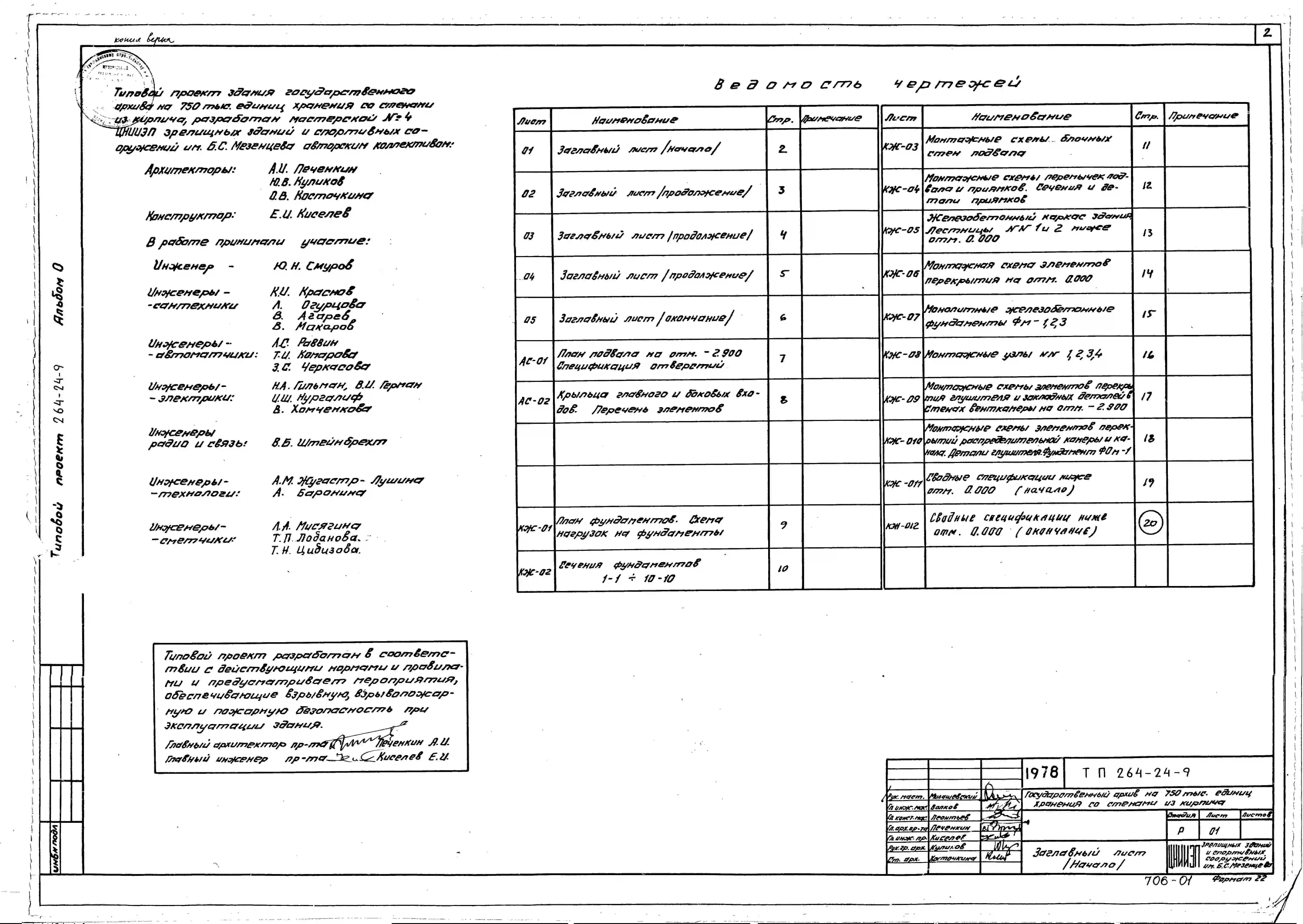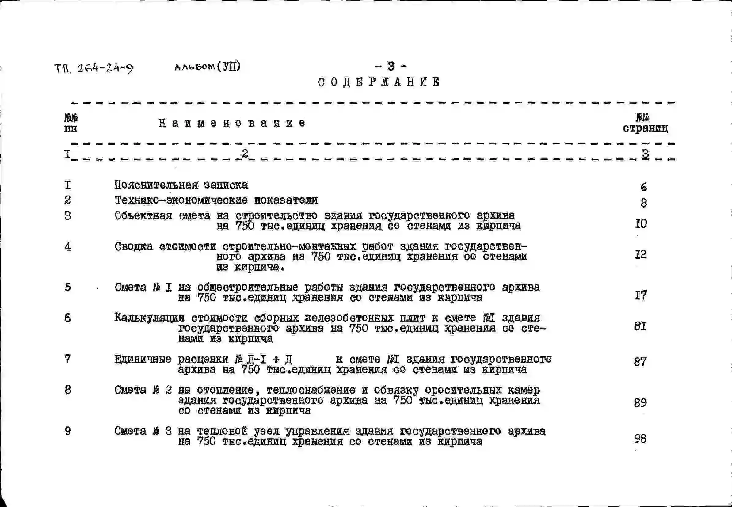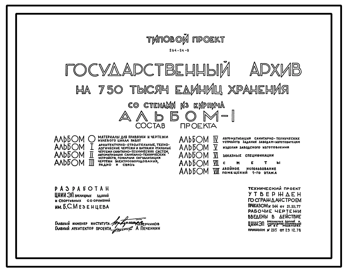 Типовой проект 264-24-9 Государственный архив на 750 тысяч единиц хранения со стенами из кирпича. Для строиетльства в IВ климатическом подрайоне, II и III климатических районах.