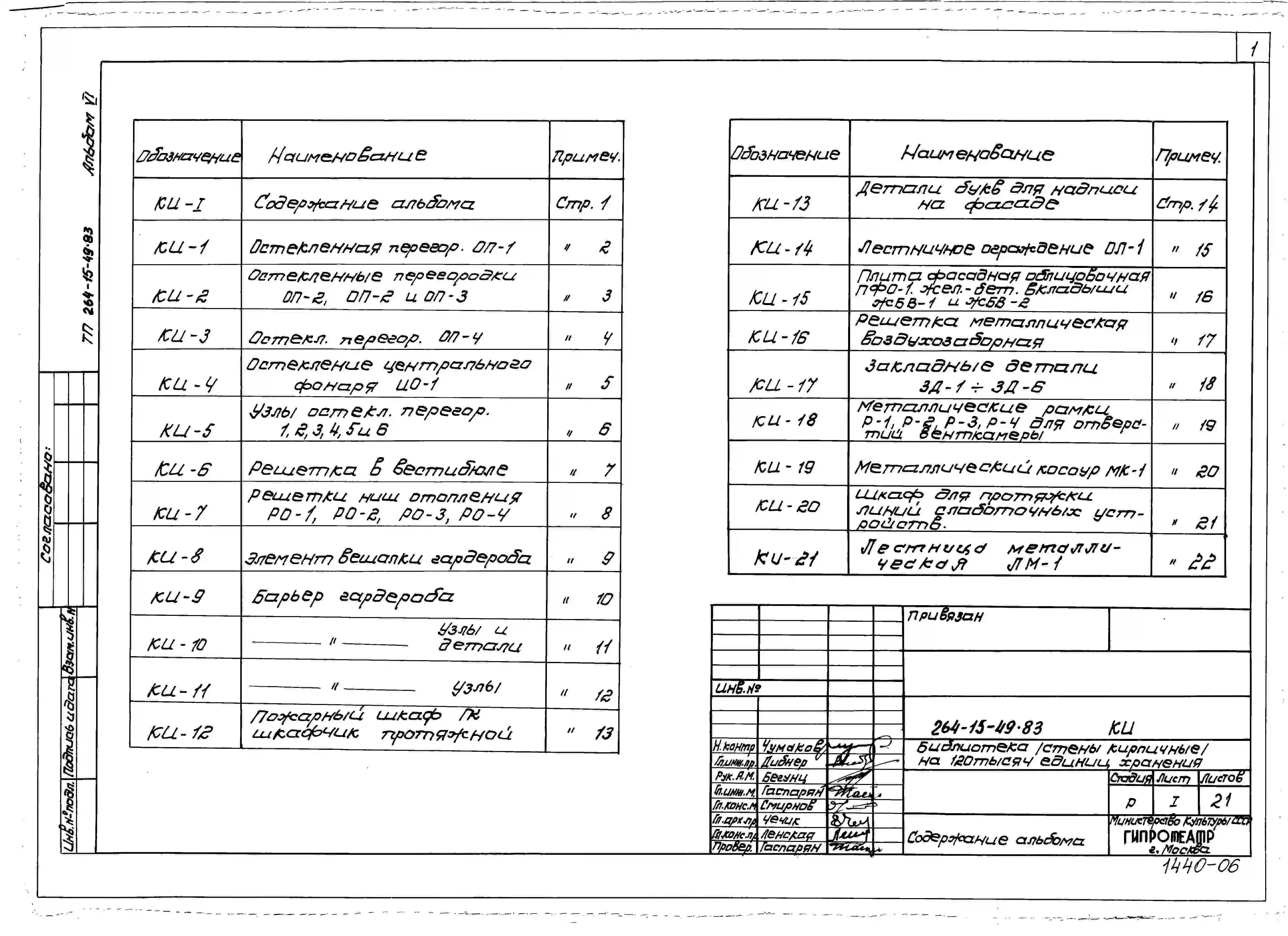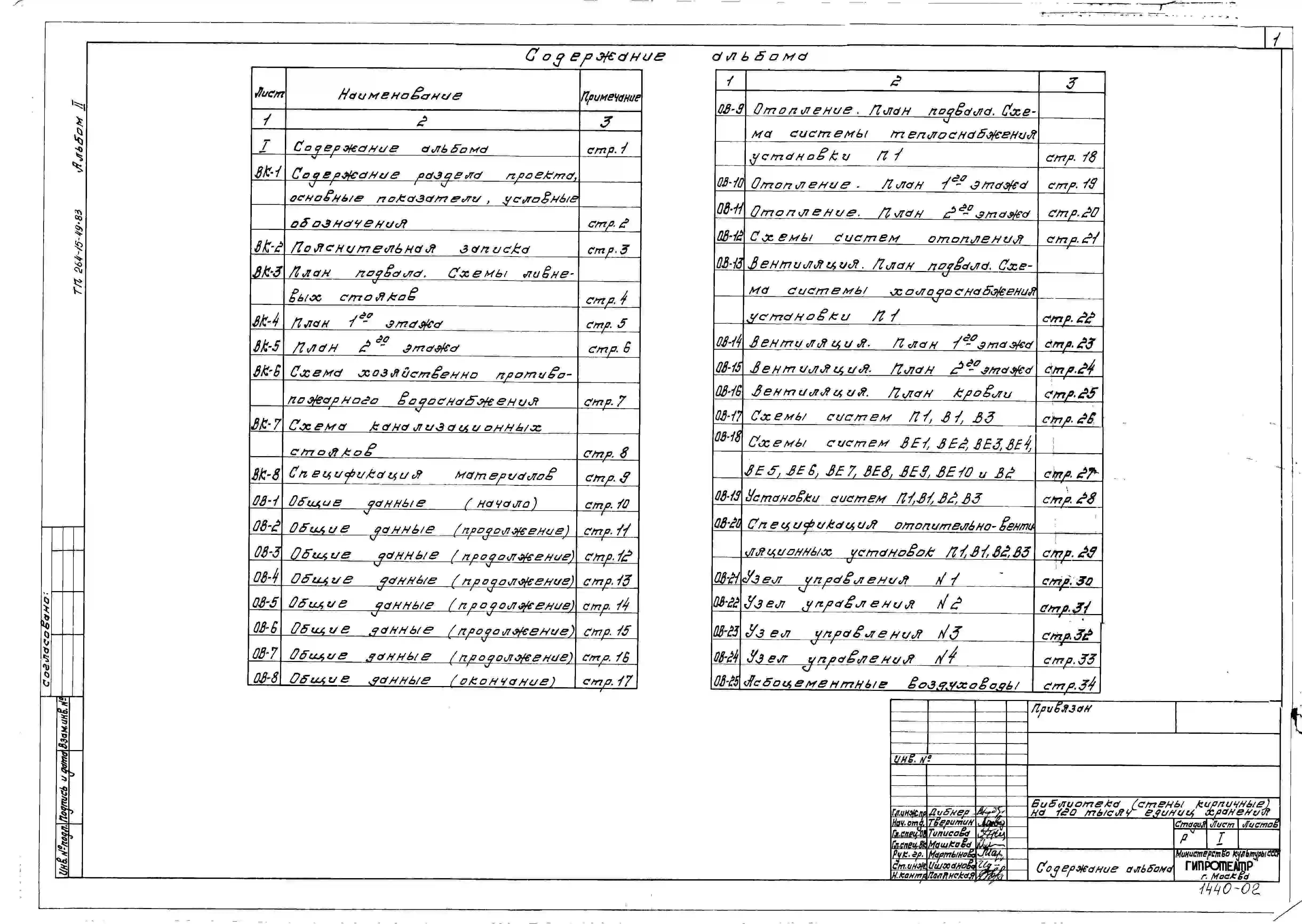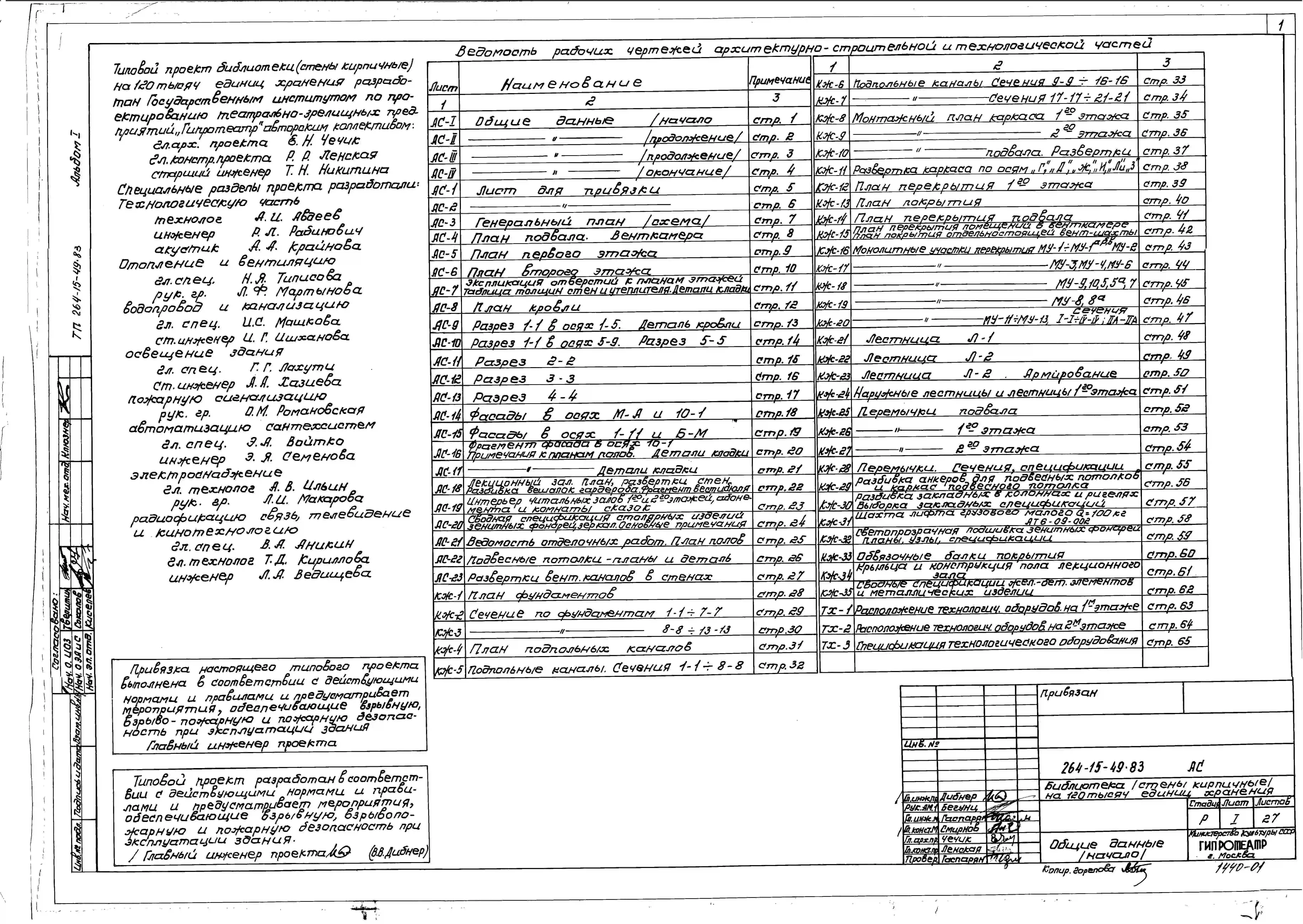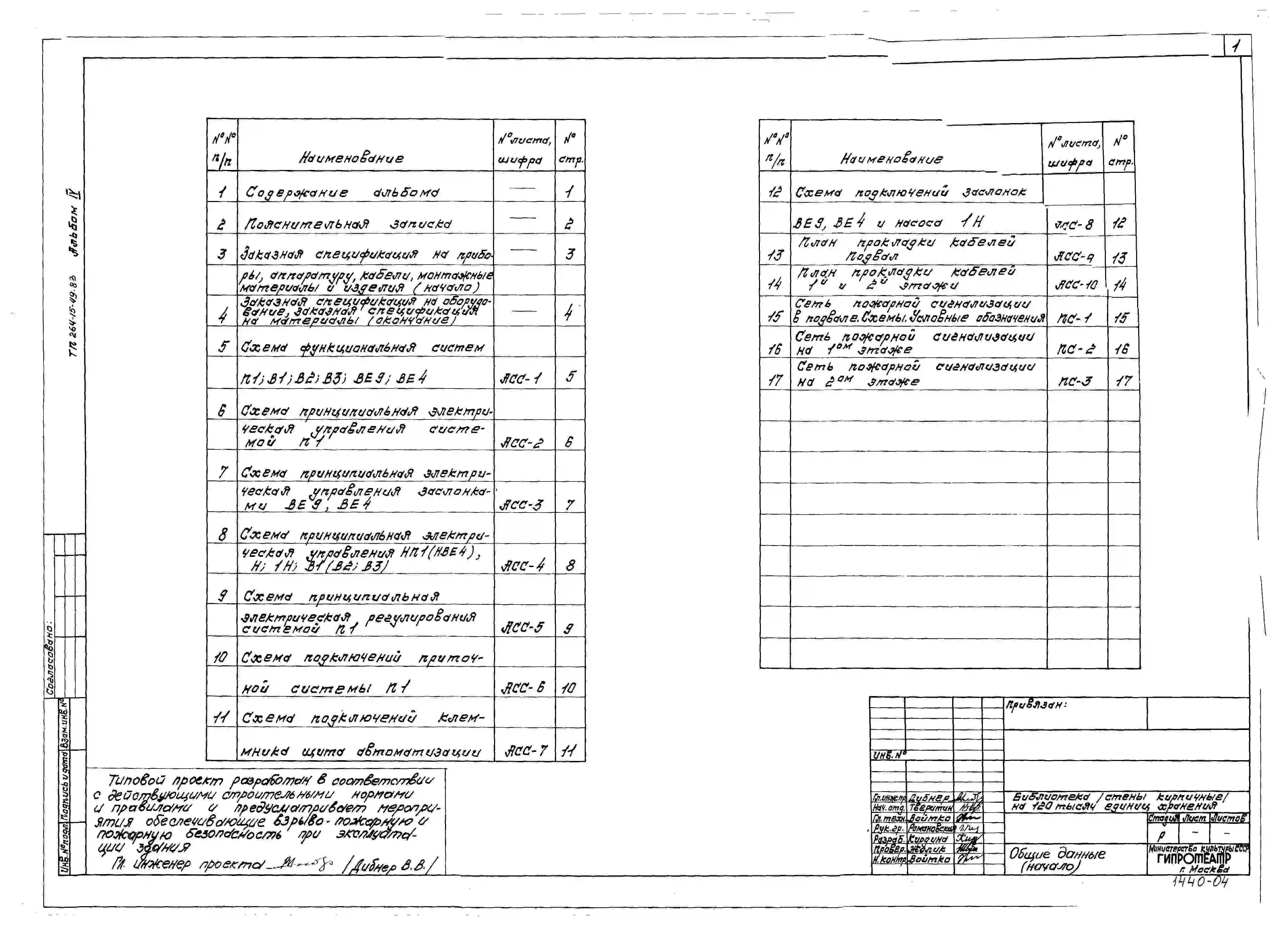 Типовой проект 264-15-49.83 Библиотека на 120 тыс. единиц хранения (стены кирпичные). Для строительства в 1В климатическом подрайоне, 2 и 3 климатических районах.